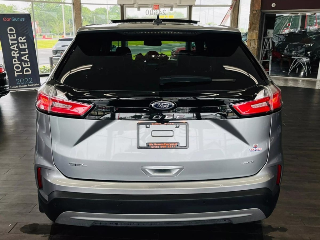 Born for adventure, our 2024 Ford Edge SEL AWD is built to look bold and aggressive in Iconic Silver Metallic! Motivated by a TurboCharged 2.0 Liter EcoBoost 4 Cylinder offering 250hp to an 8 Speed Automatic transmission with a rotary gear shifter. Take command of this All Wheel Drive SUV to enjoy confident capability, responsive handling, and the ability to return nearly 28mpg on the highway. Sophisticated details help our Edge make a dramatic impression with signature LED lighting, fog lamps, heated power mirrors, dual integrated exhaust outlets, a sunroof, bright beltline moldings, and alloy wheels.