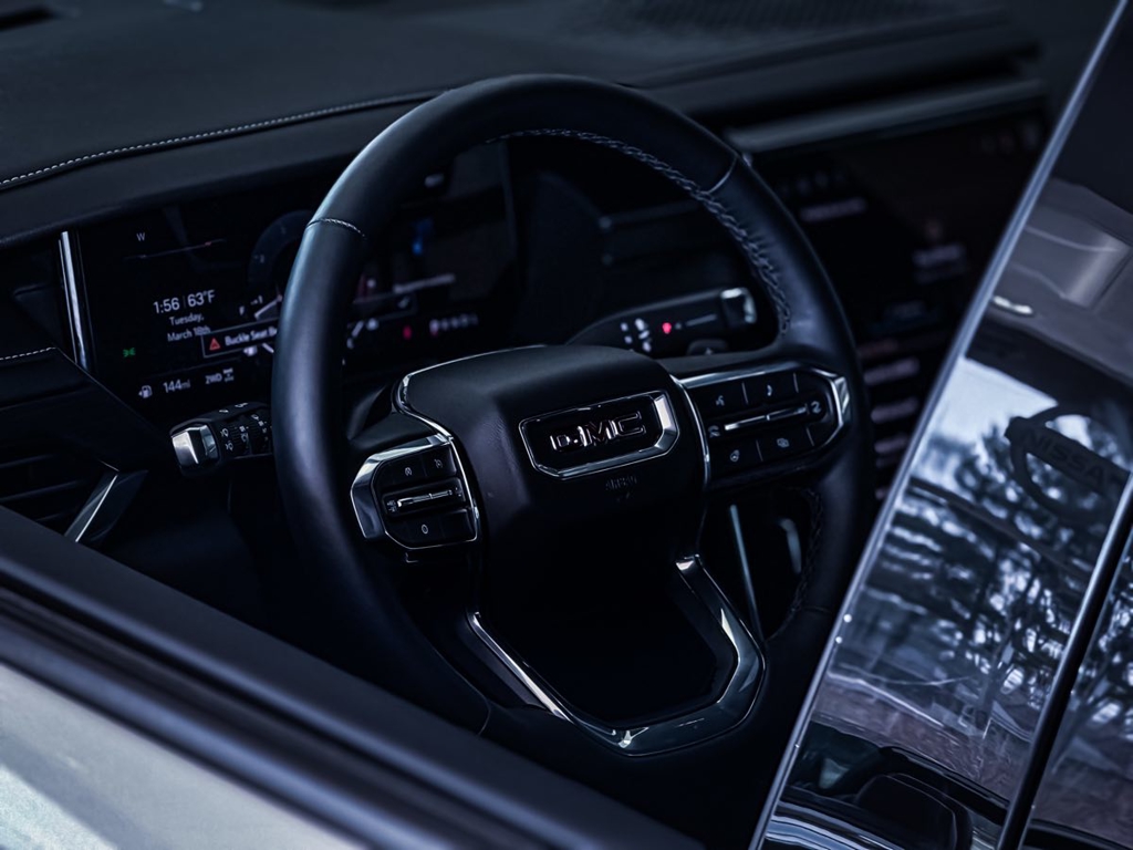 Allow us to introduce our Elevation cabin, which complements that sophisticated exterior with heated CoreTec power front seats, comfortable second/third rows, a heated sport steering wheel, tri-zone automatic climate control, keyless entry, remote start, and pushbutton ignition. The intelligent infotainment system boasts a 15-inch touchscreen, 11-inch driver display, Google Built-in, wireless Apple CarPlay®/Android Auto®, WiFi compatibility, Bluetooth®, and a Bose premium sound system. There's ample room for gear, groceries, and more in the back!