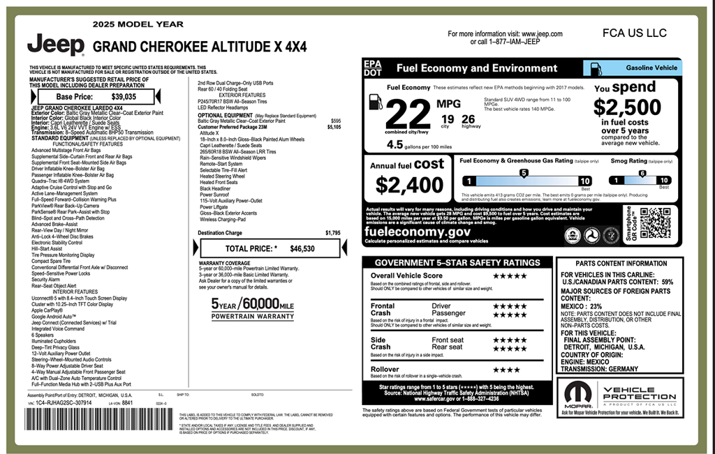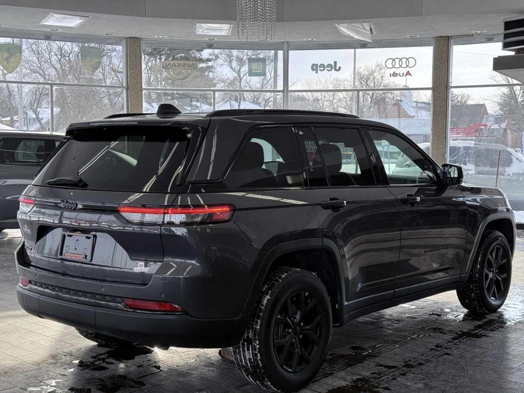 The 2025 Jeep Grand Cherokee Altitude X 4x4 in Baltic Gray Metallic Clearcoat stands as a stunning testament to Jeep's blend of rugged capability and modern luxury. Its striking exterior is accentuated by the bold color choice, delivering a commanding presence on and off the road. Under the hood, a robust 3.6L 6-cylinder engine powers this versatile machine, ensuring a smooth yet powerful drive with enhanced fuel efficiency.