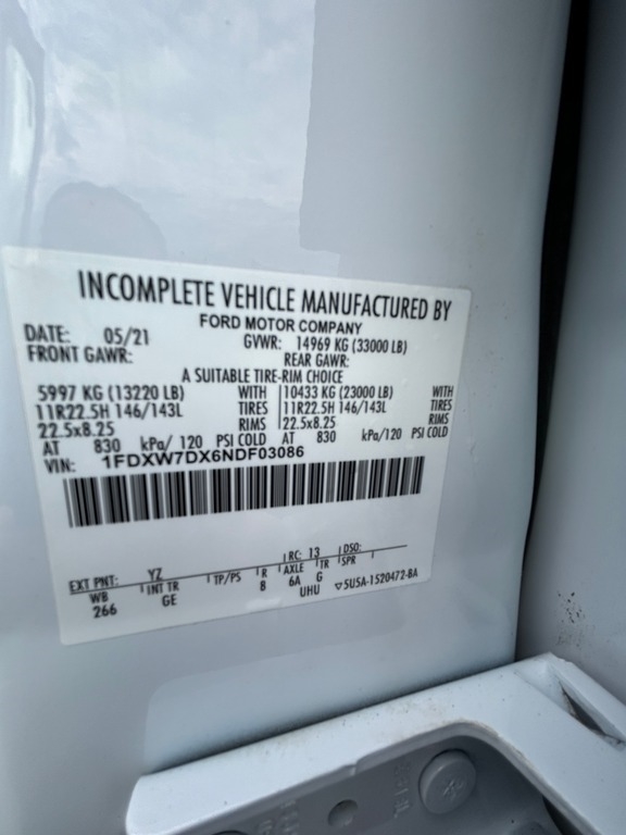 • VIN: 1FDXW7DX6NDF03086
