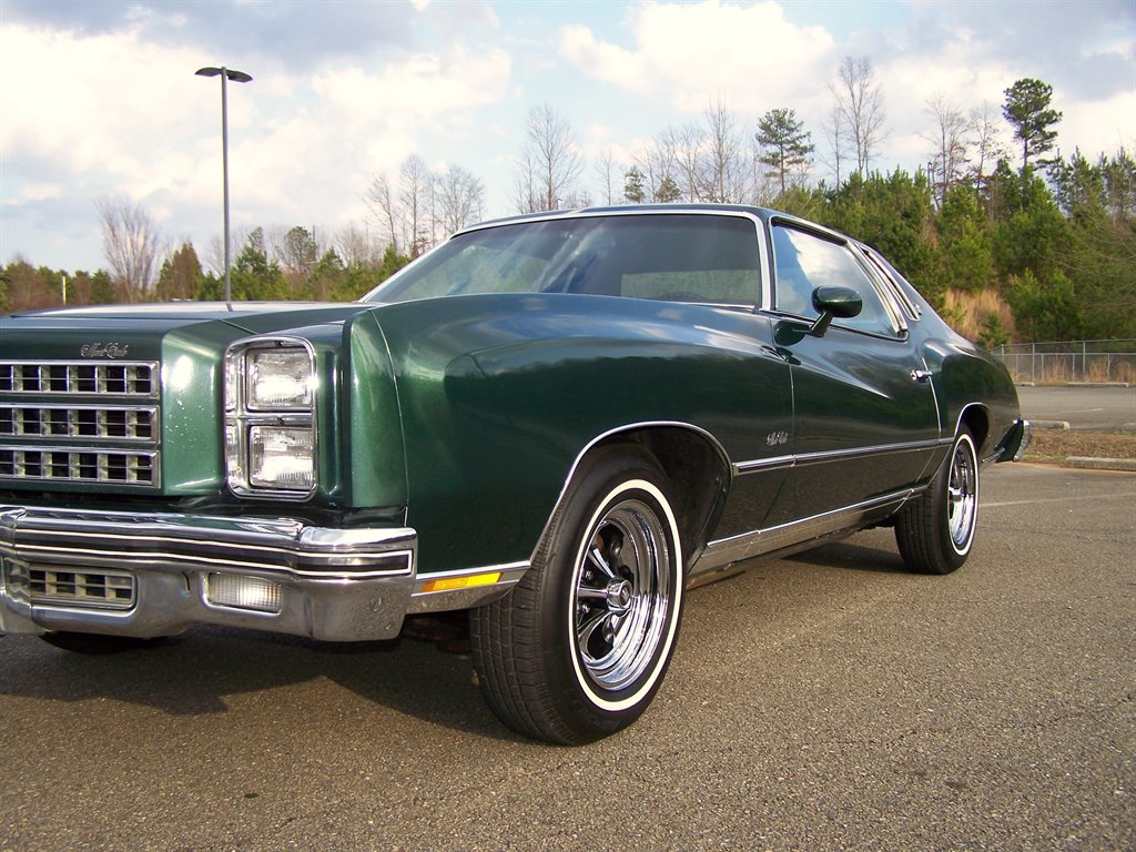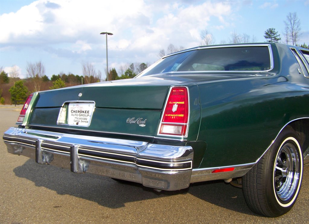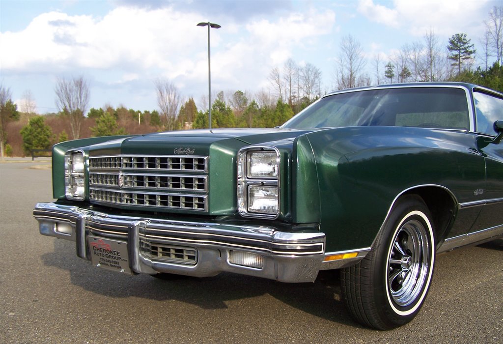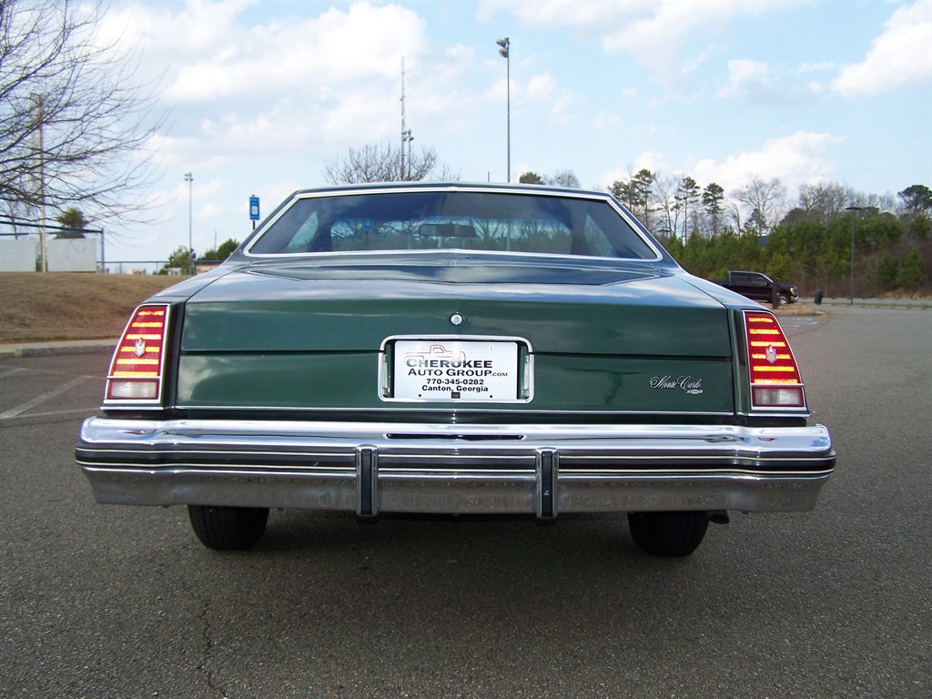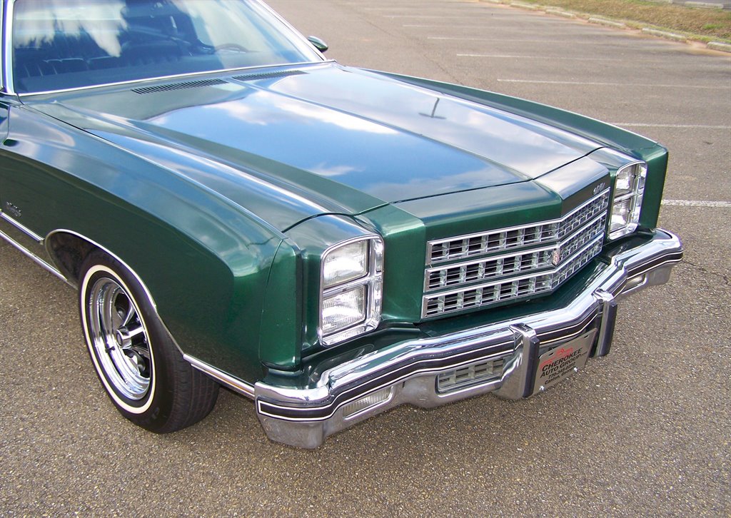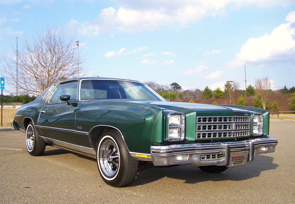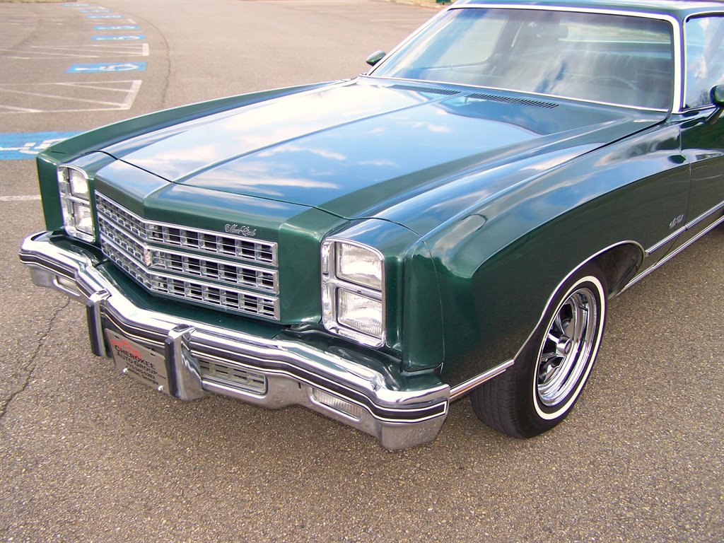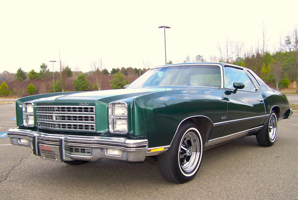 If you're not viewing this vehicle on our website. Please view the 135 plus photos on our website at cherokeeautogroup.com Type in search 1976 MONTE CARLO in search tab! Check out this excellent collector quality unrestored original pampered garaged survivor with only 85k on the clock even though miles are exempt due to age they are believed to be correct! This is one fine 1-Owner 1976 Chevrolet Monte Carlo 2-Door Coupe with 5.7L 2bbl & factory slick top with no vinal top & more! This has been a solid well kept garaged orig car since new. Very few were produced in this color combo and are still in this original shape! This has to be one of a few originals like it left! The car is finished in what looks like original metallic green paint over pristine soft black vinal interior. Its powered by a ultra-strong smooth smooth 5.7L 350 2bbl v8 and tight crisp automatic. It is no doubt is a very comfortable enjoyable ride! This car has a great history with owner's manuals and more. Nice features & options like factory no Vinal roof, full size spare, power steering, power brakes, no power windows, no power door locks, no air conditioning, hot heat, clock, rear defogger, sport mirors, new WSW tires, factory steel wheels and caps included, front & rear floor mats, front & rear bumper guard strips, all jacks tools & spare are in place & much more! The car is finished in factory solid color non-tu-tone paint & paint looks good with some imperfections on its 50 year old paint but presentable as you can see. It has ultra nice chrome, trim & bumpers, weatherstripping, glass, perfect 15 inch Keystone Klassics with brand new 215-75-15 inch Classic white wall tires appox 100 miles ago. This car cranks and runs smooth and tight and is a pleasure to cruise around in as a matter of fact we put right at 100 trouble free miles it with zero issues! The pristine fresh original interior is trimmed with nice original vinal & yes those are the original carpets with a matching perfect dashboard, steering wheel, door panels, and trim. The 2-spoke steering wheel looks great & not cracked or worrn smooth! Check out the under dash photos! This is a collector quality Chevrlet! Its one of the best 50 year old gems you could ever hope to find that has been driven 85k & finding a un-restored! Monte Carlo's of this era period are few and far between! It is fantastic! The new buyer that wants one of the best will love to own this neat original piece of Chevy history. You could never restore one to this level and in end you can have this car for way less. With its excellent history, great ownership care and condition we doubt it could be duplicated. Vehicle is in our showroom it is that nice! Serious buyers please!