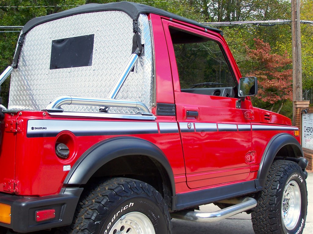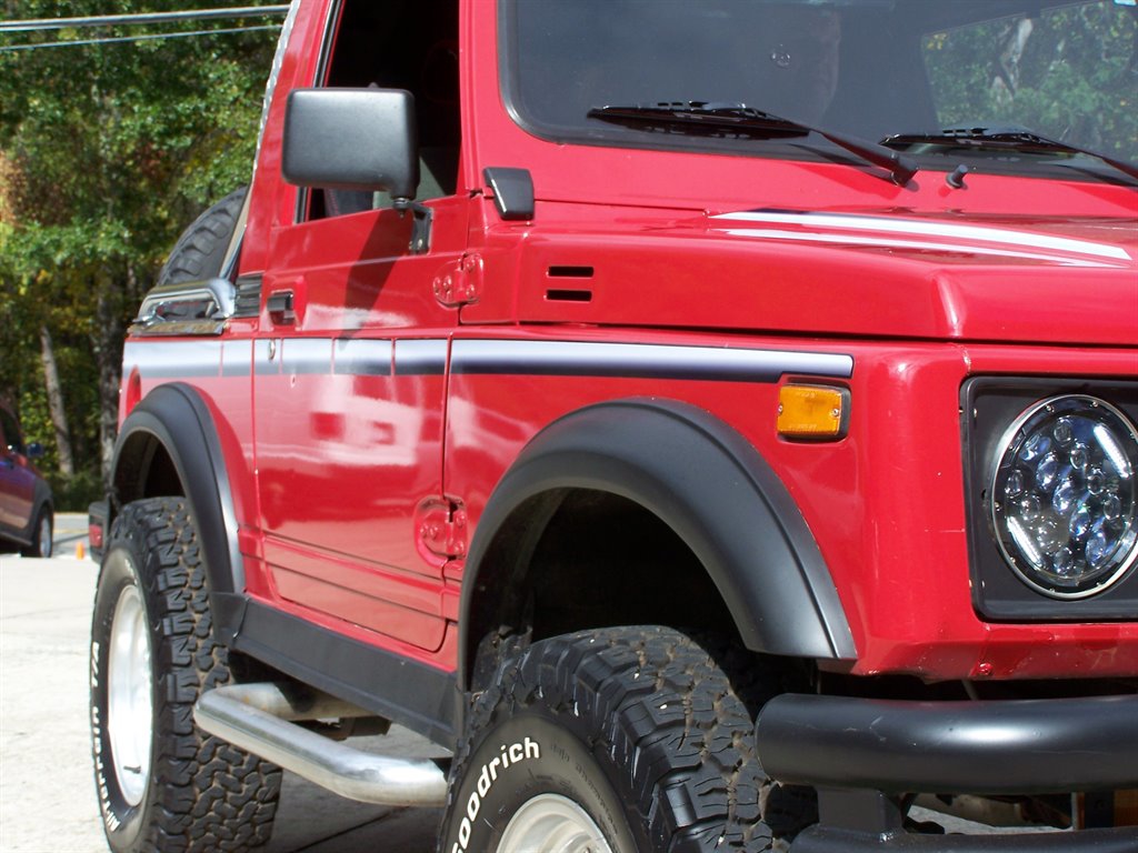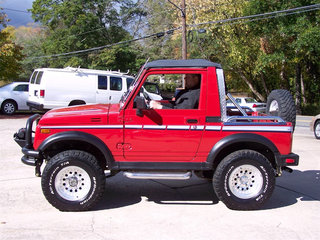 If your not viewing this vehicle on our website. Please view the 105 plus photos on our website at cherokeeautogroup.com Type in search 1987 SUZUKI in search tab! Just listed is this ultra nice 1 of a kind rock solid 1987 Georgia Suzuki Samurai JX pkg 4x4 5-speed transmission & Dual A/C with lots of extras! Wow does this Samurai have the look as they did back in the 80's! It's very hard to find them in this up-graded turn key condition! Take time to read description in full & see all photos to see what this one is about! It is a super neat looking ultra sharp rig! It's a solid non-rusty southern vehicle! They don't come with much better for a 38 years old! It has some neat features like cold factory front A/C, rear A/C with 3000w power inverter, hot heat, upgrade alternator, upgraded high output 2 bbl carb, advance curve distributor & MSD ing coil, Samurai does good on hwy & cruise's better than they did when new, customer that traded it stated it has upgrade 5.38 crawl ratio transfer case you can litteraly walk beside it when it's in 4 low at idel, unique Suzuki stripe & decal package, very rare factory 2002-2005 Honda Civic Si-R reclining suade and knited fabric special front seats, 2-3 inch shackle lift kit , Nice 30 x 9.5 15 inch RWL BF-Goodrich All Terrain tires, nice alloy wheels with original white spare rim with cover & jack is under hood, Nice custom tubular front winch bumper with nice 6k pound Xbull winch with synthetic rope & wireless remote, full front Suzuki Genuine carpet kit, nice soft top, Mr Cool traded this one in and loved his A/C so this is probabley the only Dual air conditioning Suzuki Samurai you will find! The top is nice as you see & clear rear port tinted window, nice tinted glass the pass side of glass has a bull's eye chip, power disk brakes, 12v plug in, 3000w power inverter to power up stuff when off grid, am/fm-cass radio, rear bed mat, roll bar with chrome up-grades, stainless bed rails, custom built diamond tread cab divider, stainless trim, stainless step bars, nice exhaust with cat converter & chrome tip, LED headlights, factory tachometer, factory clock, K & N air filter,Timing belt, water pump & seals were done approx 15k ago and we pulled cover and photographed belt SEE PHOTOS Oil change just done, strong 1.3L 2bbl 4cyl, tight 5-seed manual & smooth clutch, floor shift 4WD, 2 inch receiver tow hitch & more! Paint & body & pans are super solid & not rotted or rusty this rig show great with light dings! The gentleman we aquired it from really liked to stay cool on hot summer days so he added and extra MI-Dea air conditoner to it while the factory air works this thing stays cool enough so possibly your ice cream wont melt on the way home from the dairy queen with your significant other. He also traded out the higher geared 30+ year old transfer case for a Brand new lower 5.38 geared transfer case great for crawling. The paint presents very nice, super nice clean very tidy interior, nice correct engine bay, nice undercarriage! Clear Ga title, The miles listed in ad at 32xxx are what are showing on its 5 digit odometer. The Samurai will be sold mile exempt im excess of its mech limites.This one runs and drives nice & tight! These are few and far between in this condtion with it's originality & upgrades. The new owner should really like this neat rig! Samurai is parked in our showroom it is that nice! Please call ahead to set up a time to check it out!