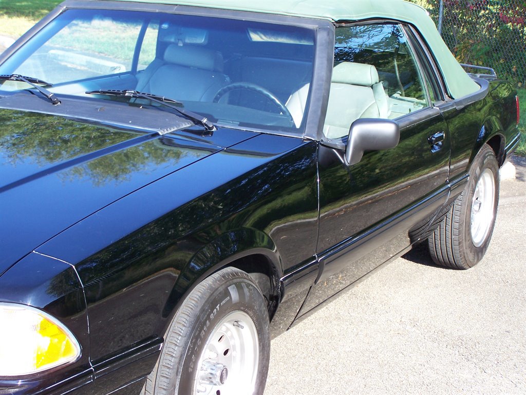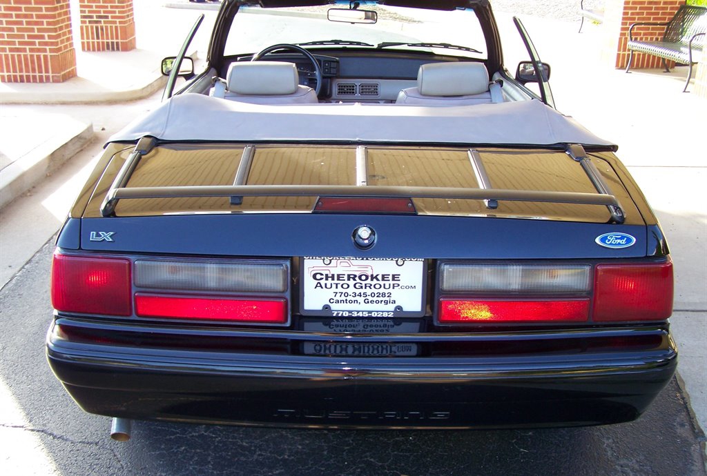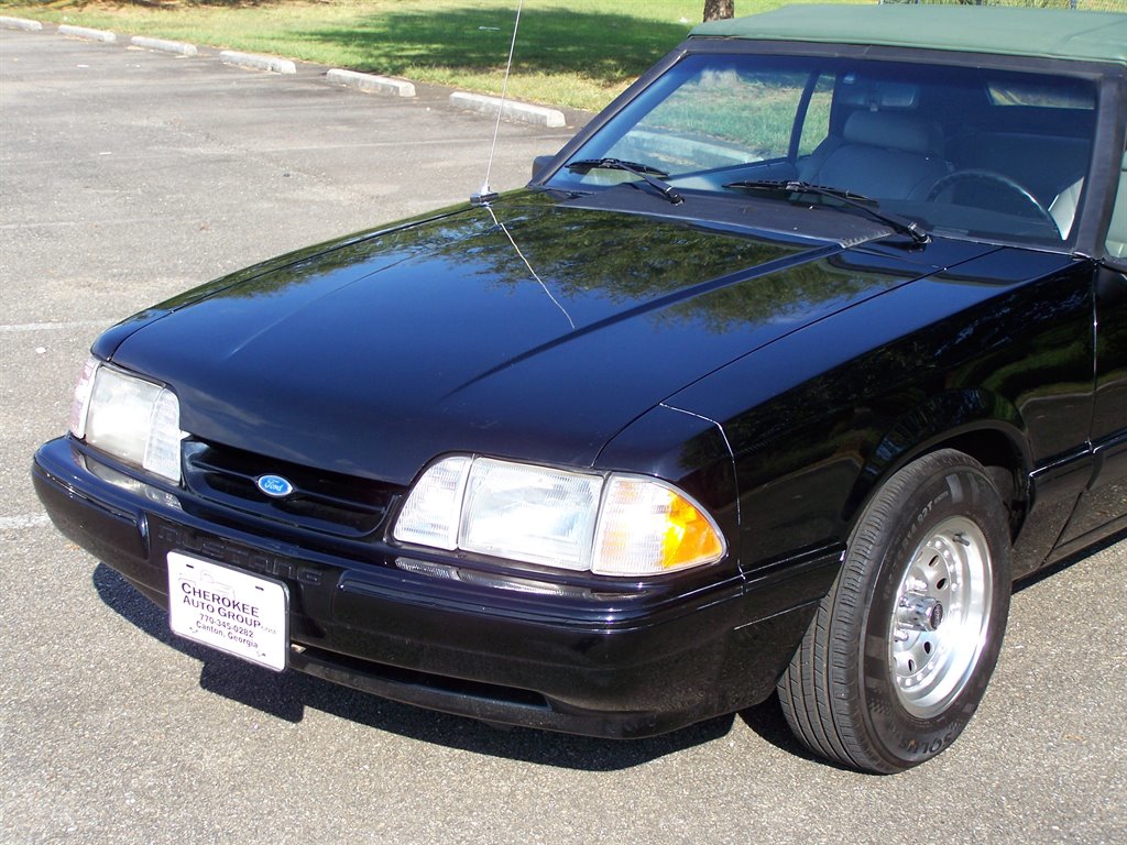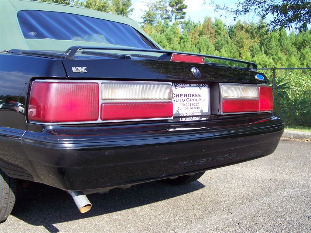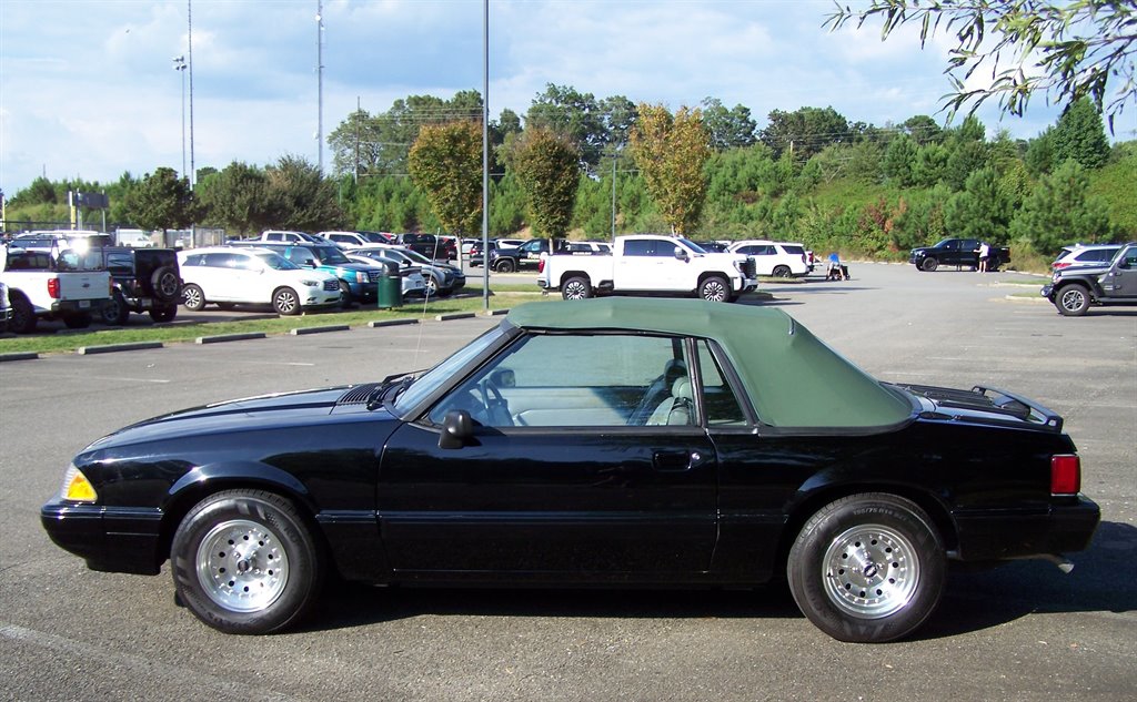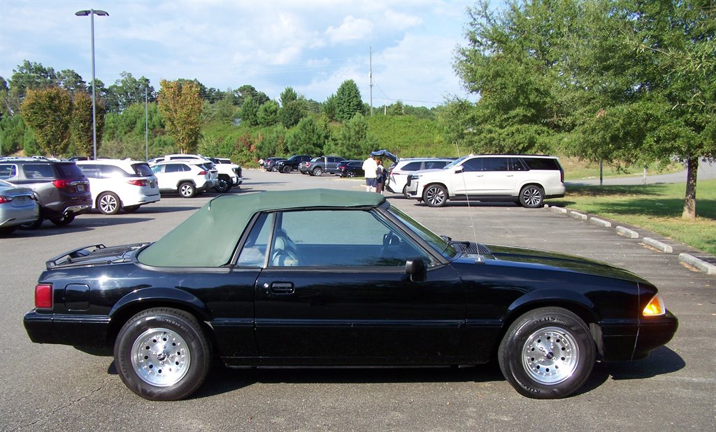 If you're not viewing this vehicle on our website. Please view the 95 plus photos on our website at cherokeeautogroup.com Type in search FORD MUSTANG in search tab! Just in is this fairley decent value priced 1992 Mustang LX Convertible 2dr EFI 2.3L Twin Plug 4-cyl & Automatic Fox Body Mustang its a neat one & bet you will not see another with this color combo! This little fella shows years of care & is a good looking 33 year old Mustang! This LX still has presentable black paint. Clean black trim & weatherstripping moldings. It has a very nice power green top with clear rear window & top boot & bag. It has nice original grey vinyl interior with presentable carpets & nice dash! It is in stock unmodified shape. Not a lot of these were built set up like this one & it's a fun little cruiser & really drives out smooth & comfortable. This car is loaded with power convertible top, automatic 4 speed overdrive, power windows the small rear quarter windows have intermittent issue, power door locks, working cruise, floor mats, cold a/c, heat, factory am/fm-cass, all books and manuals, Very sharp 14 inch American Racing wheels with new match set of BSW radials 200 miles ago, trunk rack, spare tire & jack & much more! This car runs & drives out strong & should be a neat one for new owner. We just had the original timing belt and belts replaced with new timing belt serviced and new drive belts! Odometer is a 5 diget odometer and reads 0,1316 it has turned past 99,999 and looks to be correct @ 101k. Mustang will be sold miles exempt in excess of it's mechanical limits. The market on these fox body Mustangs has increased over 20-30% in past approx 2 years & if this was a 5.0L in this condition it would be listed for over 25k. These are next in line to increase & finding decent driver quality ones like this in this condition are few and far between! This little rig is parked in our on-site showroom please call ahead to set up a time to check it out!