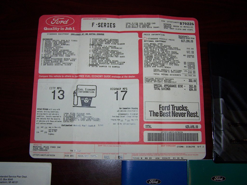 If your not viewing this vehicle on our website. Please view 110 plus photos on our website at cherokeeautogroup.com Type in search 1996 F150 in search tab! Just in is this very special survivor quality grade final OBS year 1-Owner 1996 Ford F150 XL with XLT Apperance pkg Reg Cab Short Bed 4wd that has only has 77k original miles. We do not not just throw this statment around this beauty could almost pass for half the miles! It runs excellent, looks great and is tight and smooth. This rig was just acquired from it's original family after right at 30 year of garaged fair weather pamperd use! Mr Poole purchased this beauty new on 5-15-1996 @ Marshal Mize Ford in Chattanooga Tenn. This was Mr Pooles main truck & living his best life he drove it thru his retirement and occasionally towed his small boat to fish & used it for odd jobs around his property. Most of these truck fell in wrong hands over the years because there were just cheap used vehicles for so long. There is no way you could restore one to this level and in end you have a restored truck and have way more in it than just starting with this gem. They are only orginal once and this is that kind of truck! This truck is a remarakable, non-smoker, original survivor! Its truly a fantastic F150! Power comes from a smooth Fuel Injected 5.0L 302 V8, linked to a automatic overdrive transmission, and the exterior is finished in Pacific Green Metalic & Silver Metallic lower accent Tu-Tone paint, Nice grey HD cloth upholstery. Riding on factory 15"³ Chrome wheels with match set of new 31-10-50-15 in BF Goodrich All Terrains 50 miles ago. The truck is equipped with manual locking hubs, manual transfer case floor shift 4wd, cold air conditioning, hot heat, no power windows, no power door locks, factory AM-FM-stereo, color match cab steps, nice color match ARE bed lid, no bedliner just a bed mat & bed floor looks great with light scratches, drivers side airbag, class III Reciever tow hitch, vent shades & much more! This F150 is now offered with excellent original documentation & items that include records, all owner's manuals, original window sticker, a clean history report, and a clean title & much more! The zero rust ultra clean body looks original & looks to be original paint, All weather stripping is clean, It has nice original pinstriping, grill and badging show fantastic. Other exterior features adjustable side mirrors, Factory original exhaust & more. Instrumentation consists of a crisp digital speedometer, and auxiliary gauges. Also recent service's in the past 50 miles to the tune of approx $2300 plus were performed that include a service & inspection @ Dayton Ford in Dayton Tenn that consist of synthetic blend oil & filter change, coolant flush, t-stat, new egr sensor, driveability, brake, suspention, steering inspections & brand new New tires. It runs and drives out smooth and strong & tight & ready for action! This is a original un-restored condtion F150 and shows spectacular even if it was a 5 year old much less almost 30 year old! It has very nice under carrage, very nice engine bay & original thru-out! The new owner should really love this solid investment quality F150!