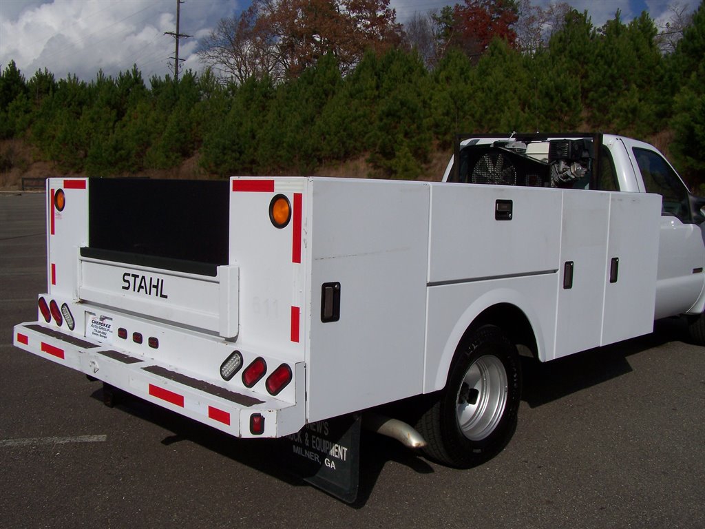 If your not viewing this vehicle on our website. Please view the 95 plus photos on our website at cherokeeautogroup.com Type in search F350 in search tab! Just in is this nice very well kept & set up to work Georgia rust free 1-Owner Ford F350 1-Ton Super Duty XL 2WD Regular Cab Dually 165 inch wheel base with the 6.0 Powerstroke Turbo Diesel! Its all stock with no power adders & has modern style 11x8 Stahl Utility bed with bed with Rhino Lined coating on top surfaces & utility bed is very nice & presents well! If we did not already have a trusty F250 dealership service truck this would not be offered for sale and we could probably run it for the next quarter century! It shows great in and out & is very presentable & tidy & has been well kept! This is a very clean non-beat down HD work truck that has had a easy life! This solid southern truck is one rare find in this shape & has lots of nice feaures! It has smooth strong 6.0 Power Stroke Turbo Diesel v8, Automatic Torqueshift 5-speed, nice clean solid updated design Stahl Utility bed approx 11.5 length x 8.5 width on outside & inside specs are 11 foot long by 4.5 foot wide & 2 foot tall. Nice strobes and LED headlights & factory lights really light this rig up, Inop onboard air compressor with Honda engine, tow hooks, rear step/work bumper, receiver class III tow hitch, 16 inch Factory Steel wheels, 6 nice matched set of Firestone Transforce Ht3's with great tread, headliner package, full vinyl interior with vinyl floor, cold a/c, guage package, am/fm Stereo and much more! There is no telling how long this simple pre-DEF 6.0 will last for new owner? This is a Bone Stock truck with 0 modifications unlike the 200k+ mile 6.0's that have been driven like it owes you money giving the 6.0 a bad reputaion, With continued good maintance theres no telling how long it could last. Will it out last a new one? Its like your favorite saddle, anvil or hammer thats tough to wear out! This is one awesome rig and new owner should really like it for this deal! Please call ahead to set up a time to check it out!