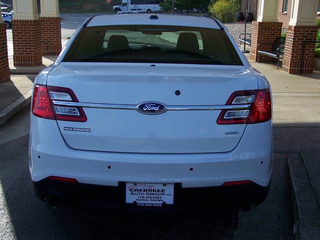 If your not viewing this vehicle on our website. Please view the 75 plus photos on our website at cherokeeautogroup.com Type in search 2015 Taurus in search tab! Just in is this super clean local Interceptor pkg 105k original mile low idle hour Police pkg 3.5L AWD Cruiser! This solid southern vehicle is loaded and is one smooth machine & came from local Board Of Education! Check out the equipment list it has the 3.5L Twin Turbo Ecoboost DOHC H.O fuel injected v6 with factory duel exhaust, automatic overdrive, tilt/cruise, systems monitor, power drivers seat & console, nice fresh clean interior with premium HD cloth front seats, Goodyear Eagle RSA performance pursuit tires with matching full size spare, led spotlight, rear window cages to impress your frends, nice clean bright white paint and body, intererior accent pkg, Microsoft SYNC am/fm/cd with aux imput usb, power pedels, steering wheel controls, power windows, power door locks and much more! This one runs and drives out smooth as you would expect and new owner should really like this one! Its serviced and ready to enjoy!