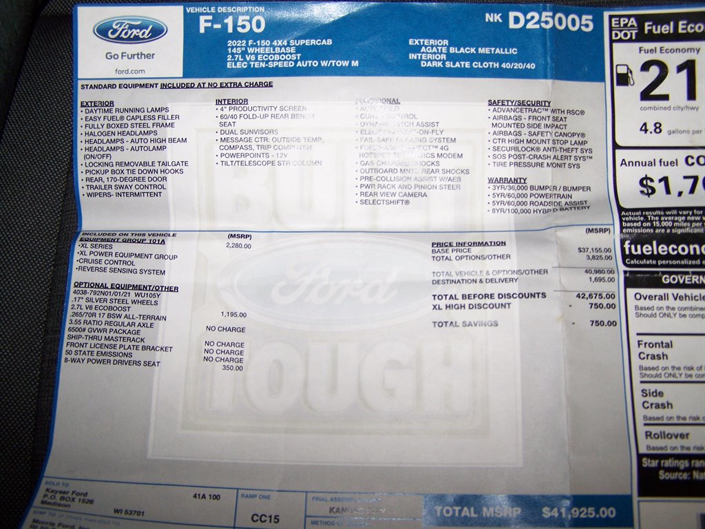 If your not viewing this vehicle on our website. Please view the 90 plus photos on our website at www.cherokeeautogroup.com Type 2022 Ford F150 in search tab! Just in is this sharp 2022 Ford F-150 XL 4-Door Supercab Short Bed 4x4 with the fuel-efficient yet powerful 2.7L 335hp EcoBoost V6 mated to a 10-speed automatic transmission. This truck runs great w/ 165k miles, drives smooth, and is ready for work or daily driving. This truck has a colored match Leer 3 window accessible locking camper shell and looks great! Sitting on Goodyear Wrangler All Terrain 265/70R17s, mounted to a set of Tu-Tone Graphite & Black Raceline wheels. Some of the options include are equipment group 101A, 3.55 gear ratio, rear view camera, auto hold, curve control, fail-safe cooling system, no tow hitch & looks to have never towed anything, 8 way power drivers seat, apple carplay, android auto, pre-collision assist, touch screen radio, drive mode select, 4x4 shift-on-fly, cruise control, reverse sensing system and so much more! This truck is priced right and ready for its future home. New owner should be very pleased with the condition & value of this truck, as it seems to have had a fairly easy life! Please feel free to reach out with any questions and set up a time to check her out.