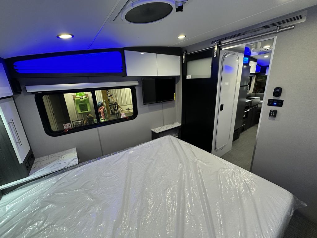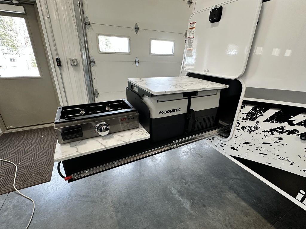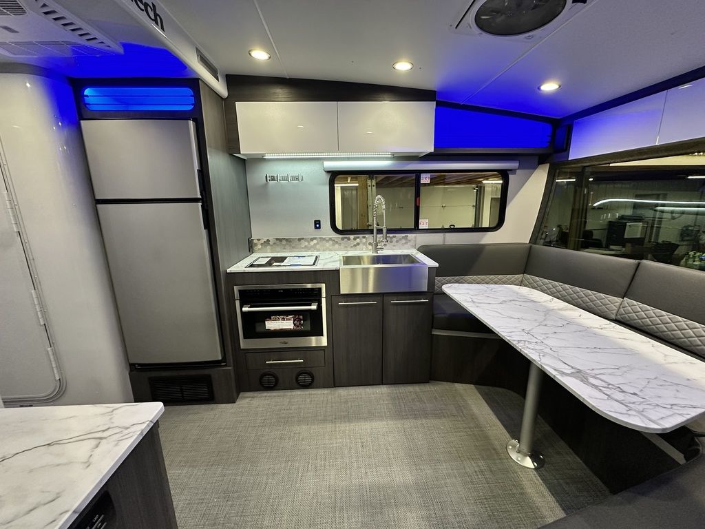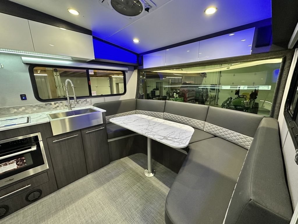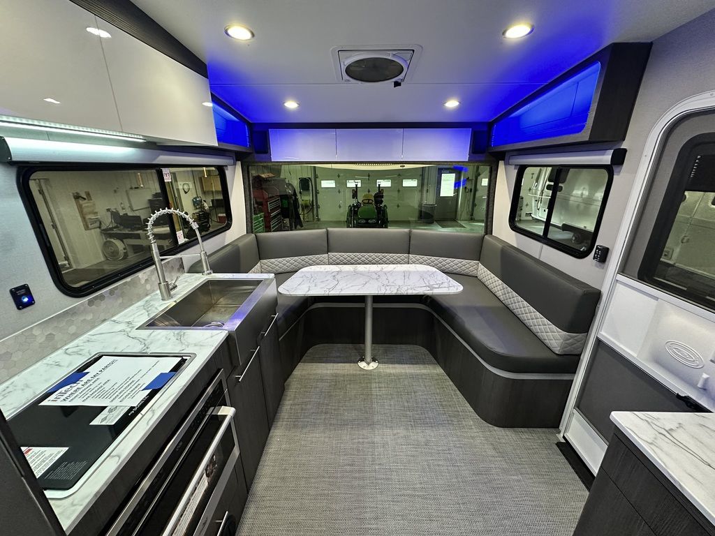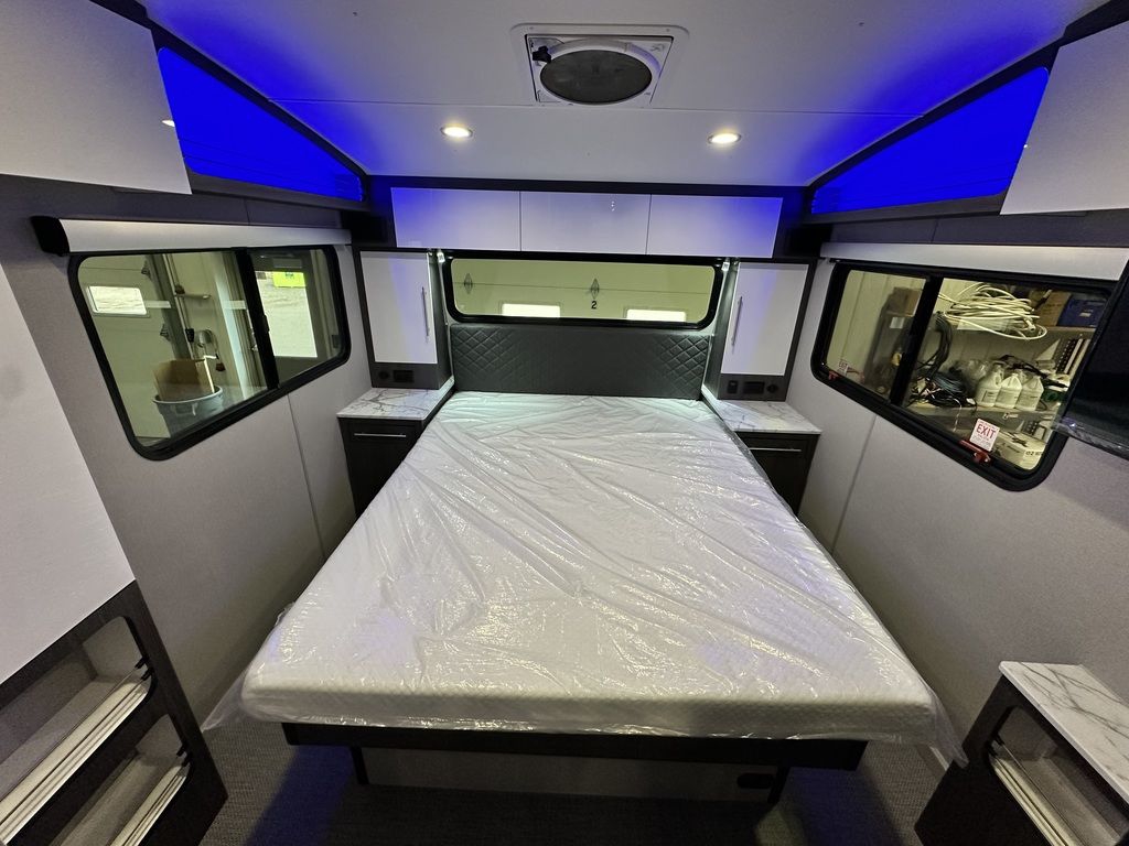 CREATIVE SPACEinTech is exceptional at making smaller spaces feel large. Utilizing what we call “Tilt–Forward Design”, we have taken advantage of the unused space over the trailer's A-frame.