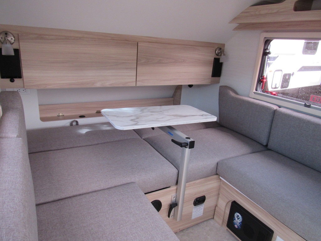 Experience the timeless charm of the TAB 320 S, the iconic teardrop trailer that revolutionizes compact camping while ensuring you have all the essential amenities. This camper boasts a galley kitchen, a convenient wet bath, and a versatile U-shaped dinette that effortlessly transforms into a cozy sleeping space. Whether you're embarking on a short weekend escape or an extended camping expedition, the TAB Teardrop Camper provides everything you need for a delightful and comfortable camping experience. Embrace the allure of minimalist camping without compromising on functionality with the TAB 320 S.