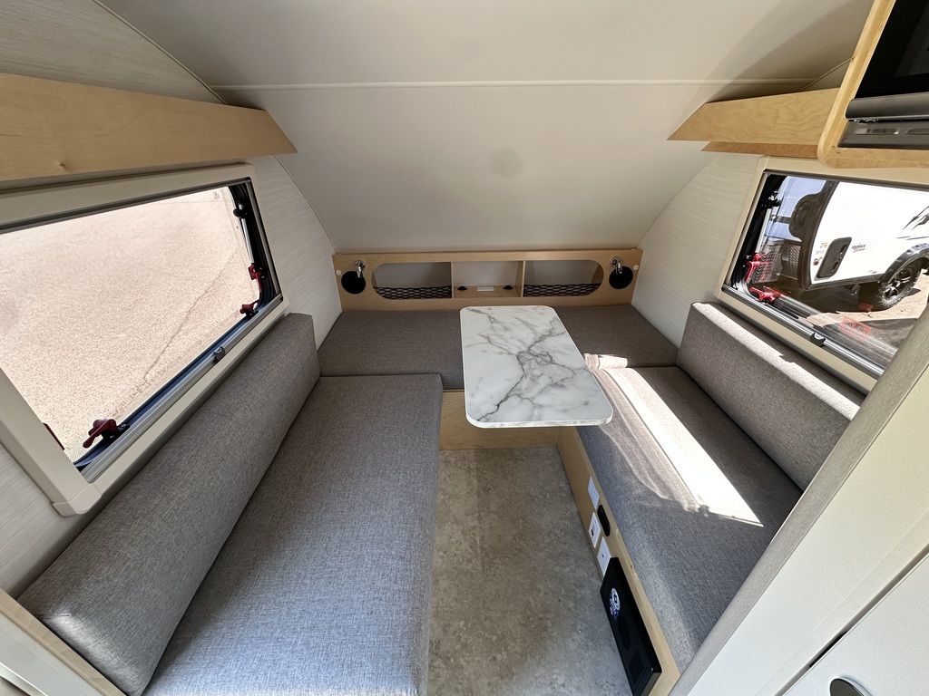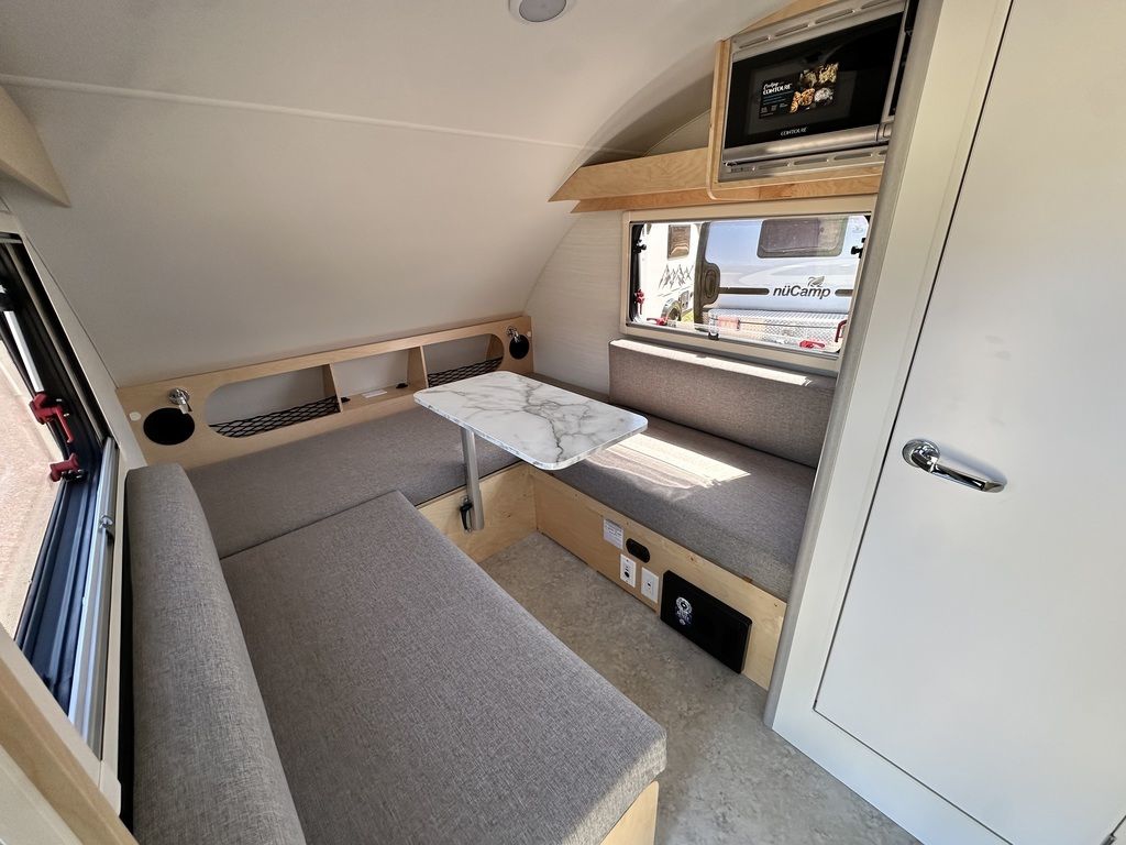 Experience the timeless charm of the TAB 320 S, the iconic teardrop trailer that revolutionizes compact camping while ensuring you have all the essential amenities. This camper boasts a galley kitchen, a convenient wet bath, and a versatile U-shaped dinette that effortlessly transforms into a cozy sleeping space. Whether you're embarking on a short weekend escape or an extended camping expedition, the TAB Teardrop Camper provides everything you need for a delightful and comfortable camping experience. Embrace the allure of minimalist camping without compromising on functionality with the TAB 320 S.