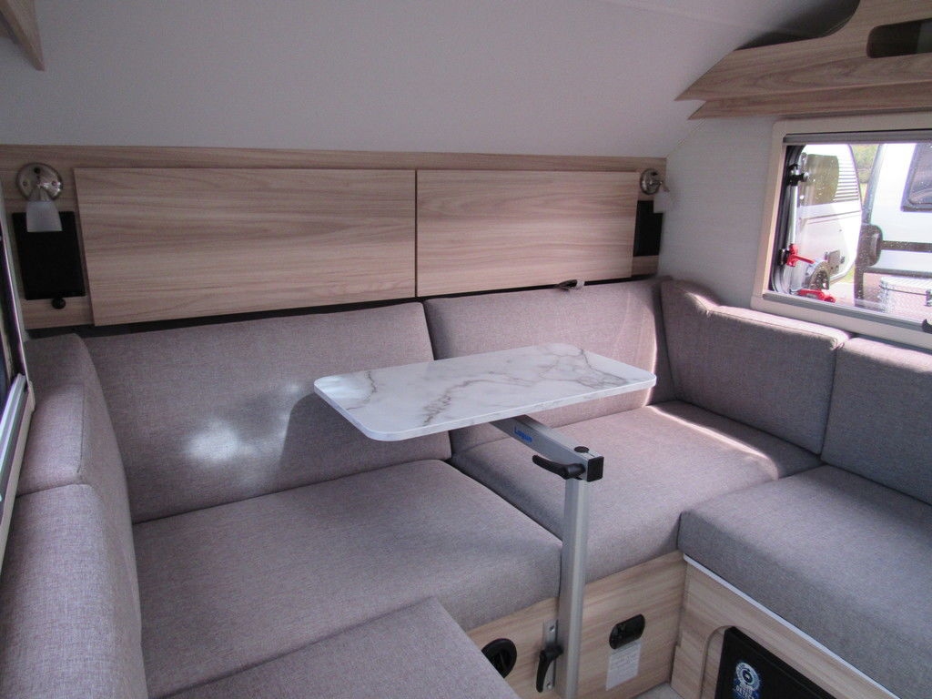 Experience the timeless charm of the TAB 320 S, the iconic teardrop trailer that revolutionizes compact camping while ensuring you have all the essential amenities. This camper boasts a galley kitchen, a convenient wet bath, and a versatile U-shaped dinette that effortlessly transforms into a cozy sleeping space. Whether you're embarking on a short weekend escape or an extended camping expedition, the TAB Teardrop Camper provides everything you need for a delightful and comfortable camping experience. Embrace the allure of minimalist camping without compromising on functionality with the TAB 320 S.