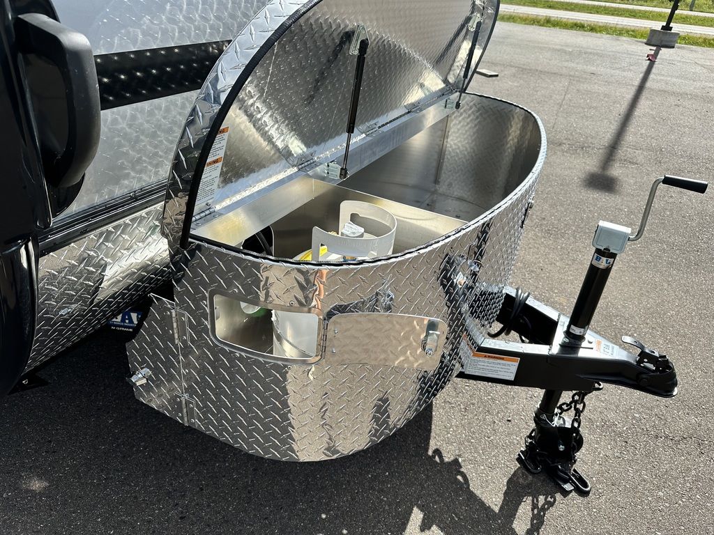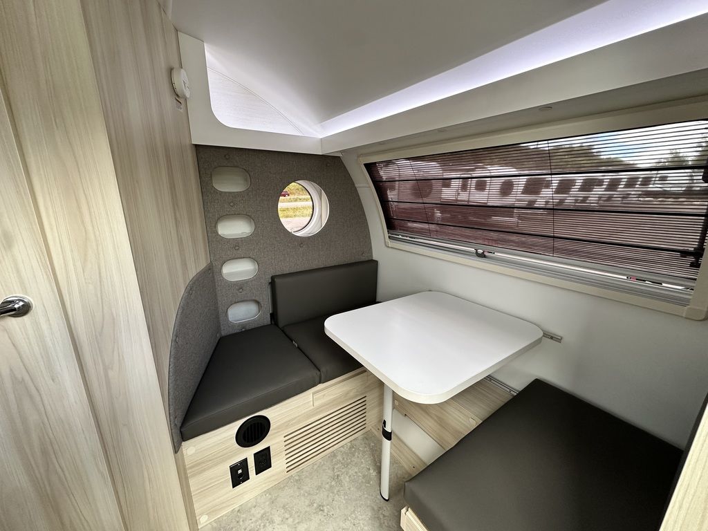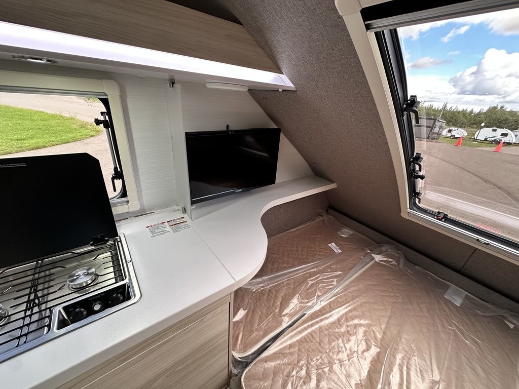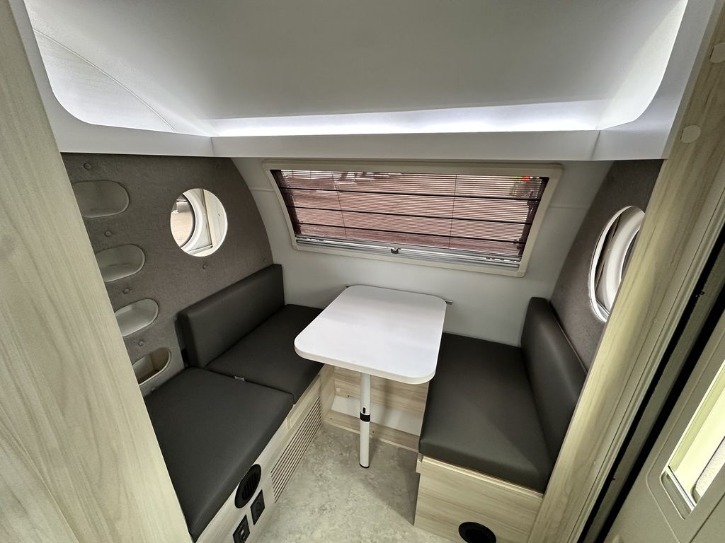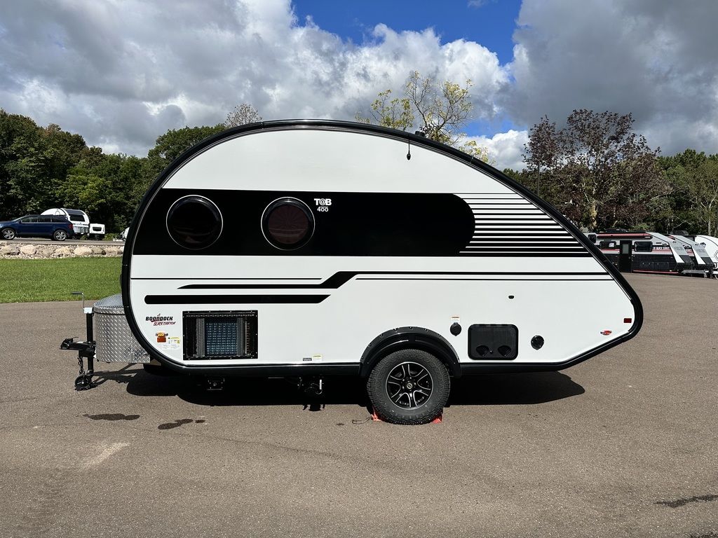 The TAB 400 is the ideal choice if you're drawn to the unique shape of teardrop trailers but require extra space. This versatile trailer offers a comfortable dinette, a dedicated queen-size bed, a spacious wet bath, a galley kitchen, and ample storage. One thing that sets it apart is the option to have a hidden bunk, easily accessible when needed and cleverly concealed when not in use. This makes the TAB 400 perfect for small families or grandparents who enjoy occasional camping trips with their grandchildren. With its comprehensive features, the TAB 400 truly becomes your home on wheels.