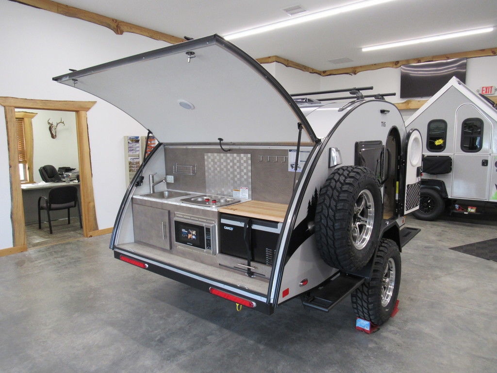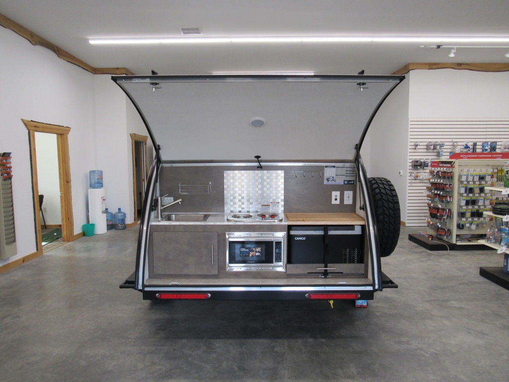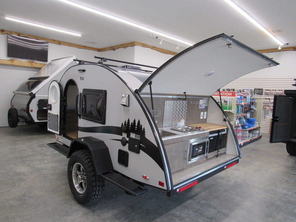 The TAG teardrop trailer is a lightweight and easily towable option, perfect for enhancing your camping experience. Despite its small size, it is packed with all the necessary amenities found in a "tiny home" to ensure a comfortable camping trip. The well-equipped rear galley allows you to enjoy the surrounding nature while preparing meals. When night falls, you can relax in the warm and cozy interior, featuring a large window for stargazing. The TAG XL offers a 12-inch expanded interior if you desire more space. Wherever your adventures take you, the TAG teardrop trailer is always ready to accompany you on your exciting journey.