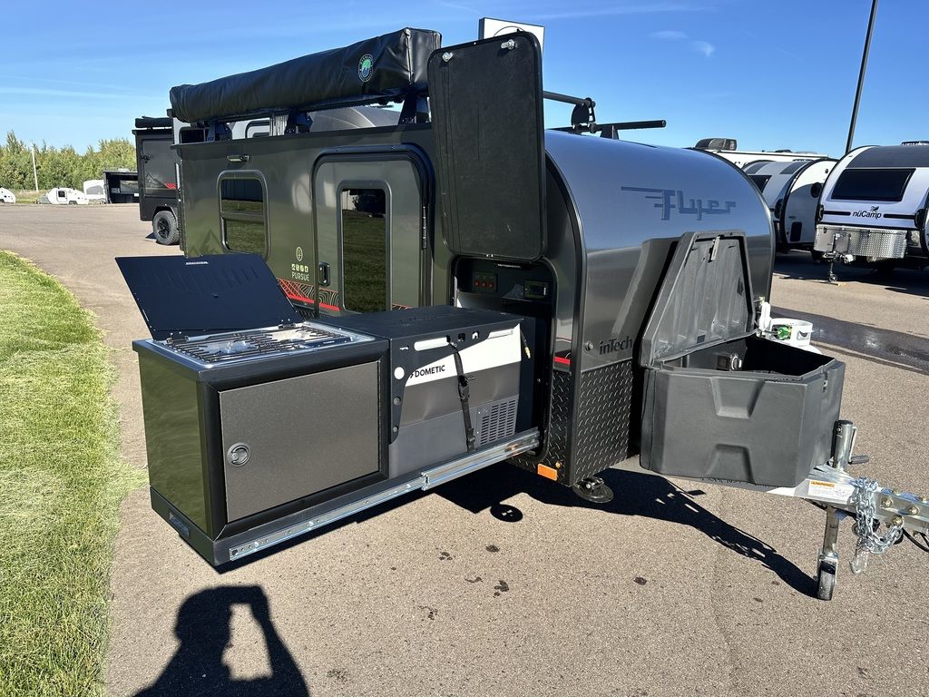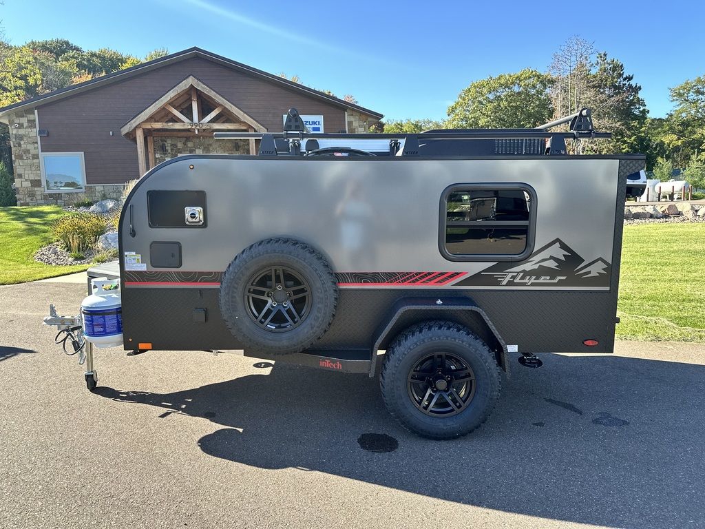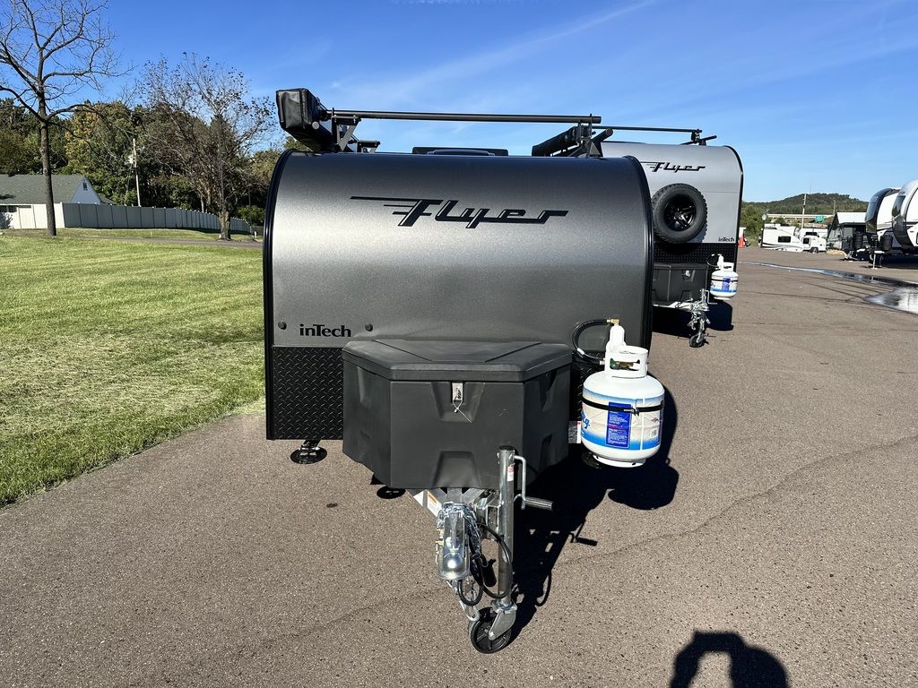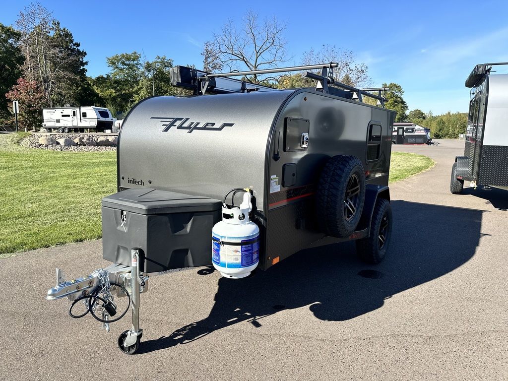 Additional Options: Flyer Adventure Package, 270 Degree Awning, 12K BTU LP Furnace, 8.5 Gallon Fresh Water Sysem, Charcoal Exterior Color