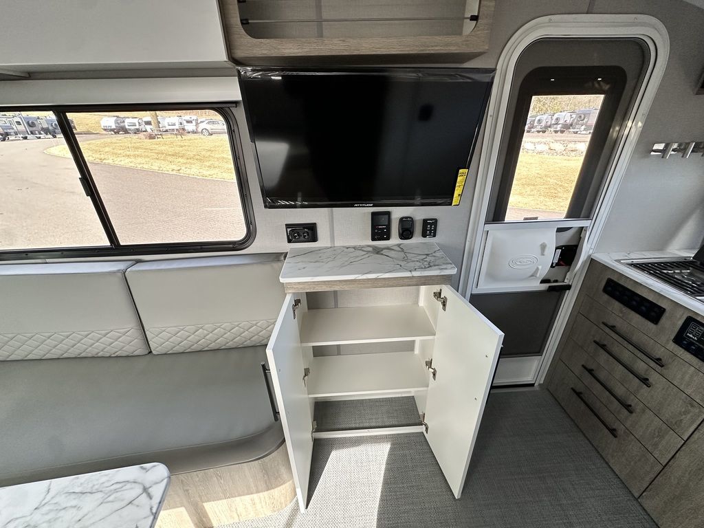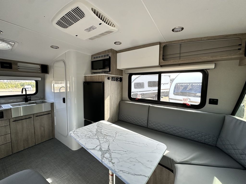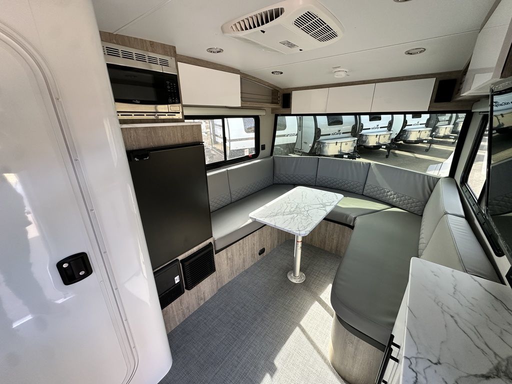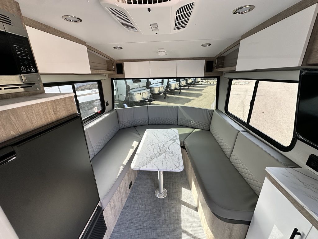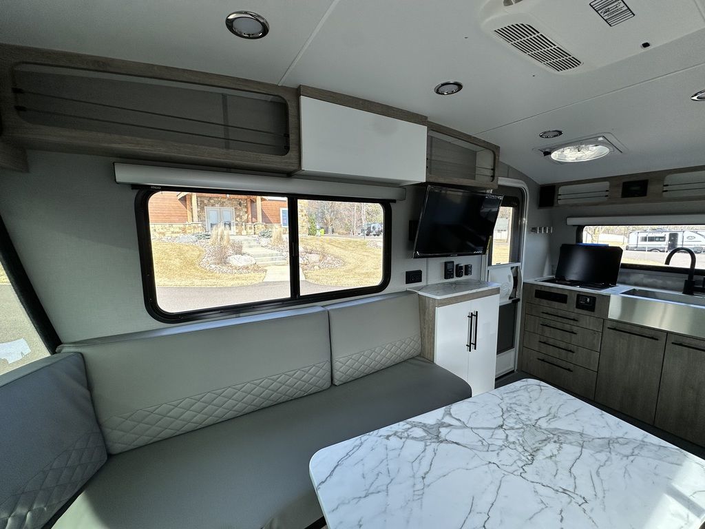 Sol Dawn is unlike any other camper, featuring a massive 3-ply laminated glass panoramic front windshield. You won’t find a better view of the great outdoors in any other camper! Sol Dawn features an inviting front dinette with seating for up to six adults directly in front of the impressive panoramic windshield, keeping you connected to the great outdoors!