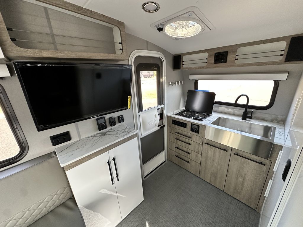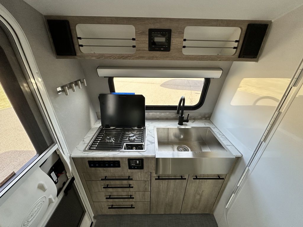 Sol Dawn stands out with features such as: Spacious dinette that seats up to 6 adults, large 7' awning, sizeable wet bath, luxurious kitchen with enormous farmhouse sink, commercial-grade faucet and two-burner LP stove with a cast iron grate.