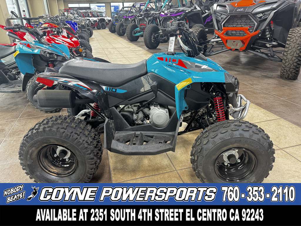 SMALL ATV, BIG SMILES. The Renegade 110 EFI gives riders aged 10 and up a more thrilling, connected riding experience—with a throttle limiter for full speed control.
