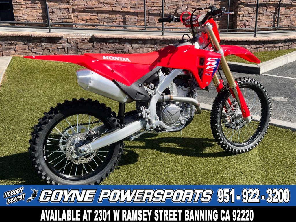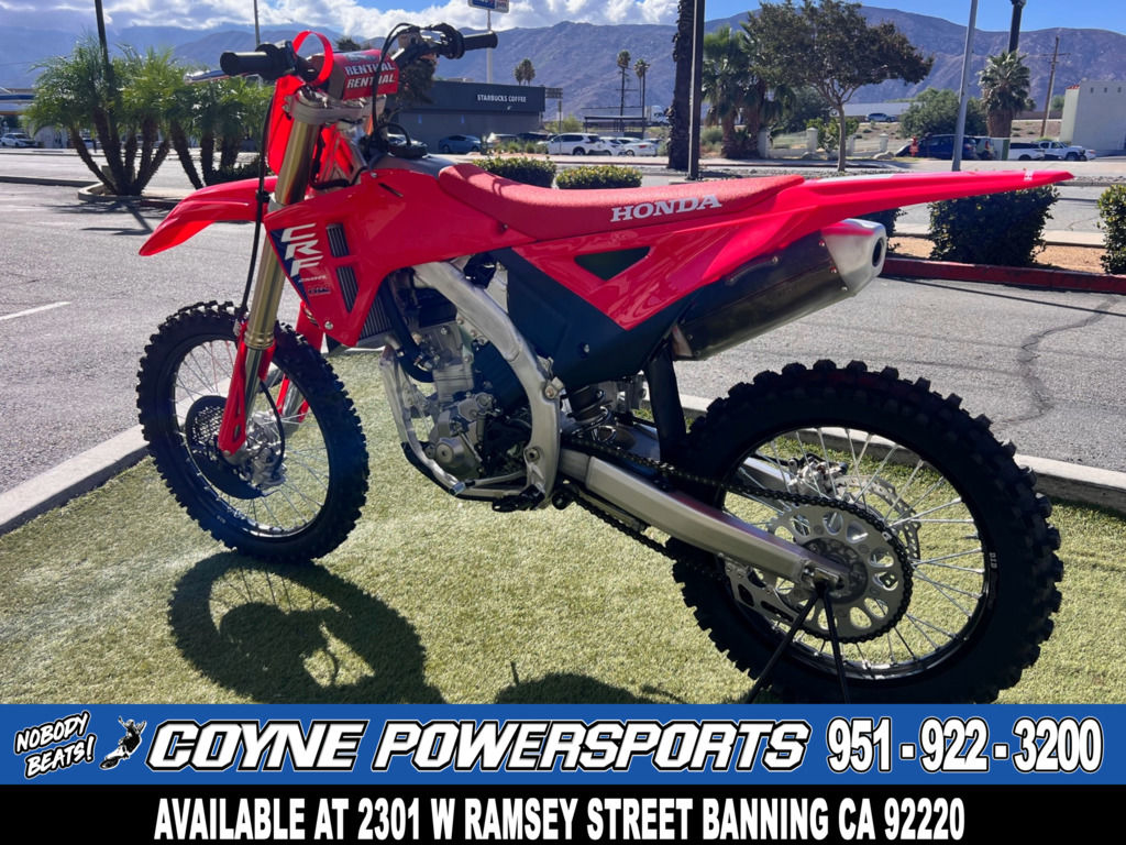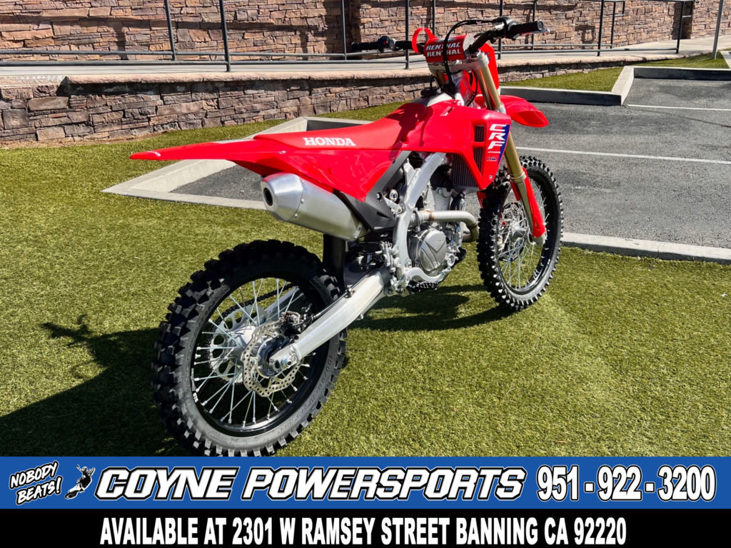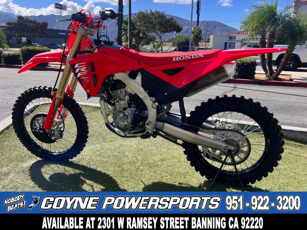 Like our factory racebikes, our CRF competition lineup features the vertically stacked CRF logos that look fast even sitting still.