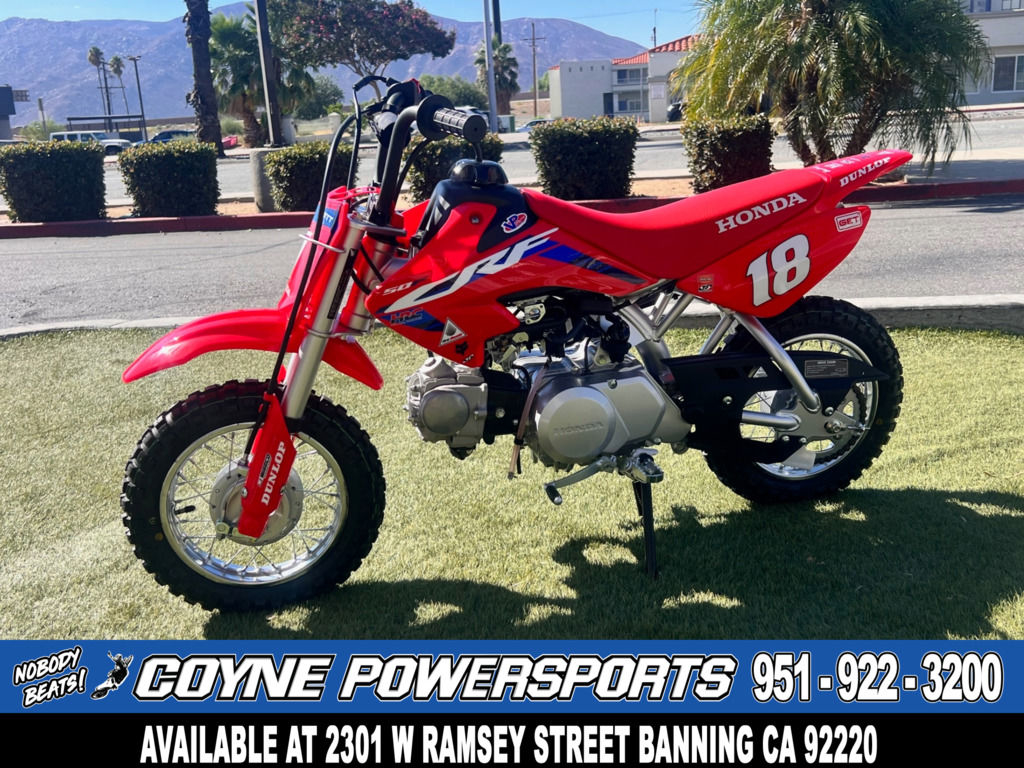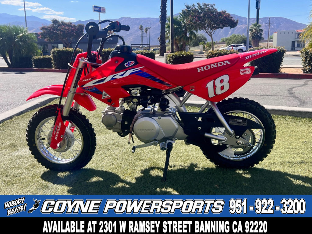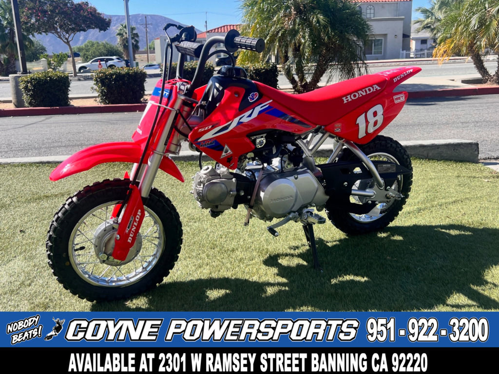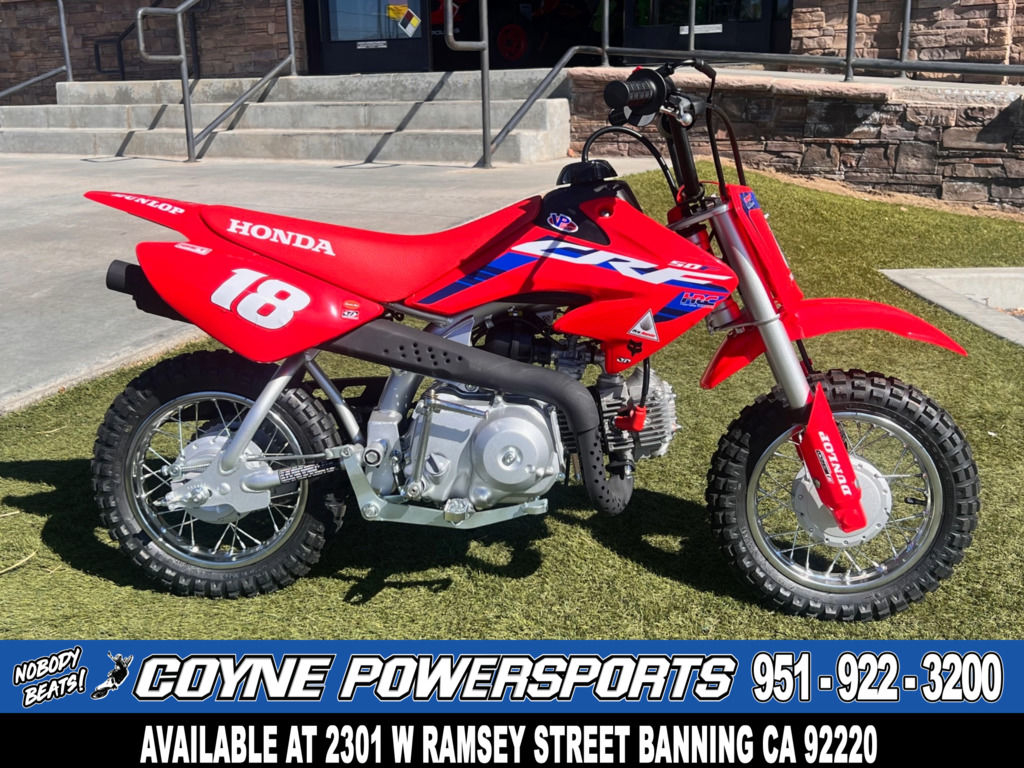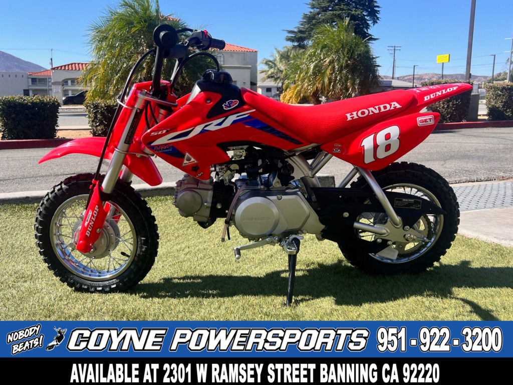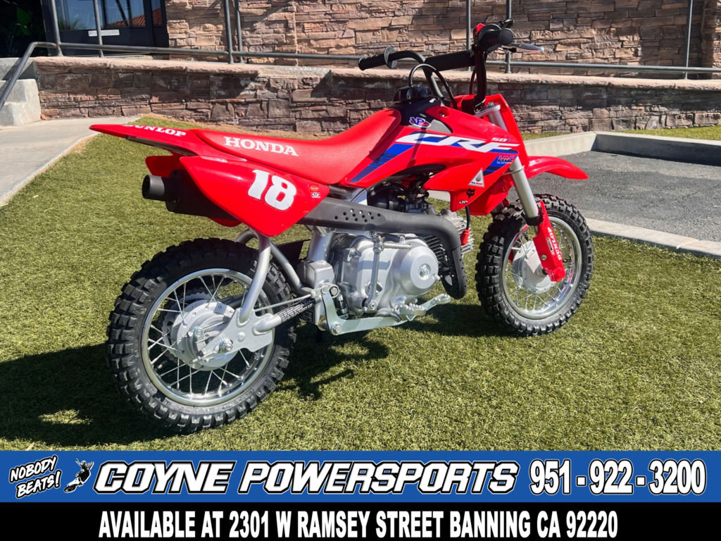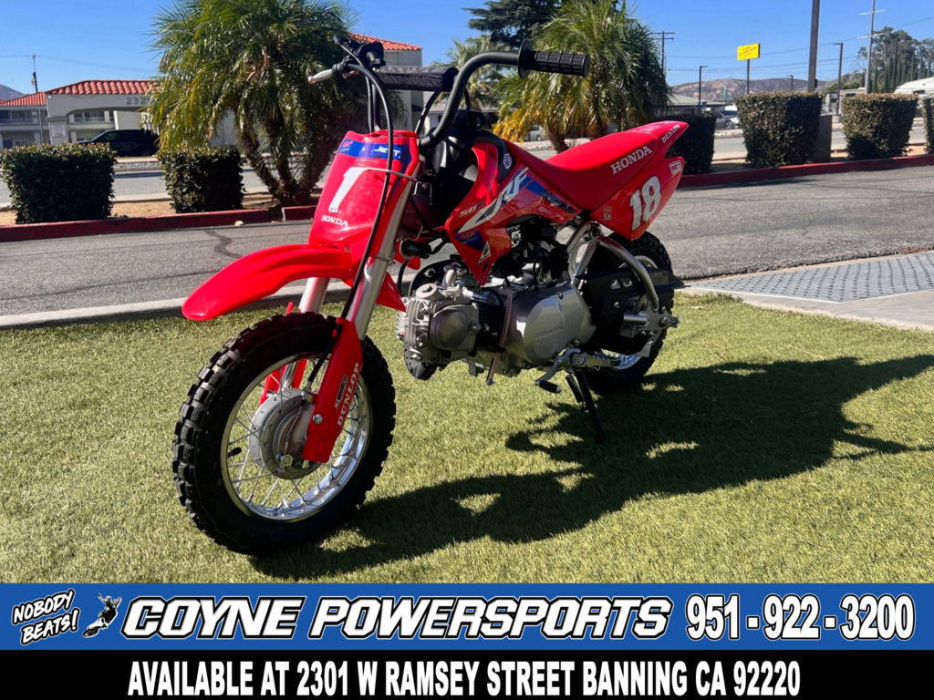 A perfect first bike for young riders, the CRF50F has a smooth four-stroke engine, automatic clutch, and kid-friendly controls. Keyed ignition and an adjustable throttle keep things safe, while the fun speaks for itself. Start their riding journey the right way—on a Honda.