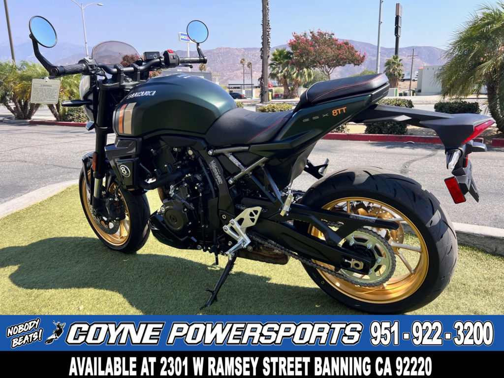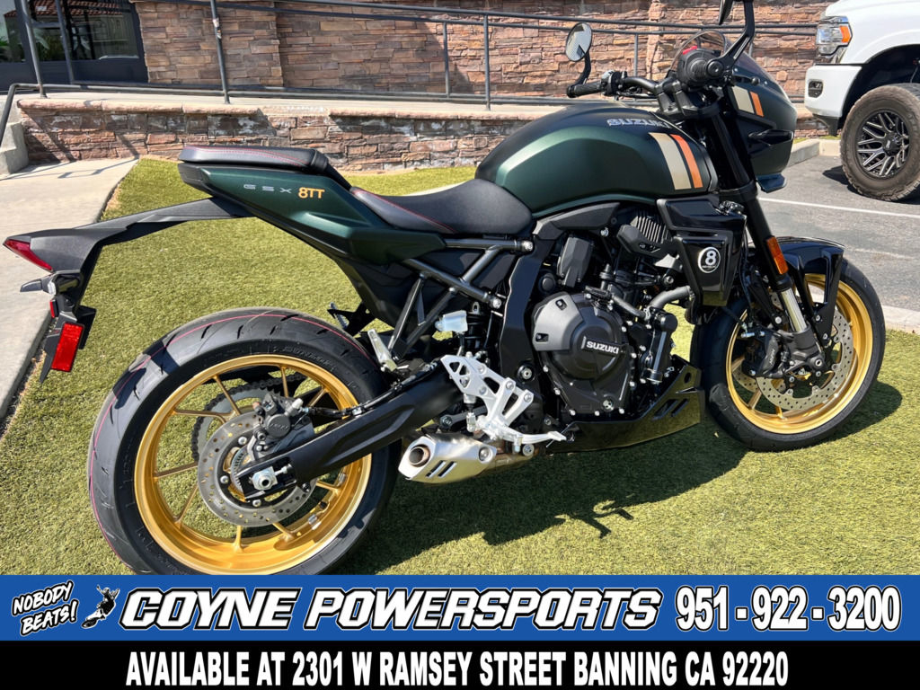 - The GSX-8TT features a stylish seat with stitching on its smooth cover to match its sporty image, complementing the handlebar-mounted quarter fairing and chin spoiler and the overall styling of the motorcycle.