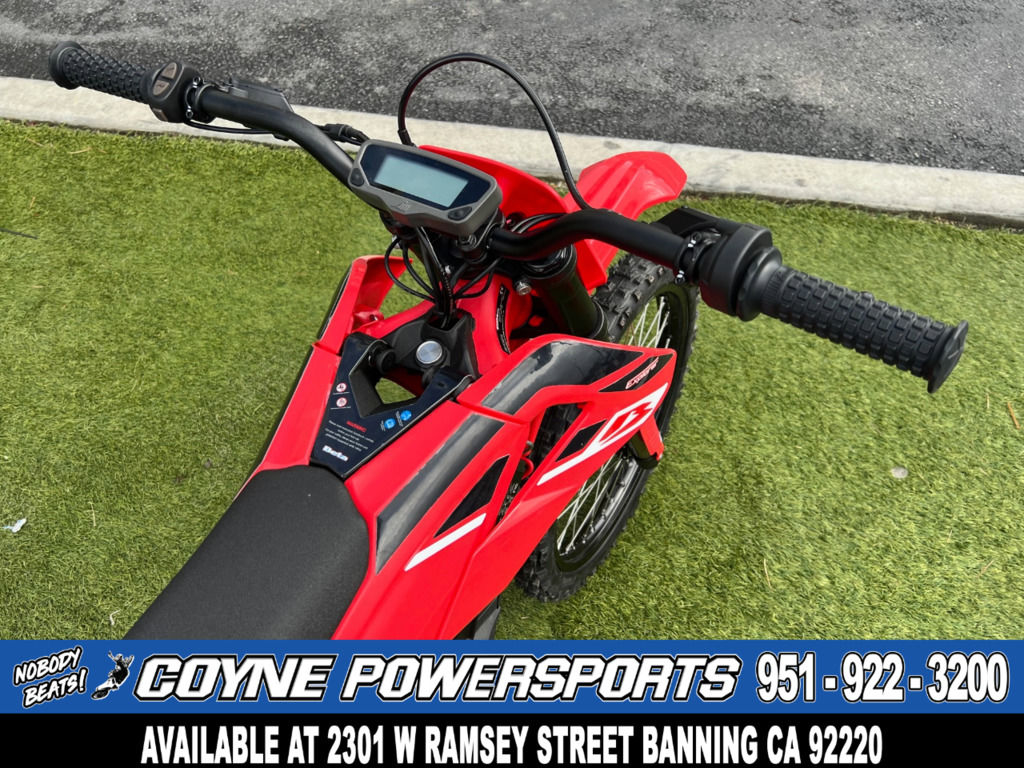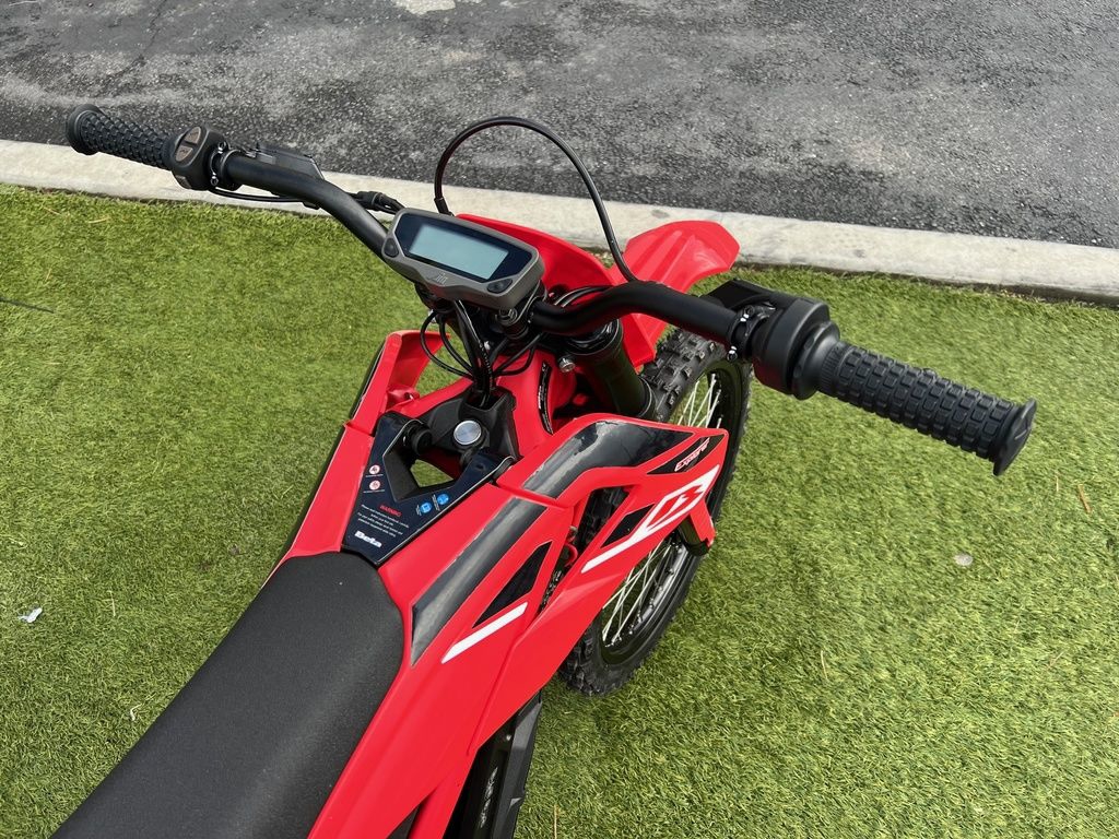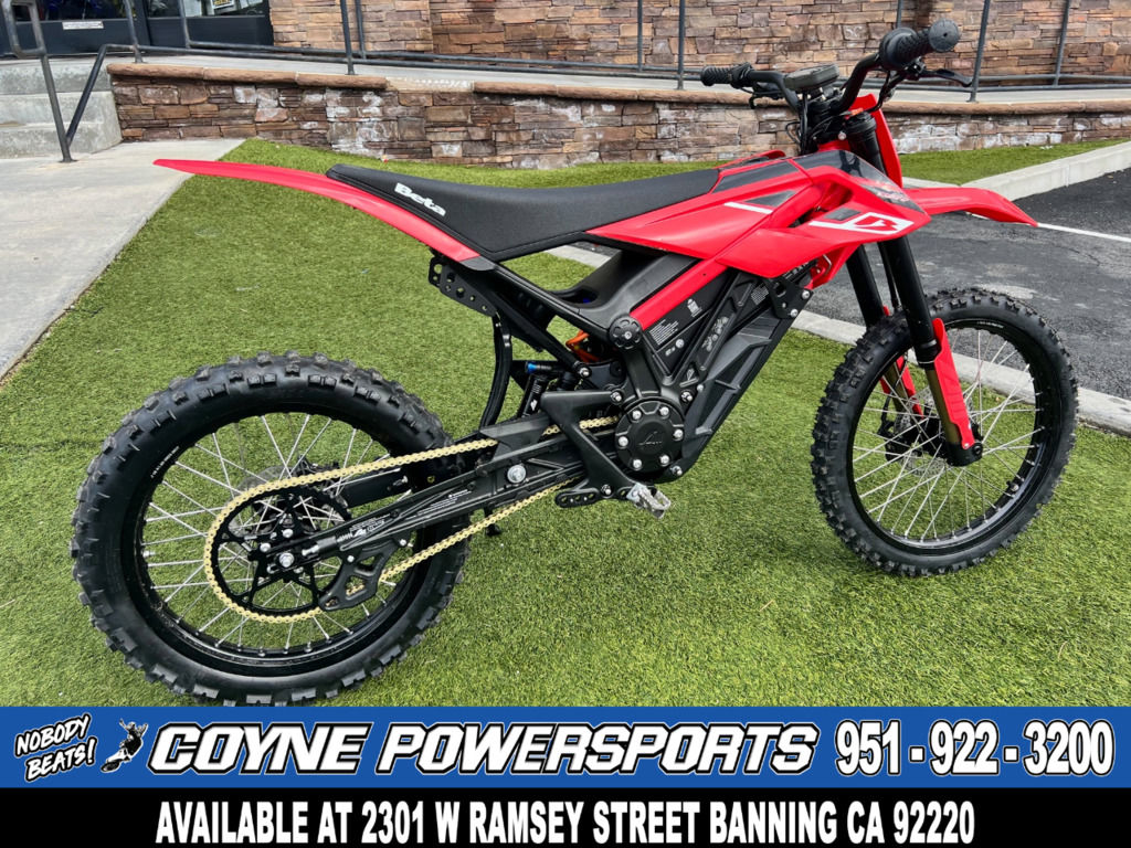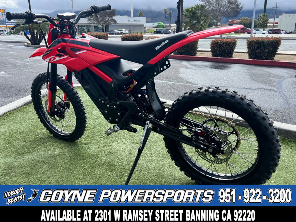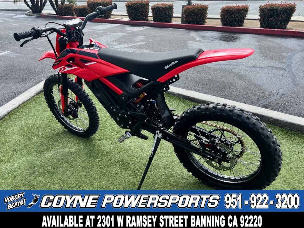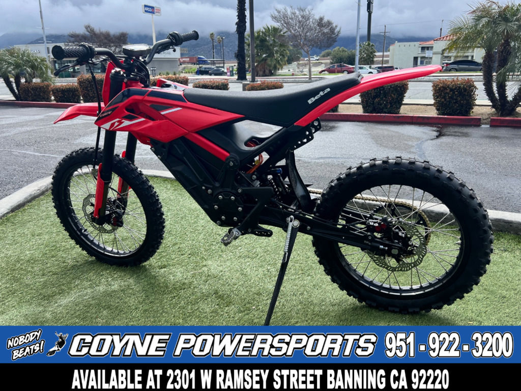 The new 2024 Beta Explorer electric dirt bike is a small-chassis trail bike aimed at “trail riding, camping, hunting, or just working around the ranch.” It features a 17 horsepower motor with a 74-volt, 34 Ah hot-swappable battery, giving the Explorer a top speed of 40 mph.