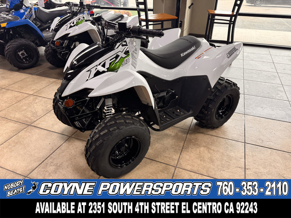 Four-wheel fun starts with KFX®. Get the kids outdoors and ready to ride on the KFX®90 ATV line with proportionate power and size for riders ages 10 and older. KFX90 ATVs let kids take on more challenging tracks and bigger adventures with an 89.9cc engine and sporty suspension.