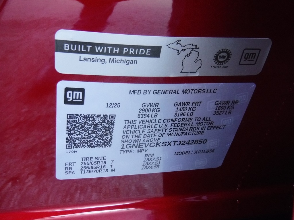 • VIN Number: 1GNEVGKSXTJ242850
