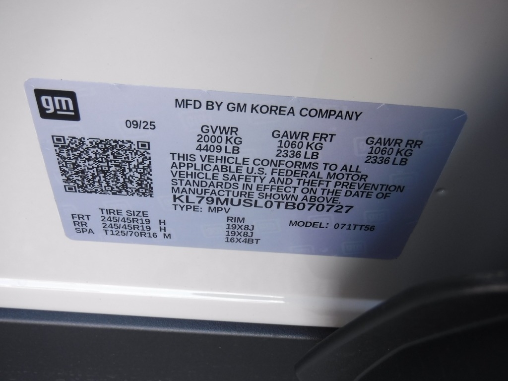 • VIN Number: KL79MUSL0TB070727