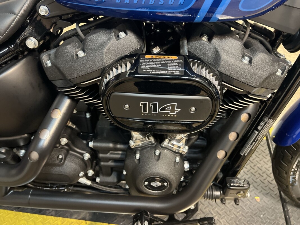 The 2024 Street Bob 114 is stripped down, dialed in, and built to hit hard the moment you twist the throttle. It’s raw Big Twin attitude wrapped in a minimalist package that puts performance front and center.Powered by the Milwaukee-Eight® 114 V-Twin, it delivers aggressive torque and instant response, launching you forward with that deep, unmistakable rumble. The lightweight Softail® chassis keeps handling sharp and agile, while mid-mounted controls and a mini ape-hanger handlebar create an upright, commanding riding position.Blacked-out finishes, chopped fenders, and wire-spoke wheels give the Street Bob 114 its gritty, no-nonsense look. A solo seat reinforces its rebellious spirit, while modern essentials like LED lighting and advanced braking technology ensure control matches the power.The 2024 Street Bob 114 isn’t overloaded with extras and that’s the point. It’s pure motor, pure style, and pure attitude. Just you, the engine, and the open road.