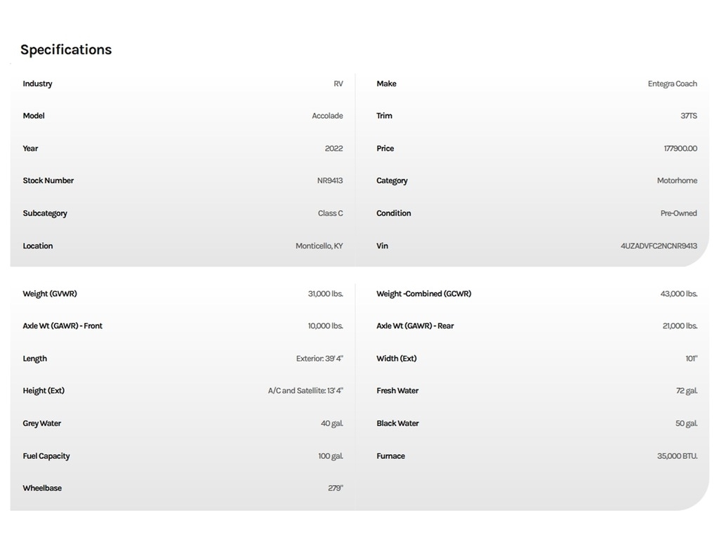 • Make: Entegra Coach