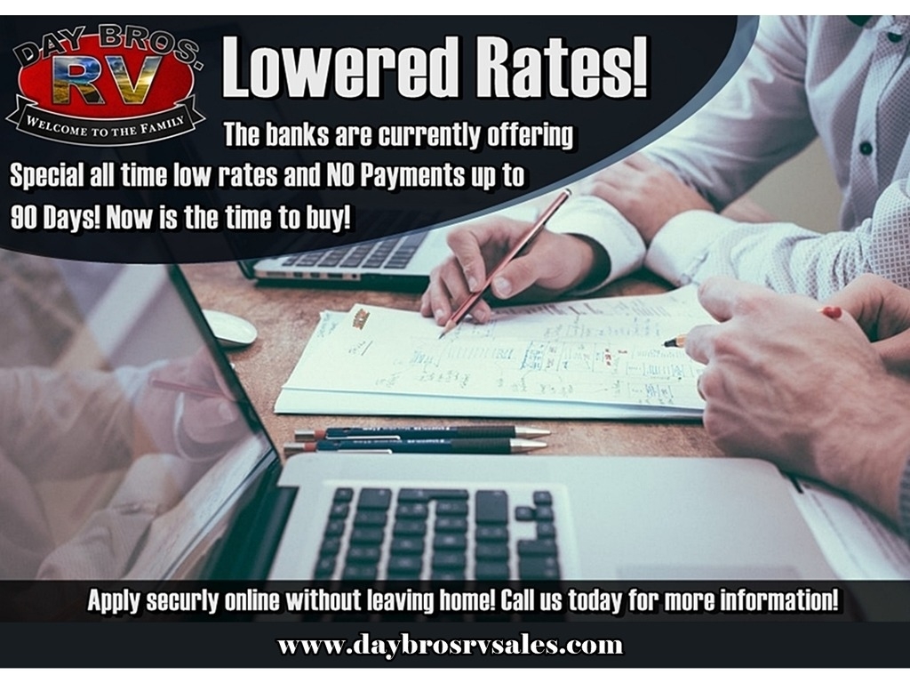Our finance department has over 15 years of experience and knows the ins and outs of financing your purchase. Our department will work to get you the best rates, terms, and lowest down payments possible. You might even qualify for zero down! We are able to get most approvals in less than 20 minutes. We can take your application by email at danielle@daybrosrvsales.com, over the phone 1-866-546-9579, or you can apply online at www.daybrosrvsales.com. Finance is standing by 6 days a week ready to take your application.