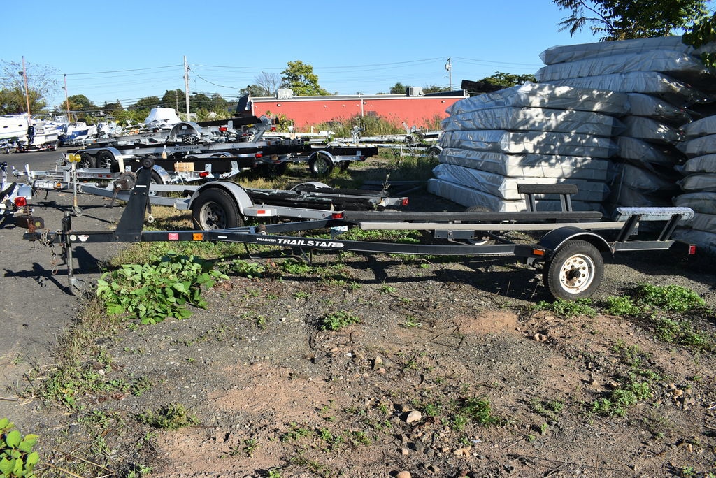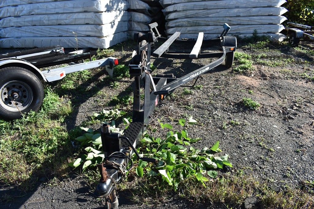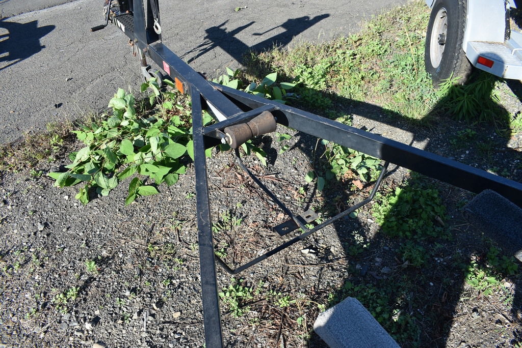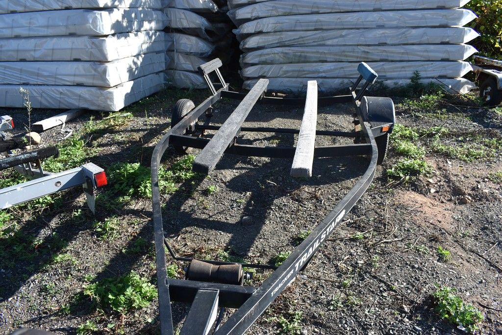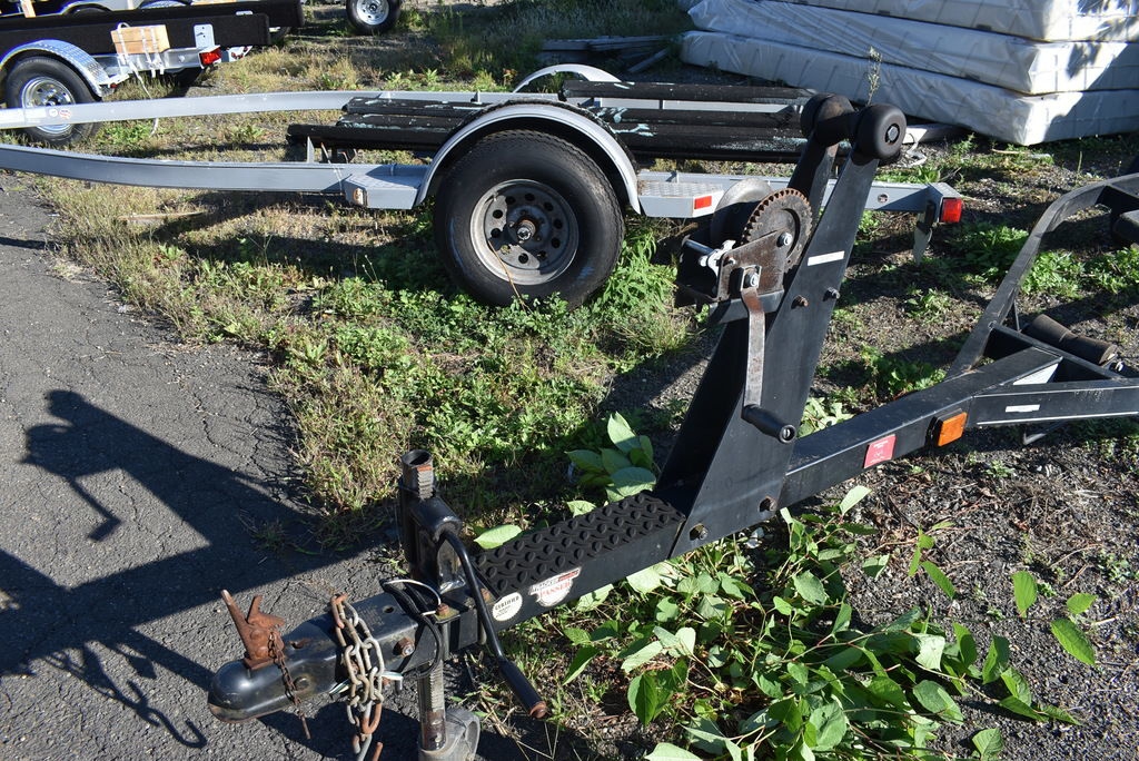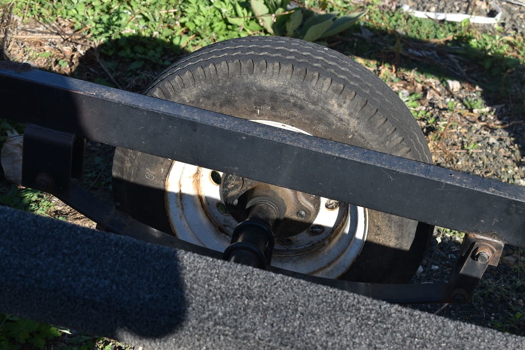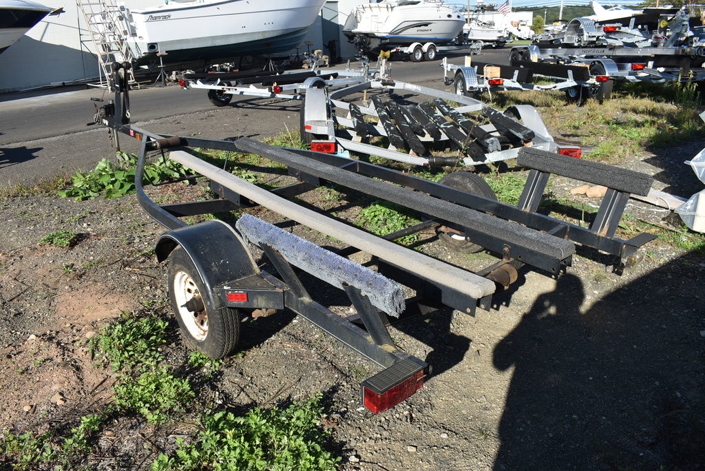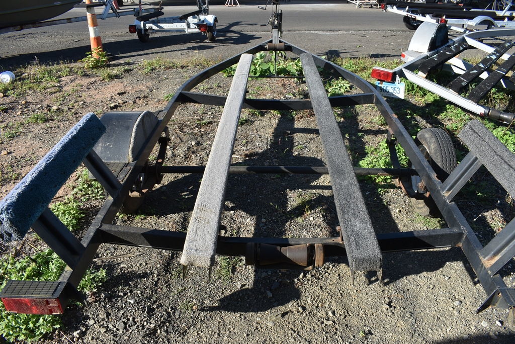 1997 Tennessee single axle black painted steel, no brakes, bunk style. One fender missing. Fits a 16ft boat and holds 1565lbs. Being sold "As IS", but bearings will be checked and taillights working.
