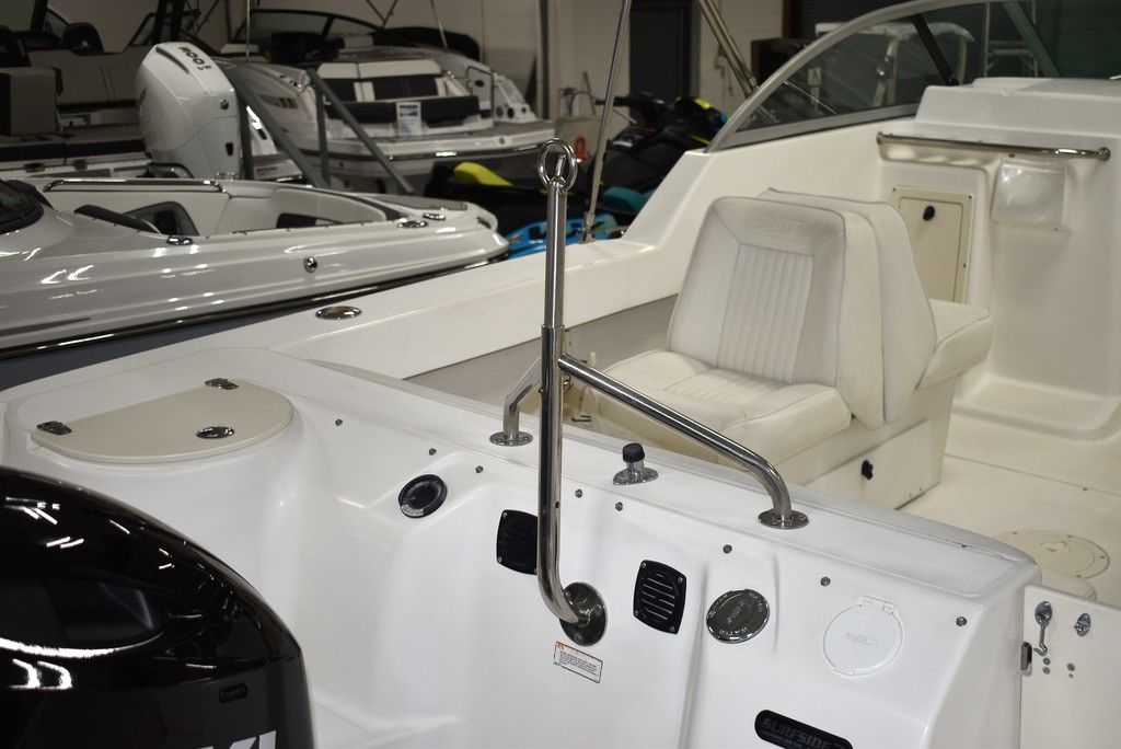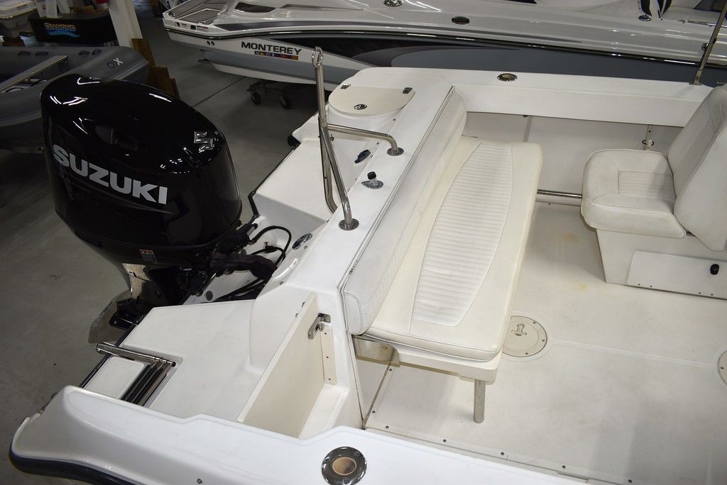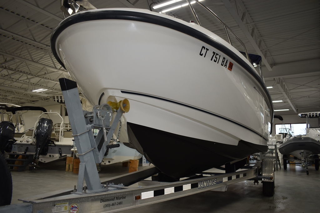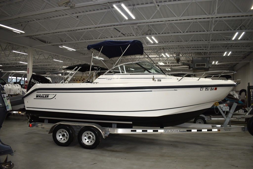 You are viewing a local trade in on a new boat. 2003 Boston Whaler 210 Ventura dual console in terrific condition. Repowered in 2025 with a new Suzuki 200hp outboard, stainless steel prop, only 9 hours of use and warranty good till 3/25/2032. Motor has the upgraded Suzuki Precision Control (SPC), is and advanced computer-based "Drive-by-Wire" throttle and shift system that replaces the mechanical cables with electronic wiring. It provides smoother, more precise, and instantaneous throttle response, particularly in low RPM ranges and when maneuvering in close quarters. Motor also comes with a "troll mode" feature for slow speed control. 2023 I-Beam aluminum trailer with spare tire included and also in great condition. Features include a Garmin 94sv GPS/Fishfinder, Garmin VHF, Bluetooth stereo with 4 speakers Bimini top w/ boot, Bow and cockpit cover, Stainless steel tow bar, Transom freshwater shower, Walk-thru transom, Transom boarding ladder, Raw water washdown, transom fold down bench seat, Back to back lounger seat portside w/ under storage, Under gunnel horizontal rodholders, Trasom livewell, Starboard side floor fishbox, Compass, Walk-thru windshield, Windshield wiper, Porta potti head, Dual battery w/ switch, Cushioned bow seating w/ under storage, High bow rail , anchor locker w/ anchor and line, self bailing cockpit, fresh coat of bottom paint and more. We are Diamond Marine of Connecticut, in business for over 40 years and run a full service shop along with new and pre-owned boat sales. We are also the largest Trailer dealer on the east coast. Contact us for all of your boating needs. Financing is available and local trades are welcome. This boat will not last, contact us today.