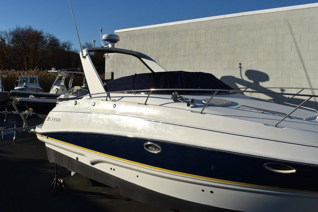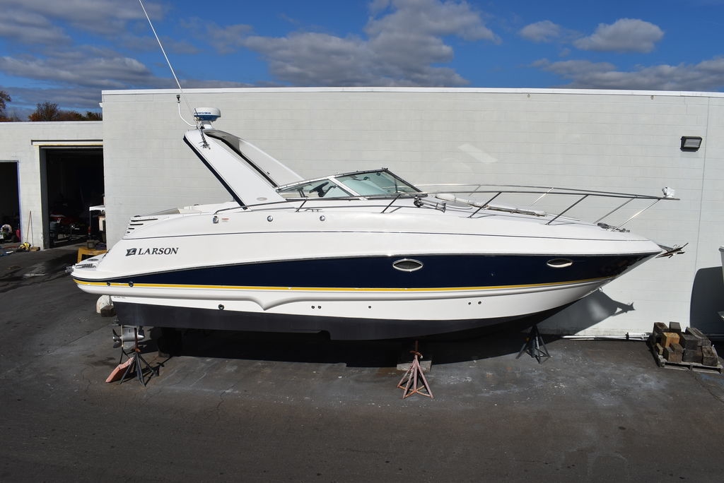 For sale by Diamond Marine of Connecticut, a 2005 Larson 310 Cabrio Mid Cabin Cruiser. We purchased this boat needing some re-conditioning but never found the time to do it, and now selling "As Is". I took many current pictures of the boat, so take a look. I would be happy to send a specific photo to you if needed. Cabin is in beautiful condition. Please call for more information at 203 466-5384 and ask for Mark or Karl. Thank You, Diamond Marine