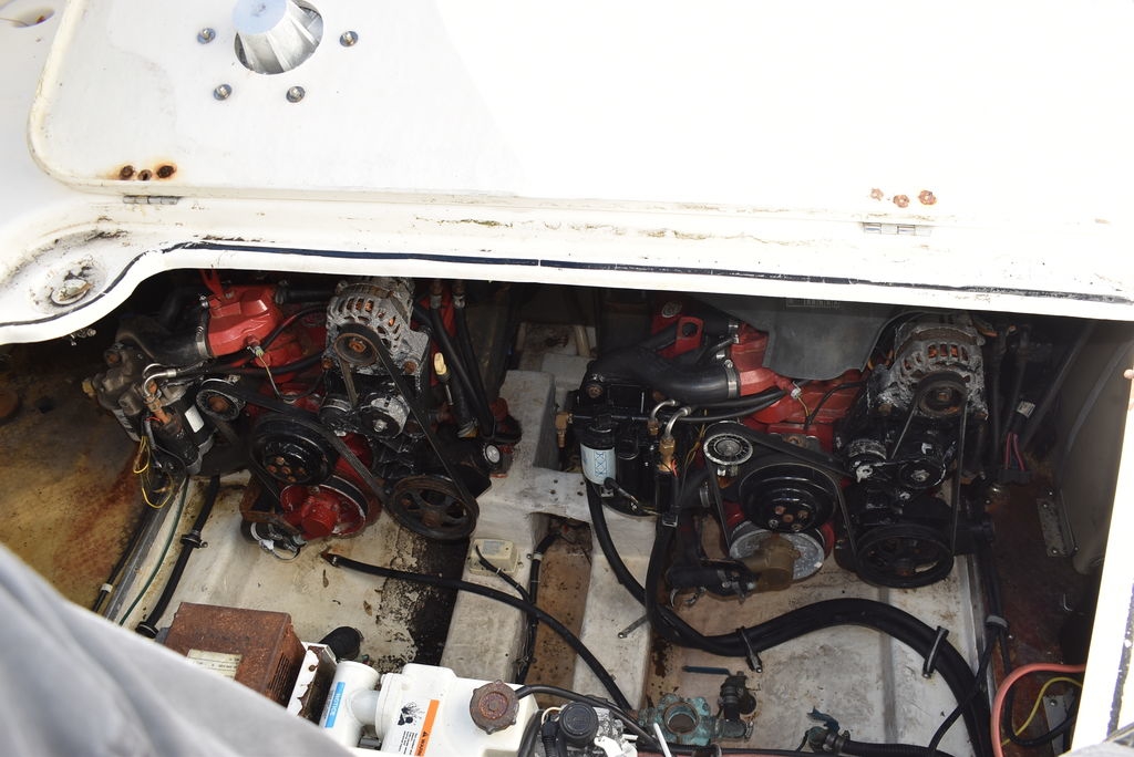 2005 Larson 310 Cabrio, twin Volvo Penta 5.7 Gi-E Fuel injected 270 hp I/O Motors. Motors have been run by us on a portable fuel tank and shift forward and reverse. We purchased this boat to re-condition it, but never found the time and now selling "As Is". We have not run the boat in the water, so never able to check systems. Boat does come with Air conditioning w/ heat, Hot water heater, Kohler 5kw Generator, Windlass anchor, Electric Marine toilet w/ overboard discharge in head compartment w/ shower and sink, Clarion stereo, CD Player, Sharp Aquos 15 inch liquid crystal TV, Battery Charger, Fireboy Automatic Fire Extinguishing system, Spotlight, Galley w/ microwave, fridge, stovetop, coffermaker, Full cockpit cover, Furuno radar, Topside bow cushion for sunning, Cockpit icemaker, cockpit removable table, cockpit sink, cockpit portable grill, GPS/Sounder, In dash depthfinder, Cushioned V-Berth with sleeper filler cushion/privacy curtains/ removable table, Mid cabin recreation seating/Removable table/ sleeper filler cushion/ privacy curtain, Love seat w/ removable table and all of the original manuals that came with the boat new. This is a great boat for someone that has the time to go through it. We unfortunately do not and have to sell as is. We are capable of loading boat on trailer to take it away. Please contact us by email or phone at 203 466-5384 with any questions or concerns and ask for Mark or Karl. Thank You, Diamond Marine