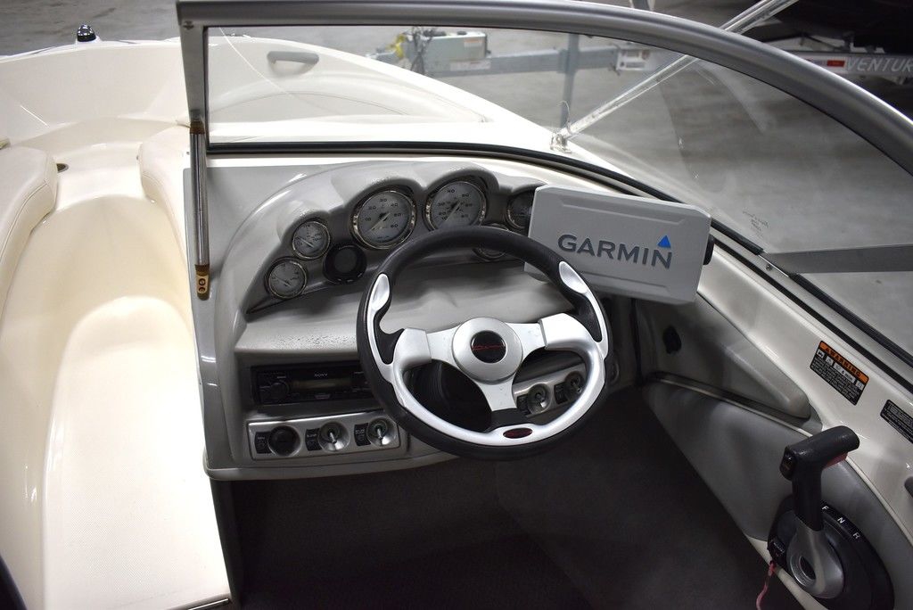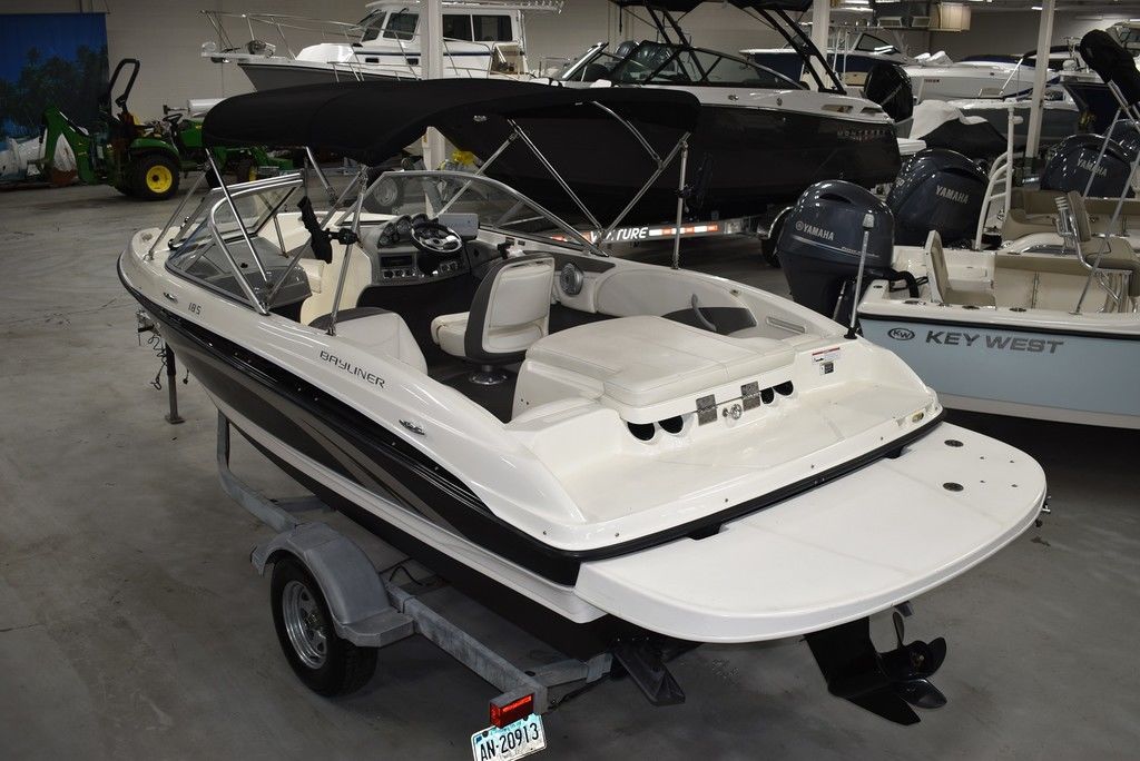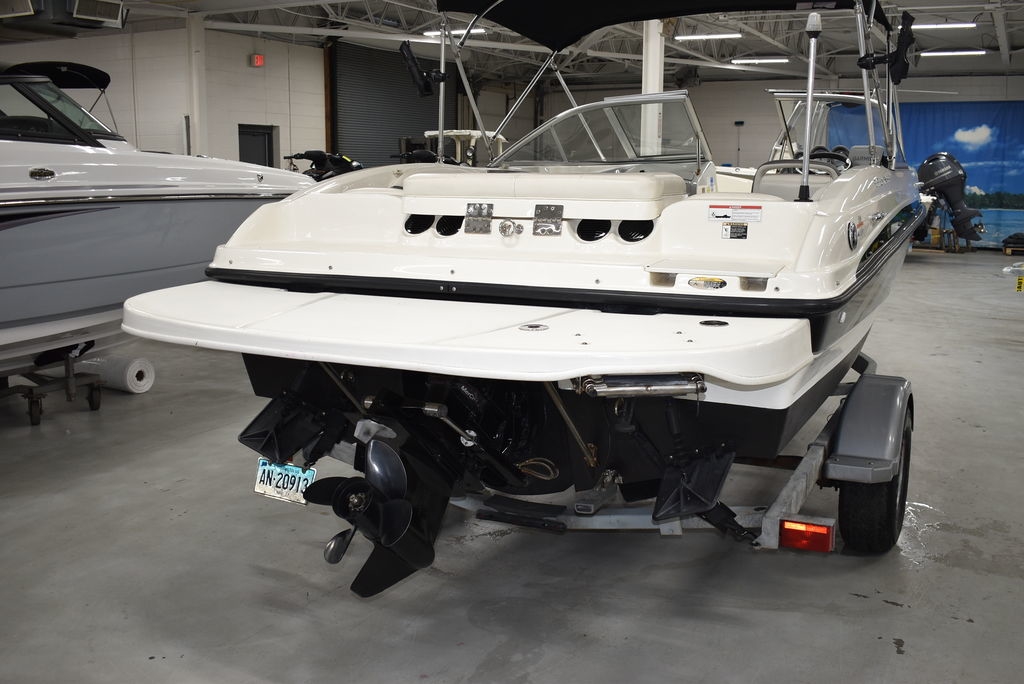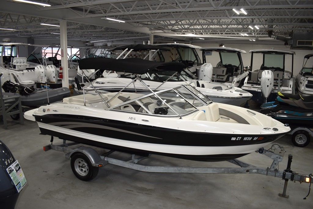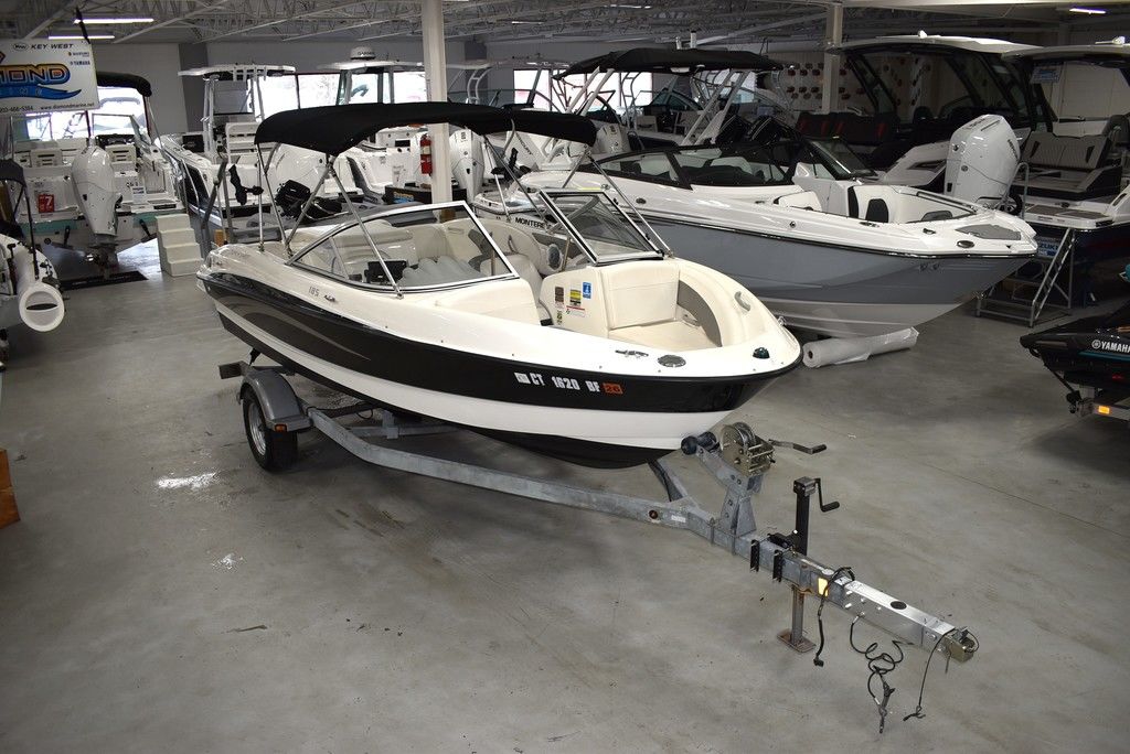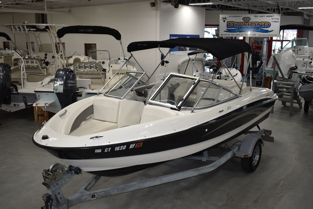 The 185 knows the way to fun and sun. It gets you there with astounding spaciousness, a sleek, no-glare dash and a host of options like a Black hull with sporty graphics, Garmin 64sv GPS/ depthfinder, Stereo w/ speakers, Bimini top w/ boot, Bow and cockpit cover, Ski tow eye, Carpets for comfort, Port side back to back seating, extended swim platform with drop down ladder and removable hand rails. Stow everything from life jackets to ski gear to water toys in the cockpit's deep in-deck storage locker. 8 passenger capacity and easy to tow and suited for both beginners and experienced boaters alike. Boat was just traded in on the purchase of a new boat, we thoroughly inspected the boat before taking in on trade, checking all systems. Boat is ready to go at the right price. Boats in this price range, in this condition do not last long. Call today and come see it at Diamond Marine of East Haven, Connecticut, in business for over 40 years. 203 466-5384