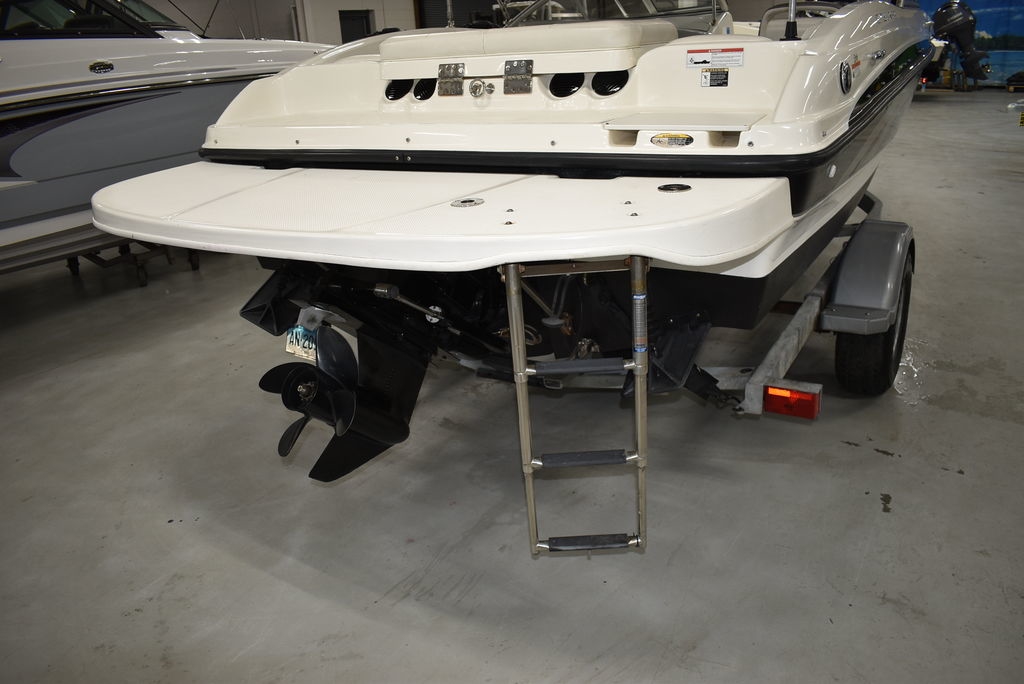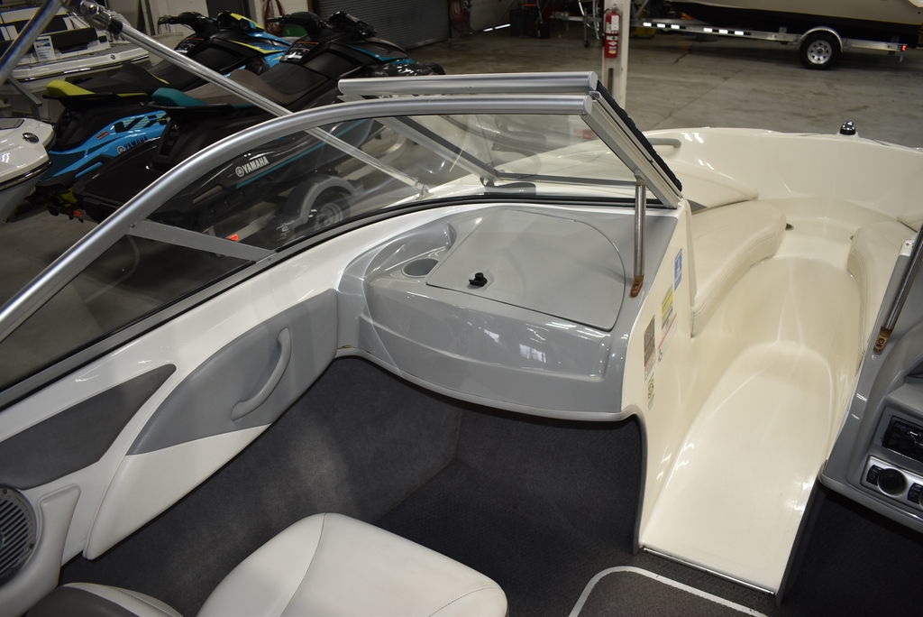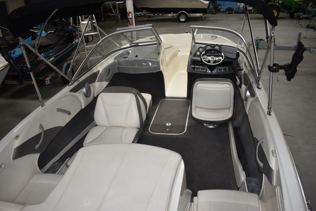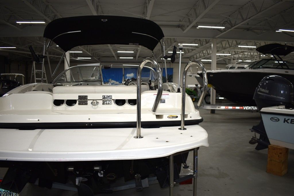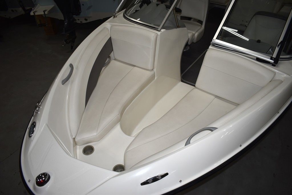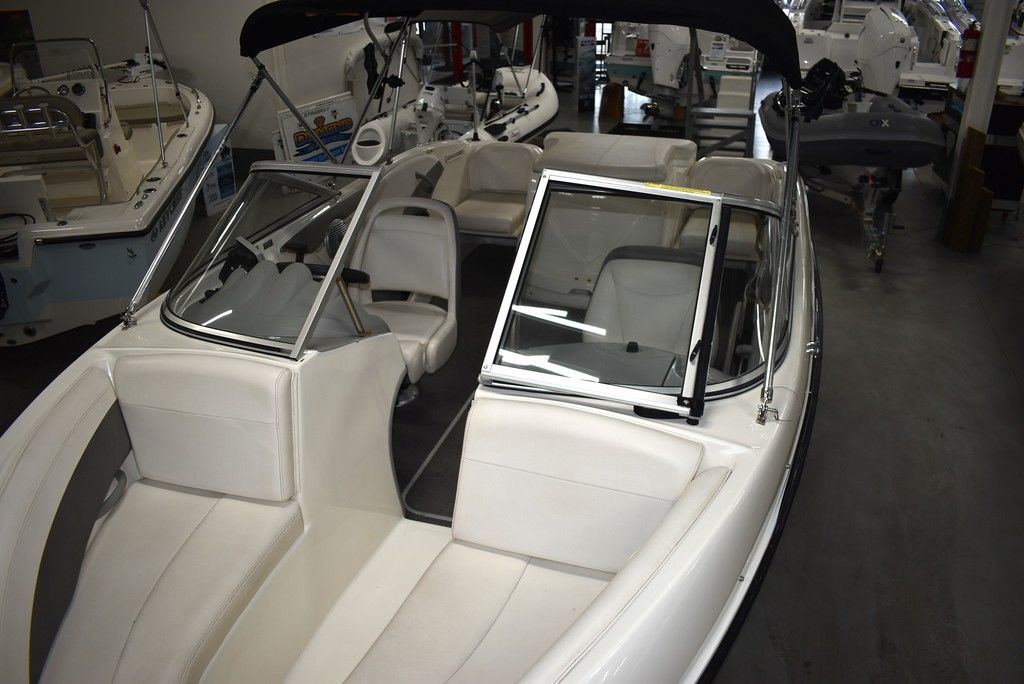 The 185 knows the way to fun and sun. It gets you there with astounding spaciousness, a sleek, no-glare dash and a host of options like a Black hull with sporty graphics, Garmin 64sv GPS/ depthfinder, Stereo w/ speakers, Bimini top w/ boot, Bow and cockpit cover, Ski tow eye, Carpets for comfort, Port side back to back seating, extended swim platform with drop down ladder and removable hand rails. Stow everything from life jackets to ski gear to water toys in the cockpit's deep in-deck storage locker. 8 passenger capacity and easy to tow and suited for both beginners and experienced boaters alike. Boat was just traded in on the purchase of a new boat, we thoroughly inspected the boat before taking in on trade, checking all systems. Boat is ready to go at the right price. Boats in this price range, in this condition do not last long. Call today and come see it at Diamond Marine of East Haven, Connecticut, in business for over 40 years. 203 466-5384