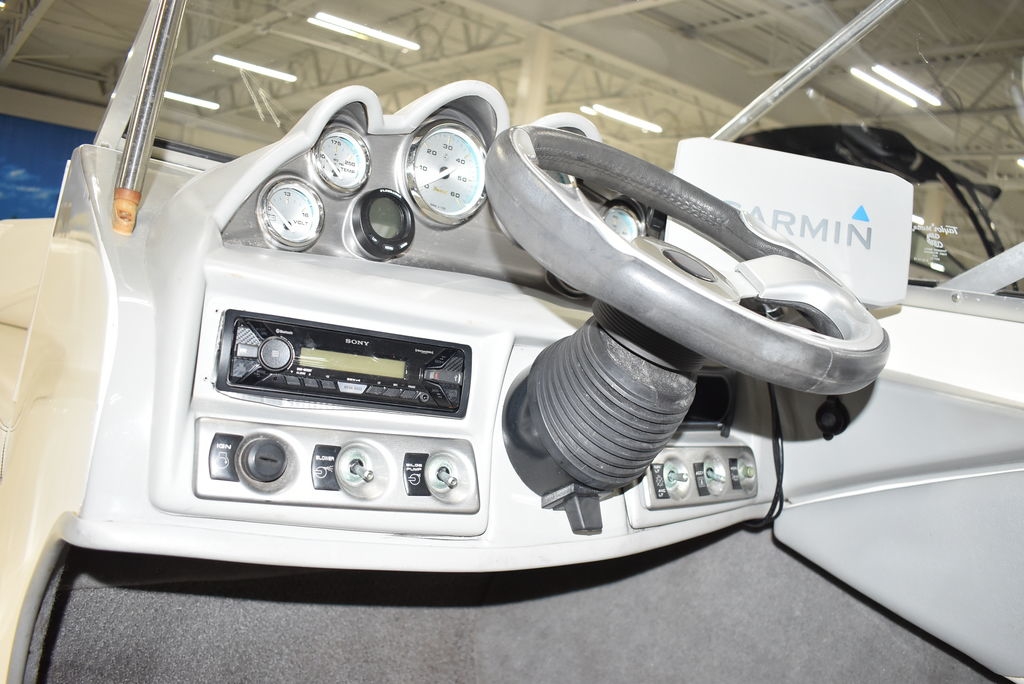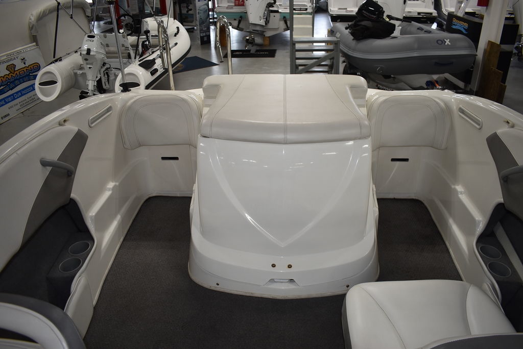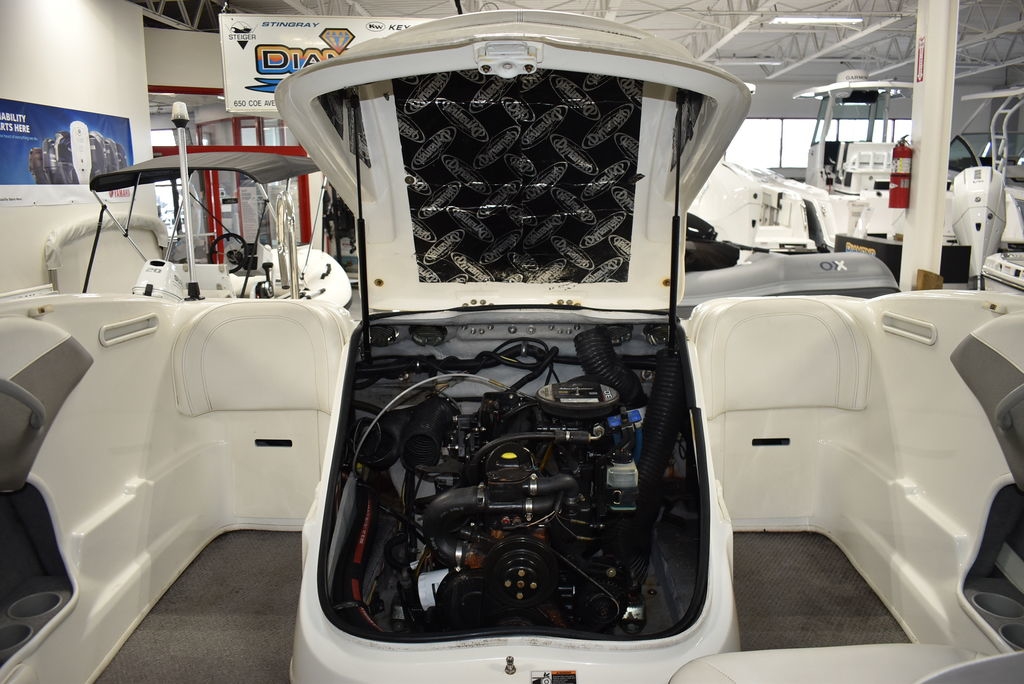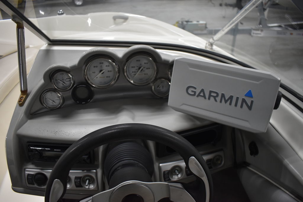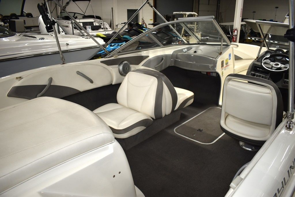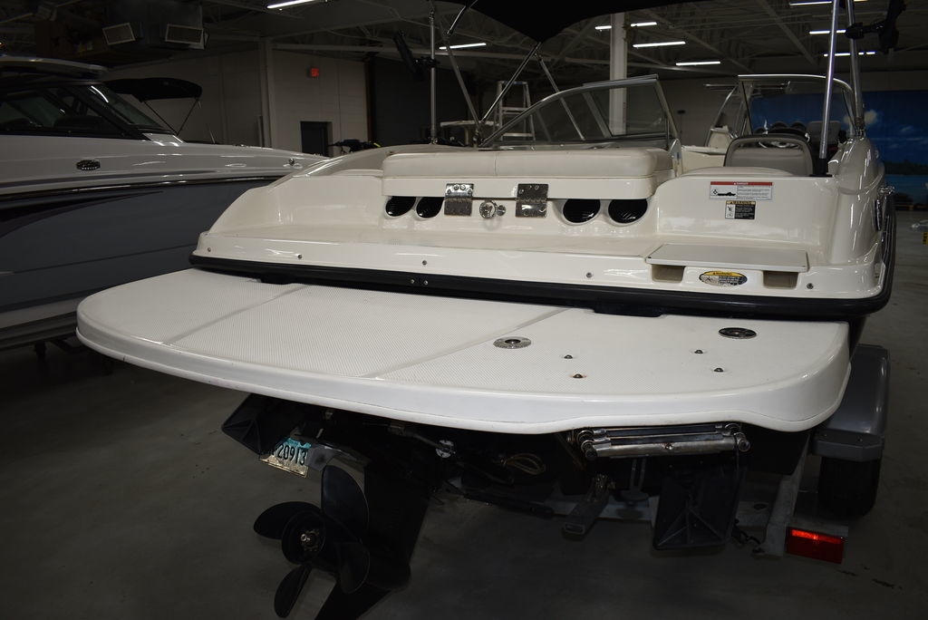 The 185 knows the way to fun and sun. It gets you there with astounding spaciousness, a sleek, no-glare dash and a host of options like a Black hull with sporty graphics, Garmin 64sv GPS/ depthfinder, Stereo w/ speakers, Bimini top w/ boot, Bow and cockpit cover, Ski tow eye, Carpets for comfort, Port side back to back seating, extended swim platform with drop down ladder and removable hand rails. Stow everything from life jackets to ski gear to water toys in the cockpit's deep in-deck storage locker. 8 passenger capacity and easy to tow and suited for both beginners and experienced boaters alike. Boat was just traded in on the purchase of a new boat, we thoroughly inspected the boat before taking in on trade, checking all systems. Boat is ready to go at the right price. Boats in this price range, in this condition do not last long. Call today and come see it at Diamond Marine of East Haven, Connecticut, in business for over 40 years. 203 466-5384