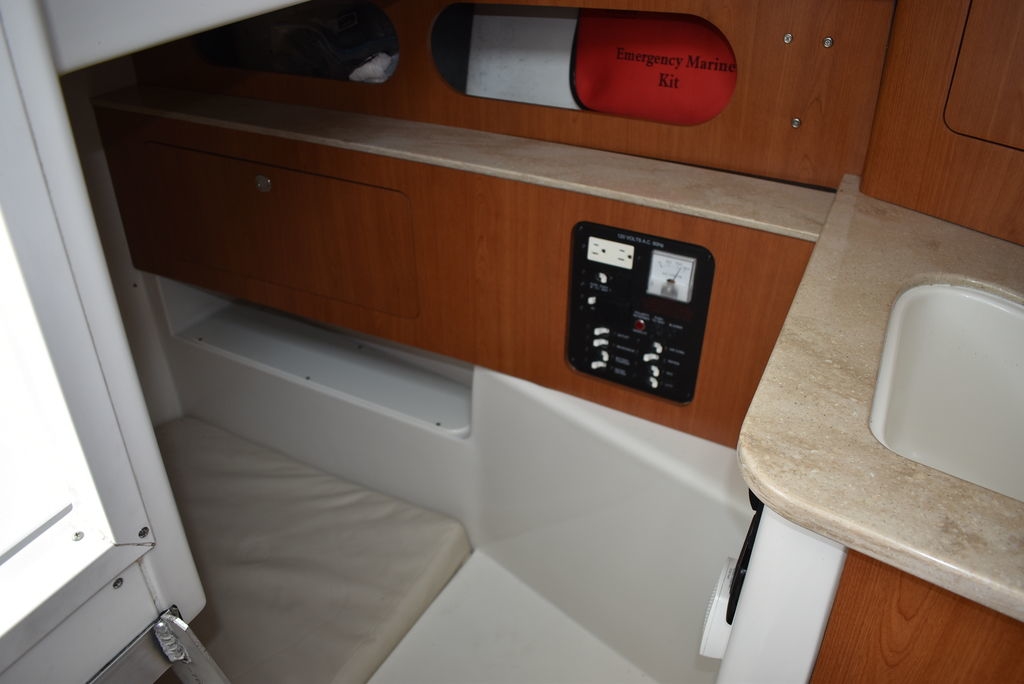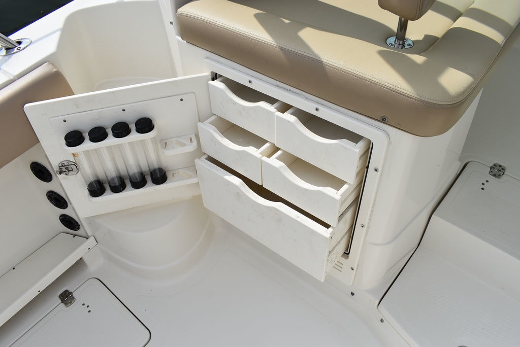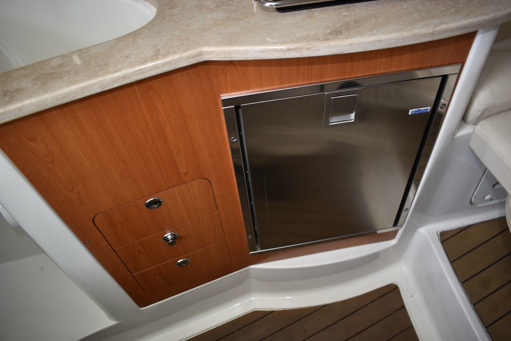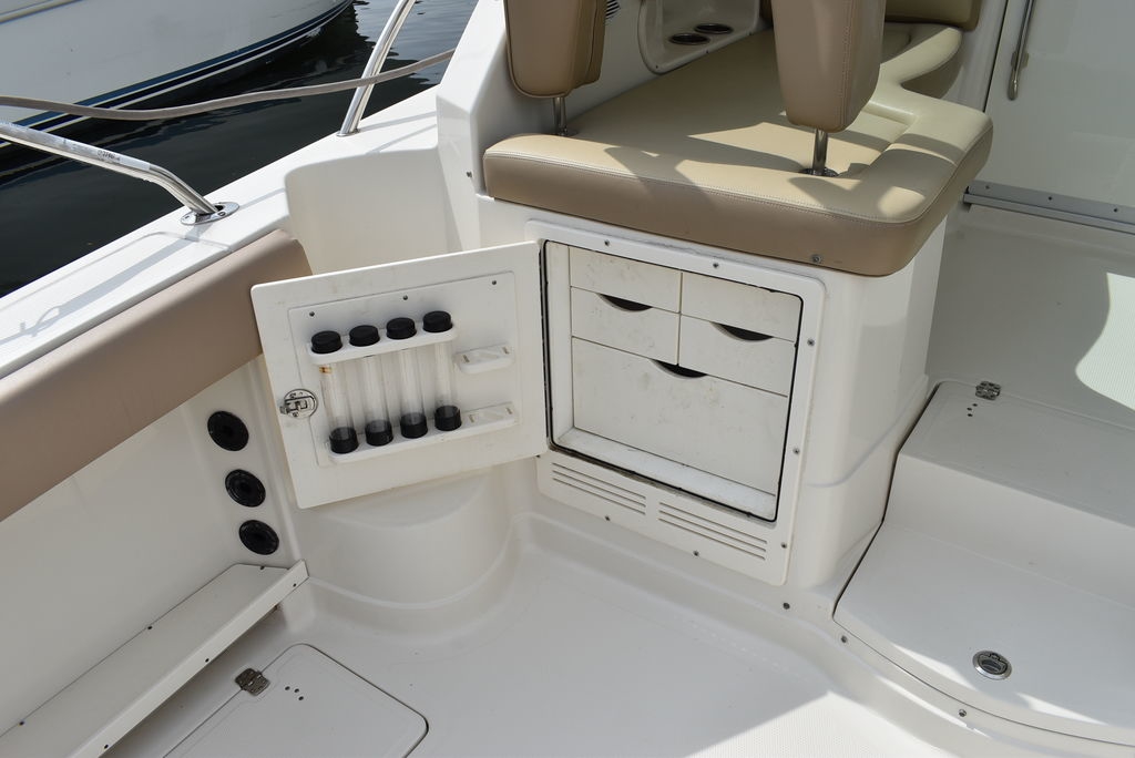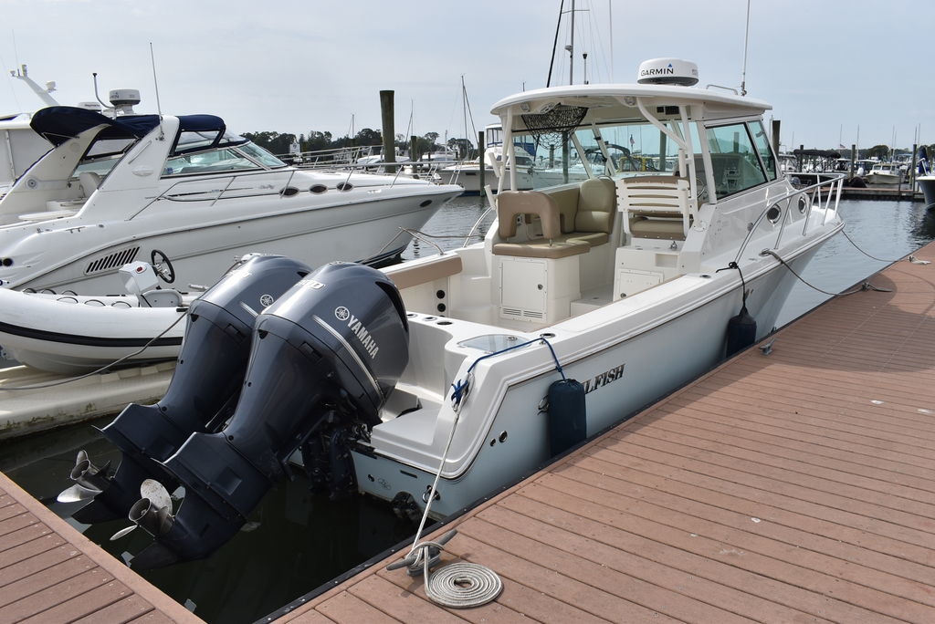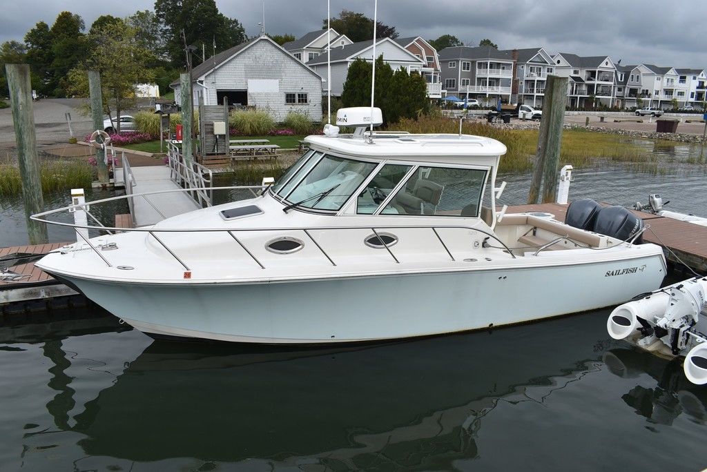 YOUR DAY ON THE WATER JUST GOT BETTER.Serious offshore capability, a fully appointed cabin with berths for 6 or more, and dazzling style, combine to make the Sailfish 320 Express the sport utility of the sea. Whether cruising to dinner, or fishing the gulf stream, this boat provides the lifestyle you’ve always dreamed about. Standard fishing amenities include 14 upright rod holders, 30 gallon live well with high speed pickup, 2 deluxe tackle stations, and much more. Cruising features include enclosed shower/ head, fold down bunks, aft berth, refrigerator, stove, microwave, shore power and hot water heater. Riding on the best performing hull design in the industry, the world is at your beck and call with the Sailfish 320 Express.