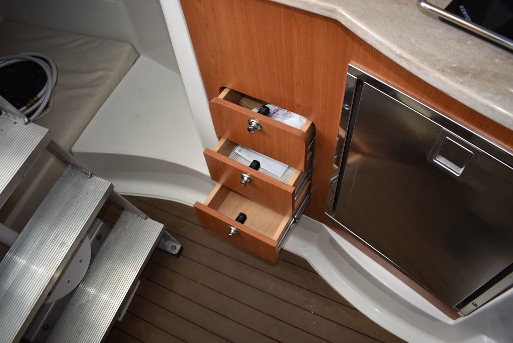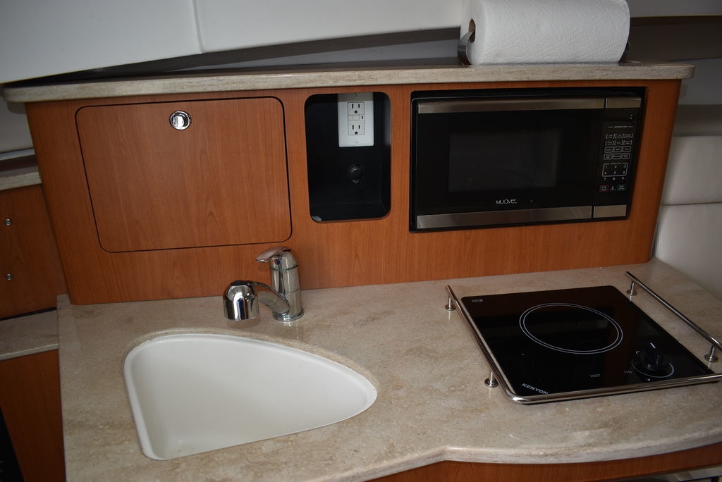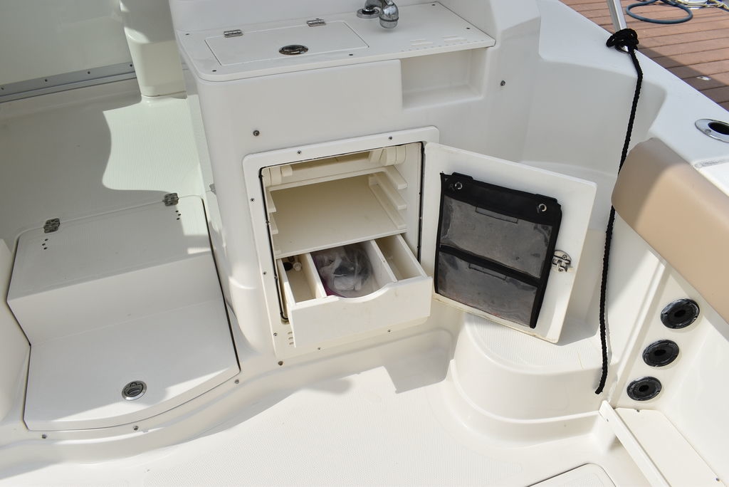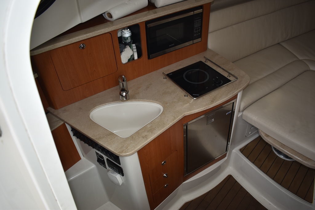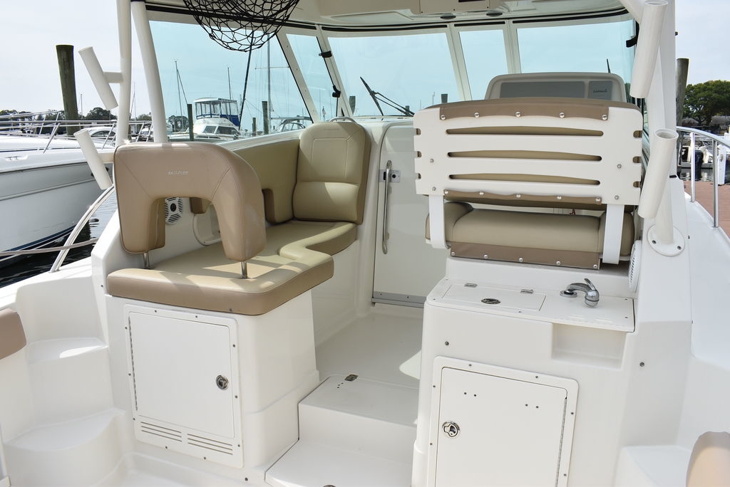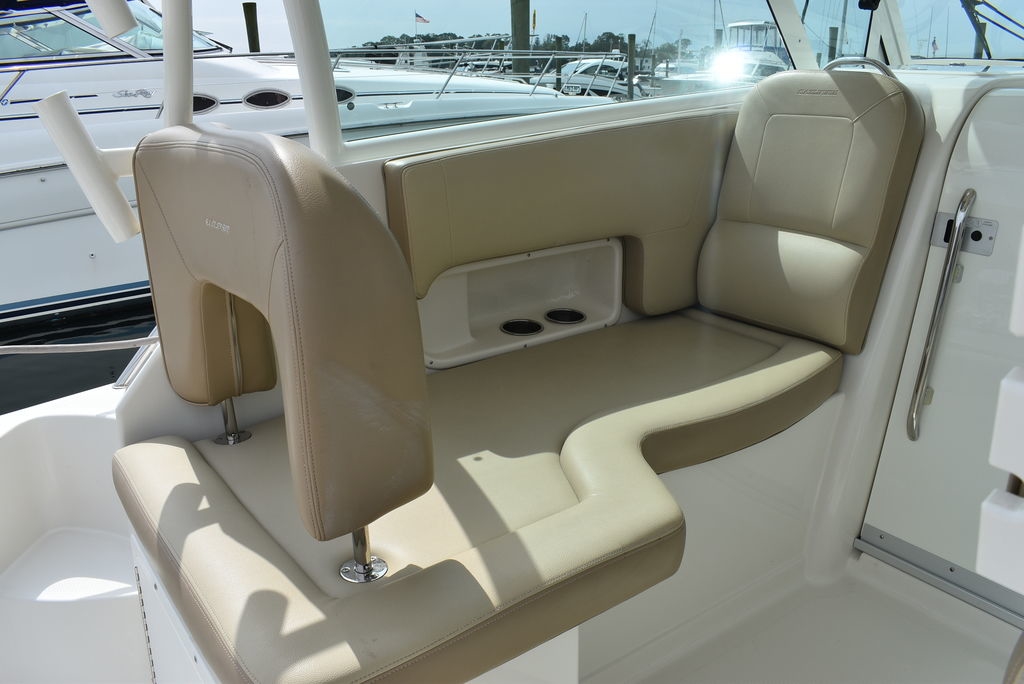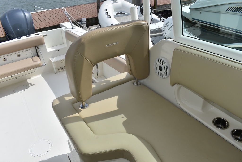 YOUR DAY ON THE WATER JUST GOT BETTER.Serious offshore capability, a fully appointed cabin with berths for 6 or more, and dazzling style, combine to make the Sailfish 320 Express the sport utility of the sea. Whether cruising to dinner, or fishing the gulf stream, this boat provides the lifestyle you’ve always dreamed about. Standard fishing amenities include 14 upright rod holders, 30 gallon live well with high speed pickup, 2 deluxe tackle stations, and much more. Cruising features include enclosed shower/ head, fold down bunks, aft berth, refrigerator, stove, microwave, shore power and hot water heater. Riding on the best performing hull design in the industry, the world is at your beck and call with the Sailfish 320 Express.