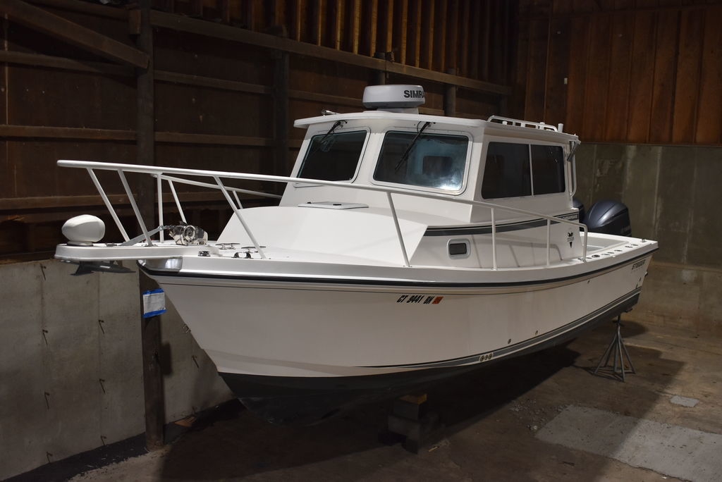 Just arrived for winter storage and being sold on consignment by Diamond Marine of Connecticut, a Steiger Craft Dealer. 2020 Steiger Craft 28 Chesapeake pilothouse boat.
