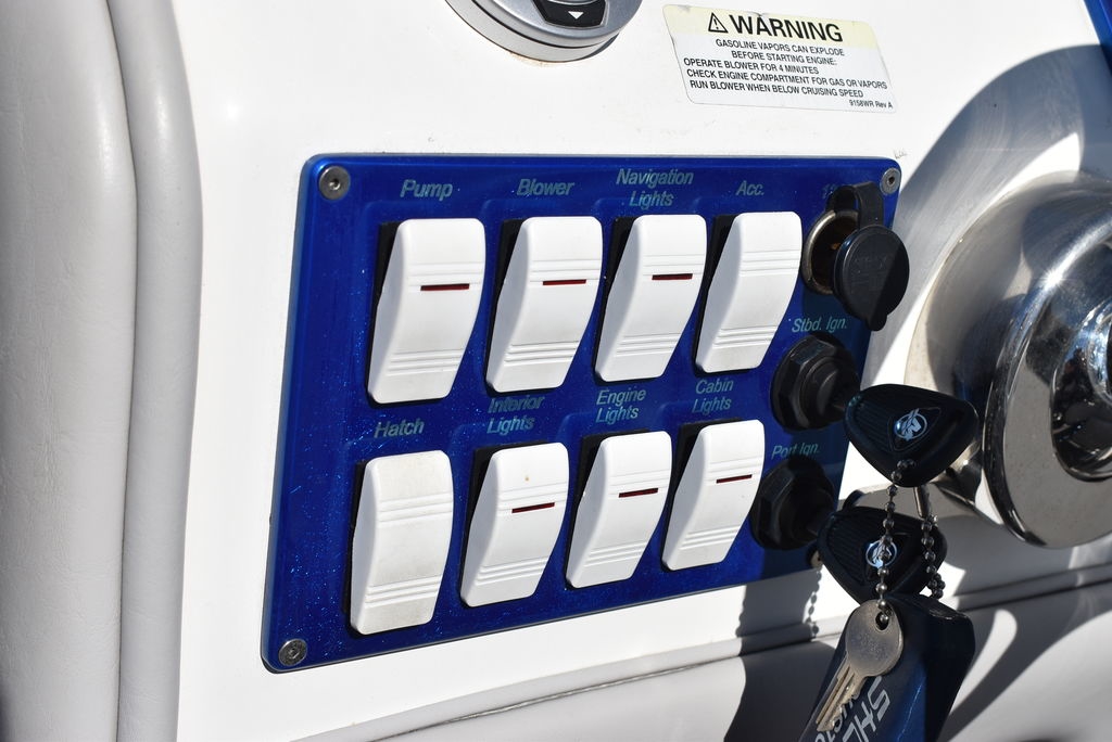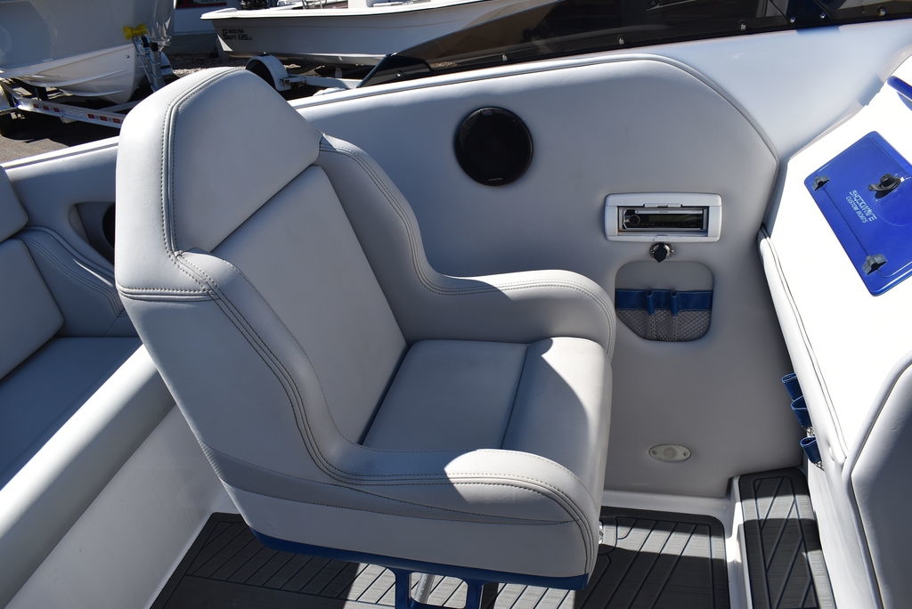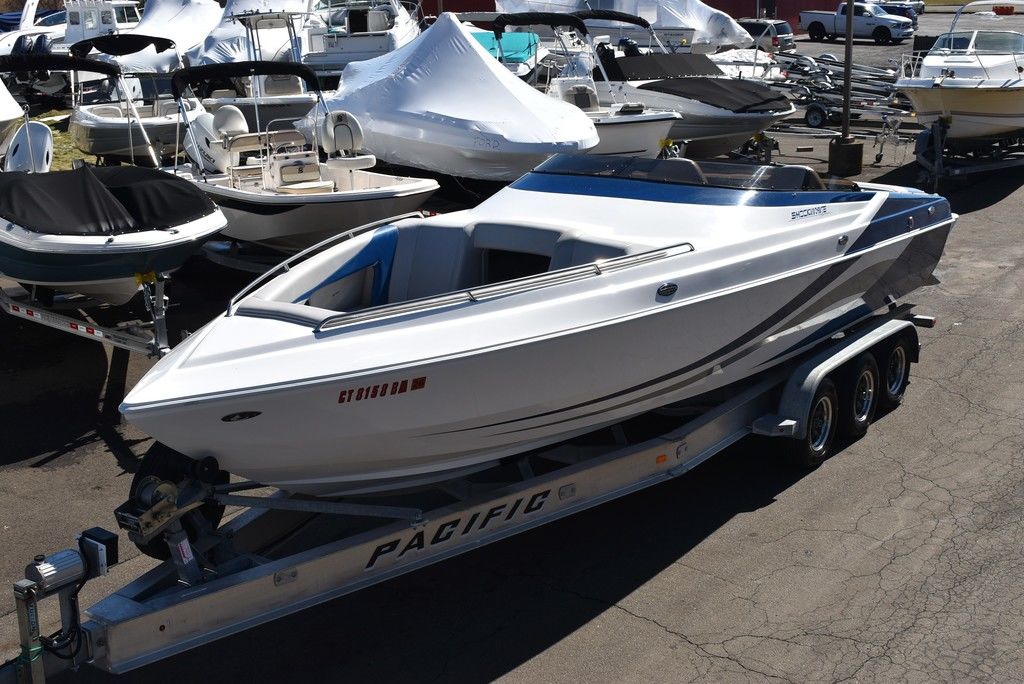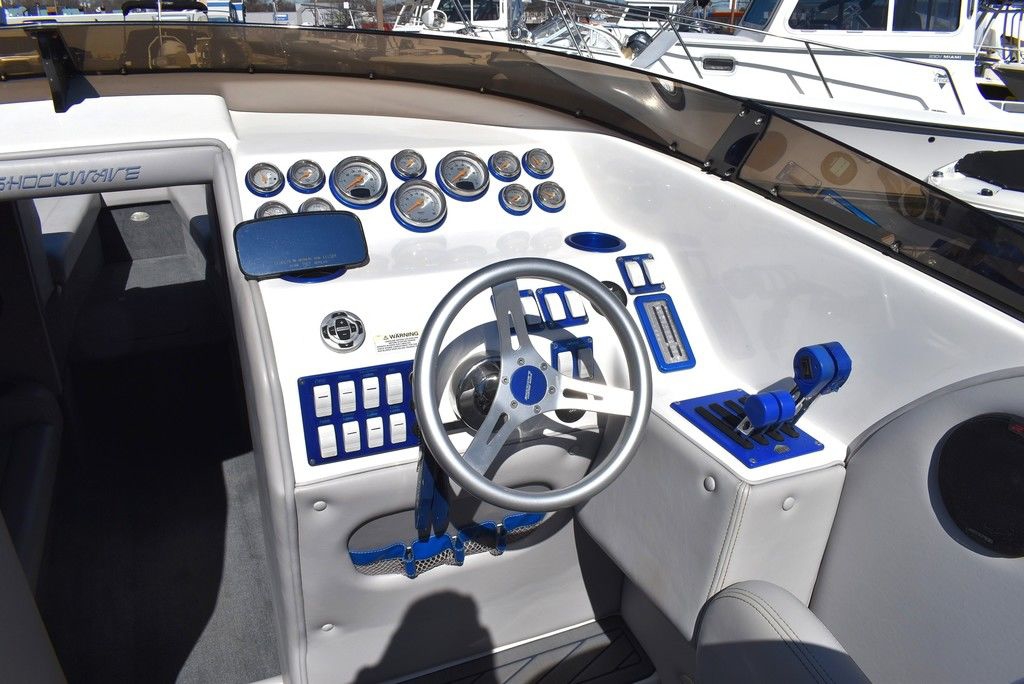 You are viewing for sale by Diamond Marine of Connecticut a one owner, high performance sport boat built by Shockwave Custom Boats in California, this 2020 Shockwave 29 Magnatude is 29ft long with an 8ft 6-inch beam. Has no bottom paint and always trailered and is in excellent condition. Bowrider with midship walk-thru open cabin seating area. It is powered by Twin Mercruiser 6.2L MPI 350HP DTS (Digital Throttle and Shift) Seacore I/O's with 348 hours. Seacore systems provide advanced saltwater corrosion protection through hardcoat anodizing, stainless steel components and a closed cooling system. Stainless steel 24 pitch 4 blade props, IMCO High performance heavy duty hydraulic steering system with tie bar, designed to eliminate "play" in drive unit, providing precise, stable control at high speeds and reducing high speed chine walk. Dana marine billet High performance aluminum trim tabs designed for speed boats. Other features include Captains choice thru hull exhaust, twin step hull, Electric power hatch, Livorsi gauges, Premium upholstery, White coated aluminum swim platform w/ ladder, Cockpit seadek floor covering inlay, Depthfinder w/thru hull transducer, Kenwood premium stereo w/ 3 remotes, Twin helm seats w/ drop down seat cushion for standing, Transom sunpad over hatch, rear bench seat w/ under storage and more. This boat is truly for the Sport boat enthusiast that wants something unique. This is the total package. We are Diamond Marine of Connecticut, in business for over 40 years and have done a thorough inspection of this boat mechanically, it is ready for its next owner. Financing available, local trades welcome, contact us today by email or phone at 203 466-5364