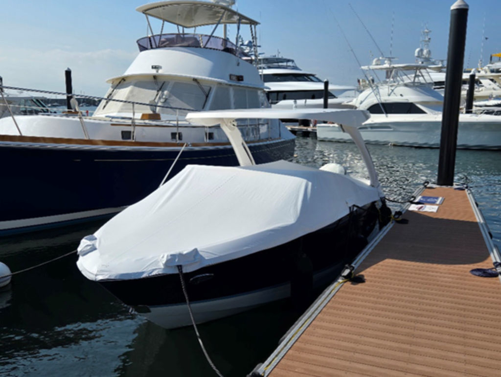 Custom full mooring cover, in Color: White, white high-end Stamoid canvas & stitching