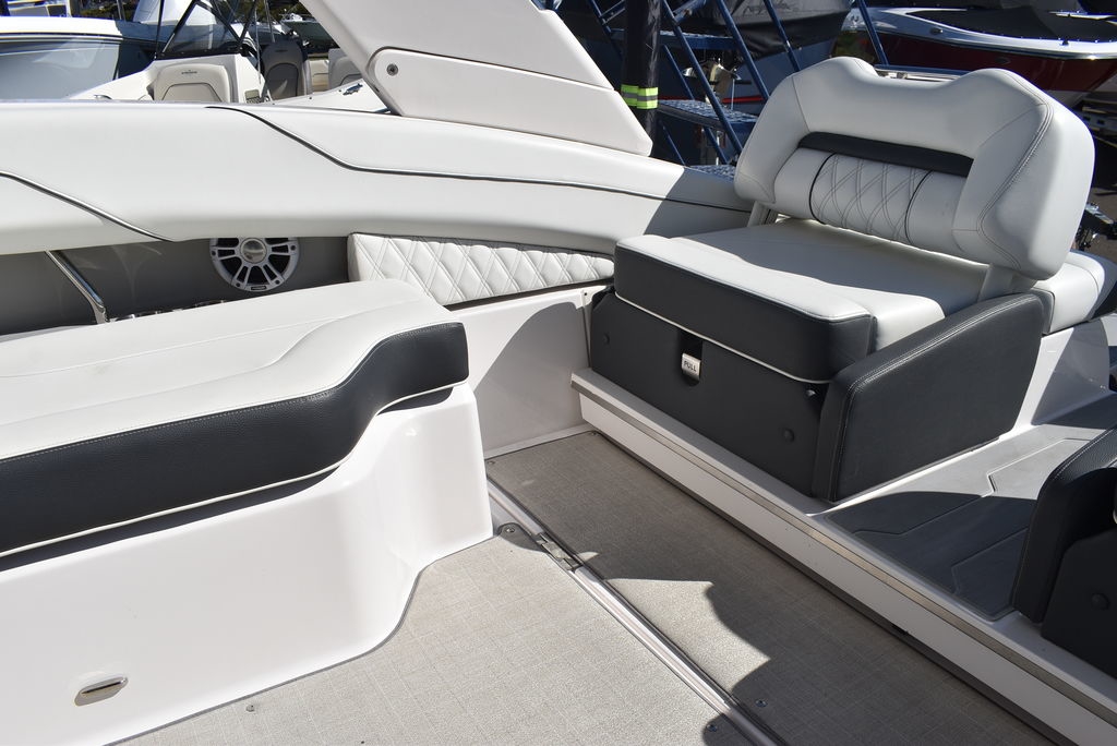 Optimized for incredible performance, functionality, and luxury, the LX4 doesn’t compromise. Brilliantly designed, this 24-foot outboard-powered bowrider uses every available inch to increase seating and storage space. Diamond Marine is selling on consignment this meticulously cared for Regal bowrider. You will not find a nicer one on the market, and certainly not with a fold down hardtop, power slide out transom seating for more cockpit room, power sliding helm seat, custom covers, cooler and head with a black hull that shines like the day it was new. The boat is onsite here at Diamond Marine, local trades are welcome, financing available, and seatrial done once boat is on contract, but before payment in full. All legitimate offers will be presented to owner. Please contact Diamond Marine with any questions or concerns by email or phone at 203 466-5384 and ask for Mark. The following is a complete description of the boat.