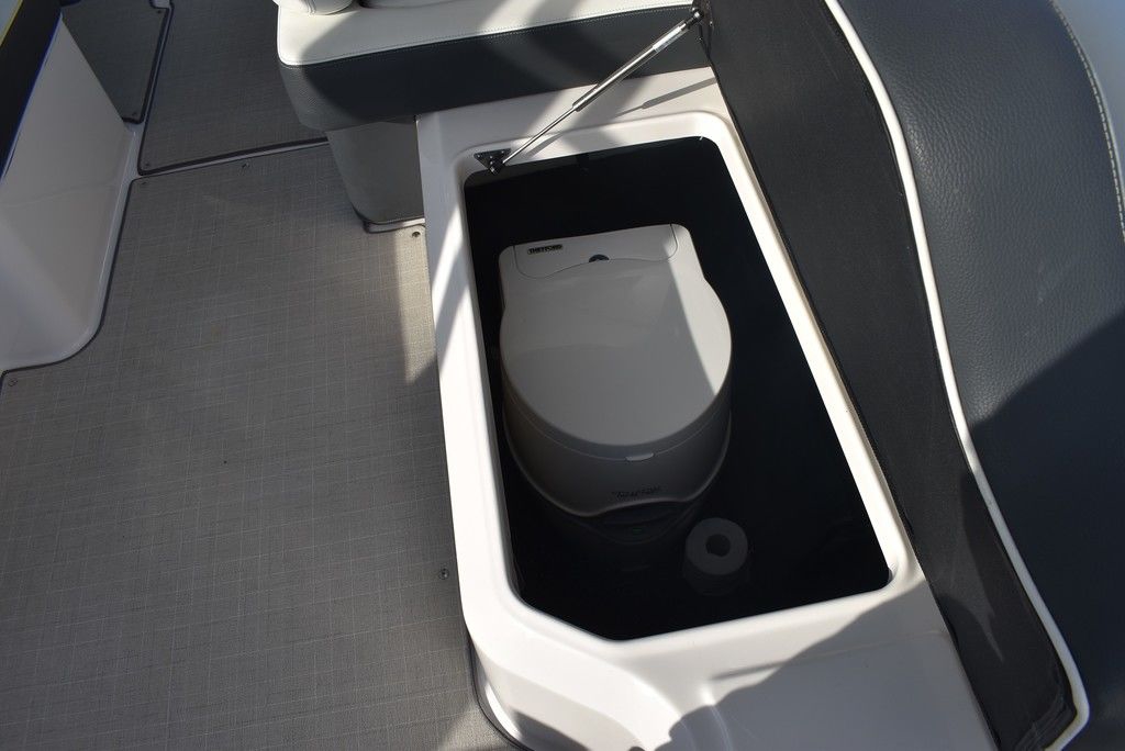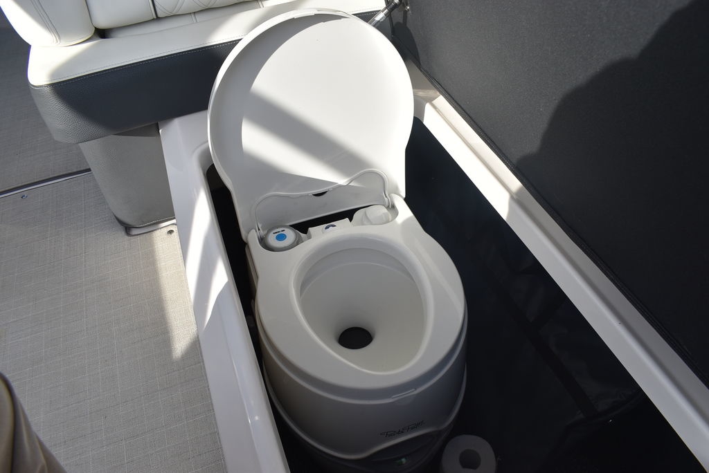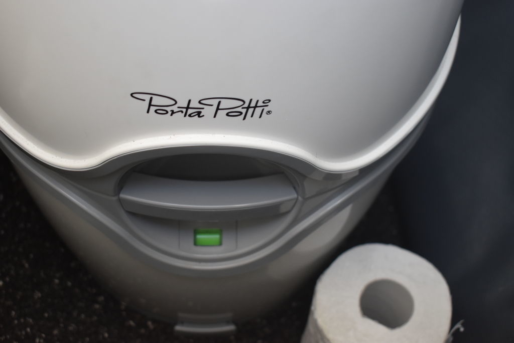 Thetford Curve 565e portable toilet unit; fix mounted with factory kit under starboard main lounger