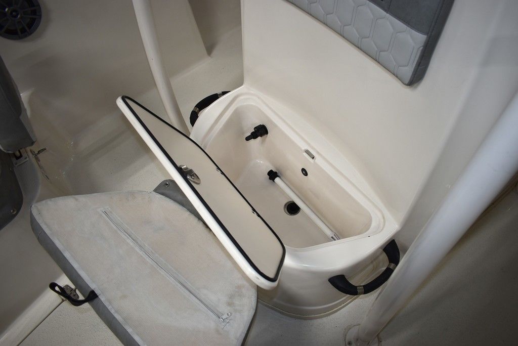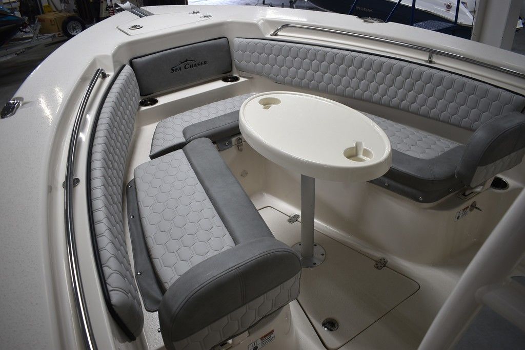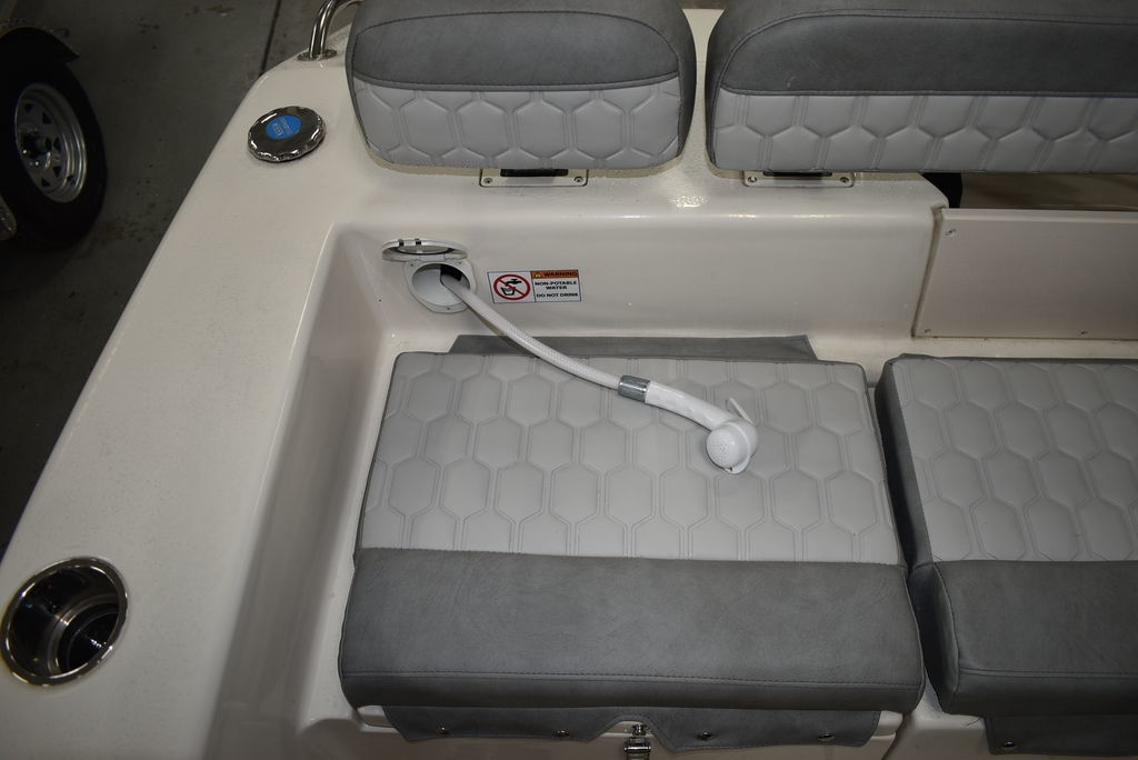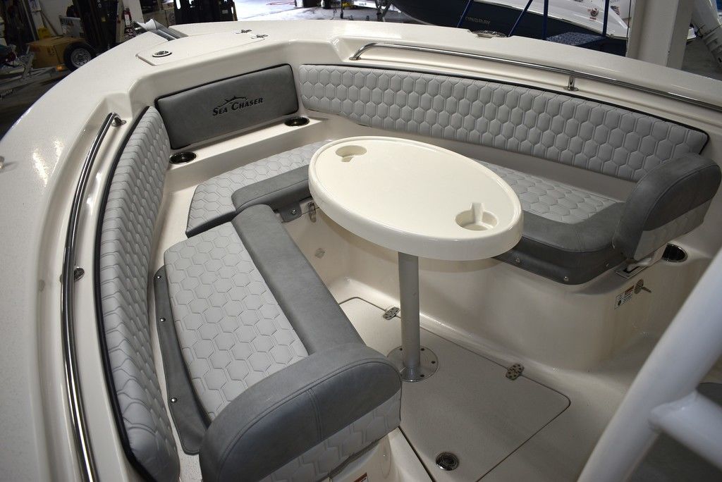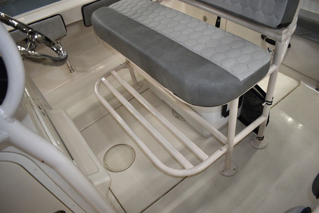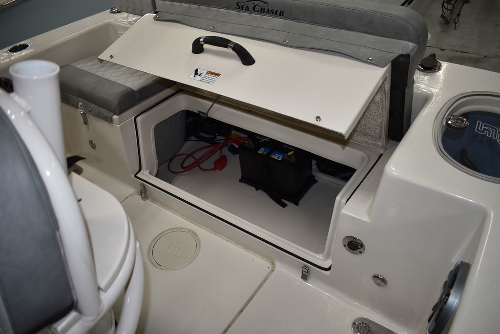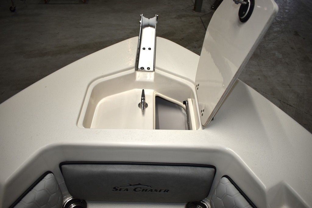 Explore the new 2022 model year 22 HFC – an affordable, versatile and durable center console designed for family, fishing and fun! The innovative 22 HFC comes standard with angler-friendly features, like stainless steel fold-down cleats and flush-mounted rod holders, under-gunnel rod storage with LED lighting, and a 25-gallon stern baitwell. For families who need plenty of space for adventure, the 22 HFC features a roomy, comfortable bow seating area, a console front passenger seat and a stern bench seat. A popular upgrade option for the 22 HFC is the unique flip-up console with a step-down changing station. Contact your nearest Sea Chaser dealer today to see the 2023 model year 22 HFC.