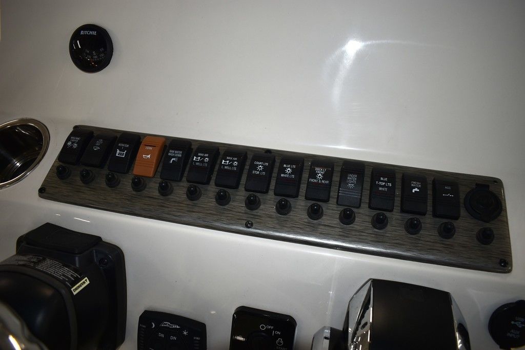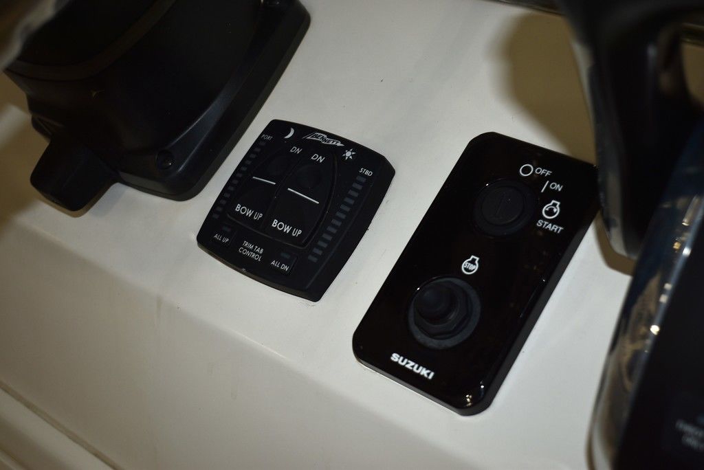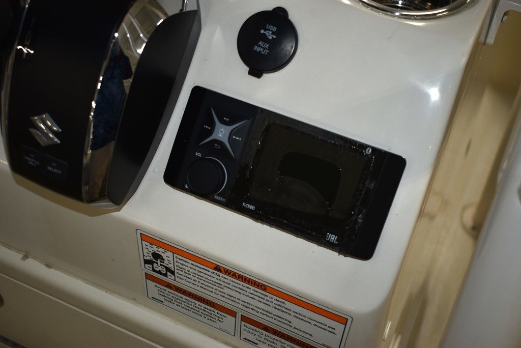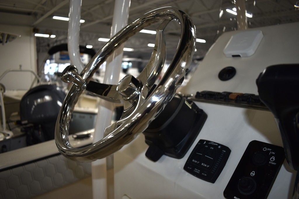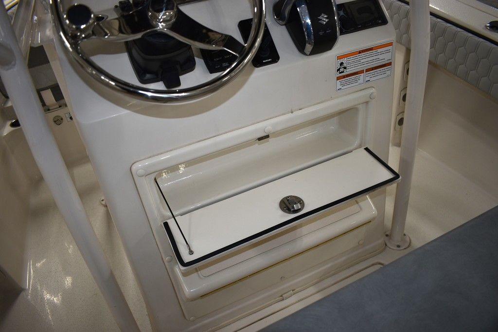 2023 Sea Chaser 22HFC Center Console, Suzuki DF200hp White four stroke outboard w/ stainless steel prop. Boat was ordered with a Black hull stripe, Hardtop w/ XLarge/Flipup Console and black on underside of top, 9 Gallon freshwater tank w/shower nozzle, Polished electric trim tabs w/ indicator panel, Bow table, 4 Stainless gunnel mounted rodholders.