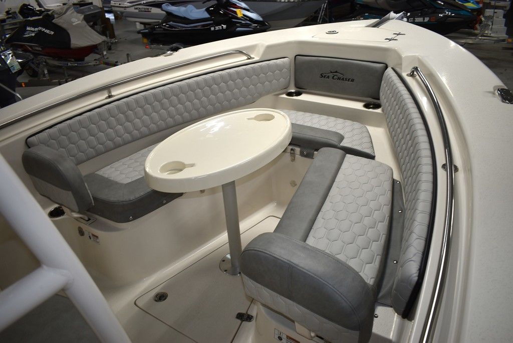 For Sale by Diamond Marine of CT, 2023 Sea Chaser 22HFC Center Console, Black hull stripe, Suzuki DF200hp White four stroke outboard. $69,995 includes factory freight, dealer prep and a U.S. Coast Guard pkg. Diamond Marine, a Sea Chaser Dealer. 203 466-5384