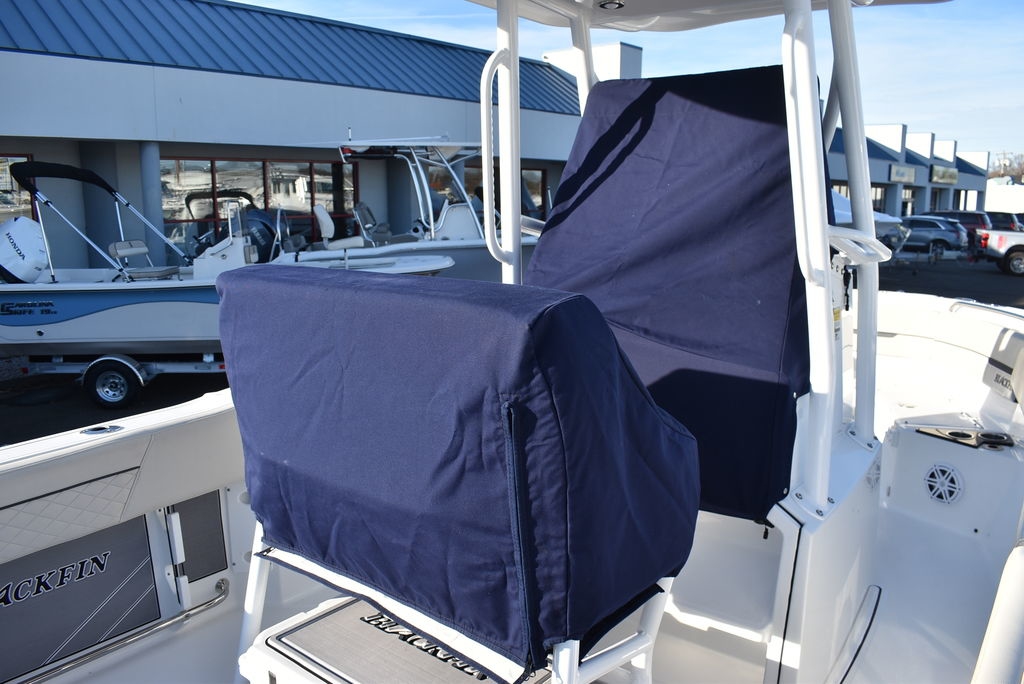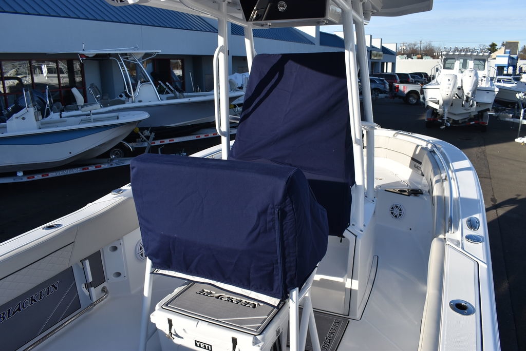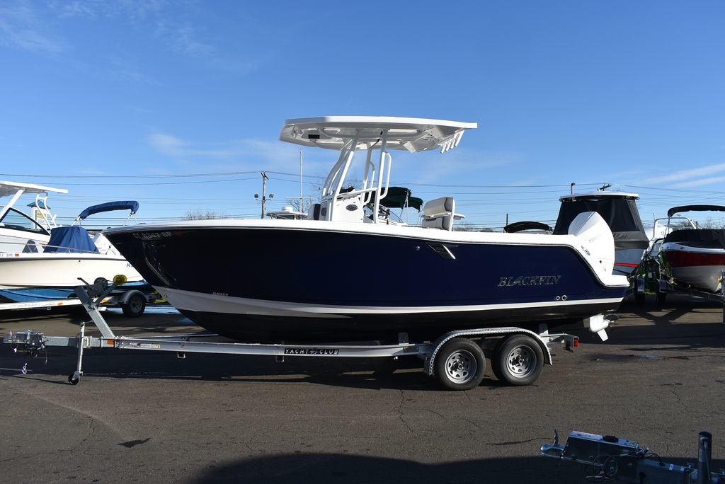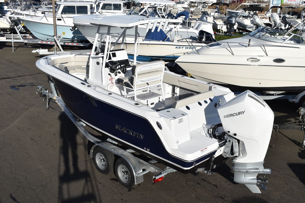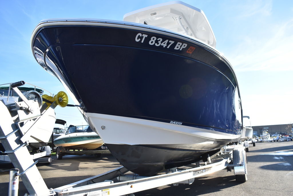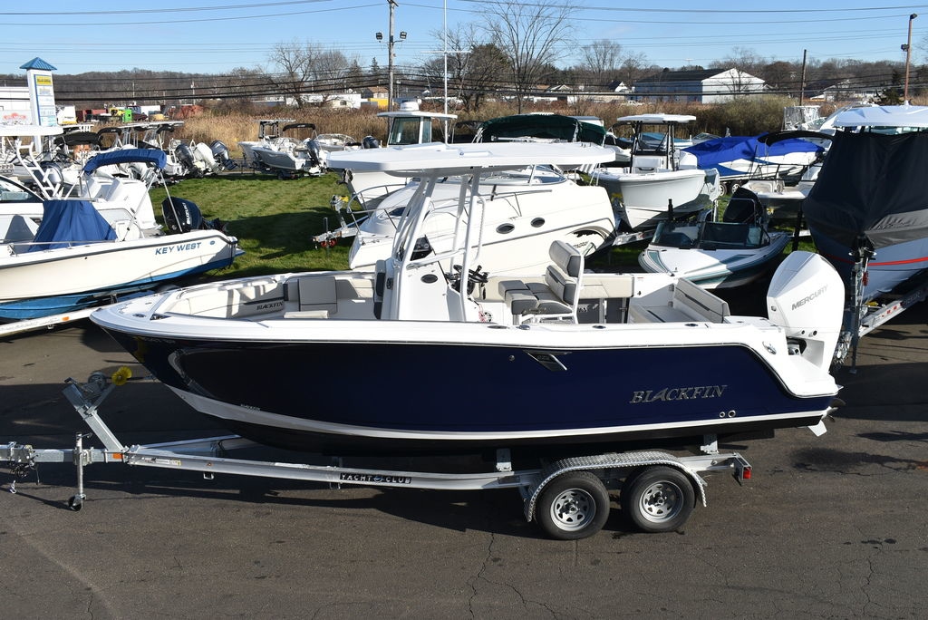 For sale by Diamond Marine of CT, A Blackfin dealer. On consignment, a 2023 Blackfin 222CC. Powered by a White Mercury 250XL Outboard with 182 hrs of well cared for use and transferable warranty good till 3/23/2029. Trailer is not included in price, but onwBoat comes loaded with features- Sapphire hull color, Garmin 94SV GPS/Fishfinder, White powder coated framing for Hardtop, Mercury Digital engine monitoring gauge, Mercury power steering, Raw and fresh water washdown, Helm floor Pad Seadek Grey, Transom shower with pressurized fresh water, Rod holders for hardtop, Underwater LED lights, stainless steel rubrail, Console cover, Leaning post cover, Cockpit table, Porta potti w/ pumpout toilet, Trim Tabs w/ indicators, Insulated Bow storage, Yeti cooler, bottom paint and more. Take a good look at the pictures as I tried to catch everything. This is a one owner boat and looks as nice as the day it was new, the level of care shows. All legitimate offers will be presented to seller. Local trades are welcome, fina