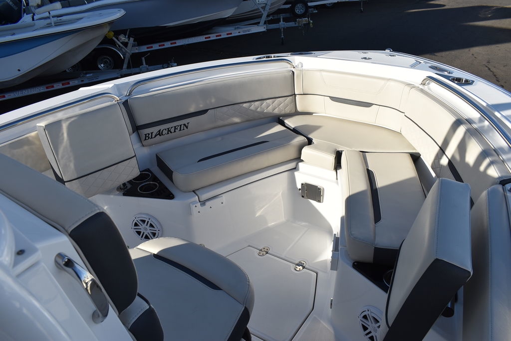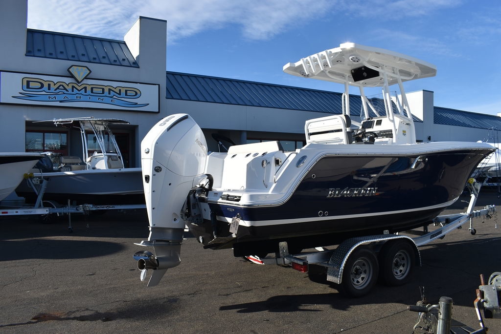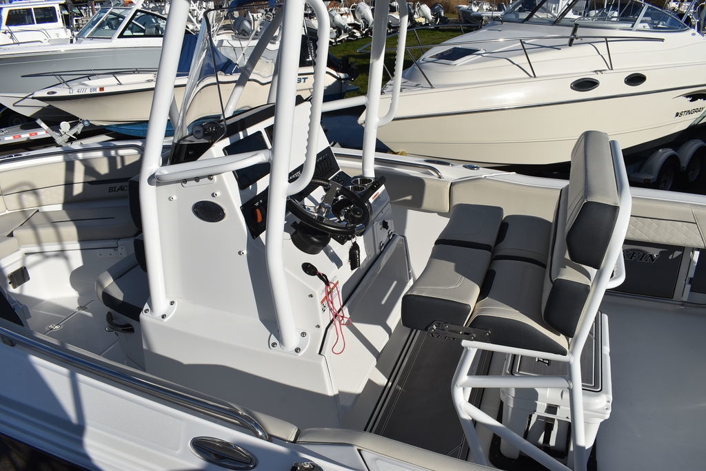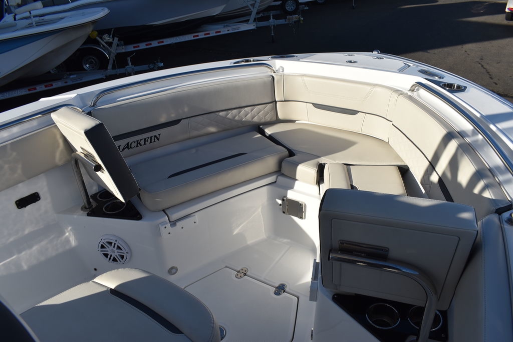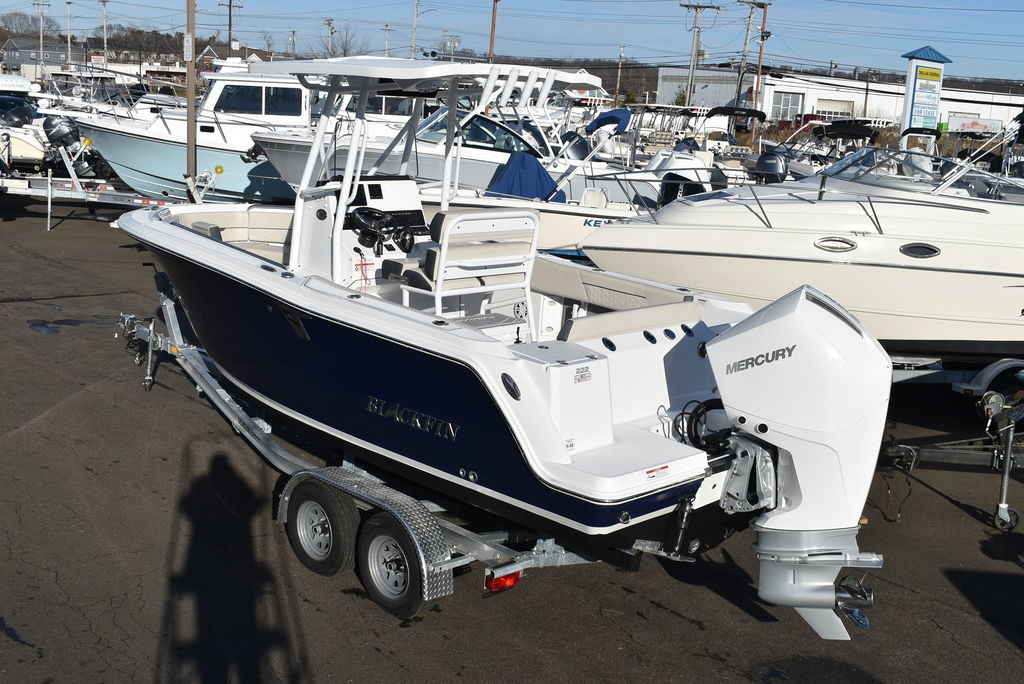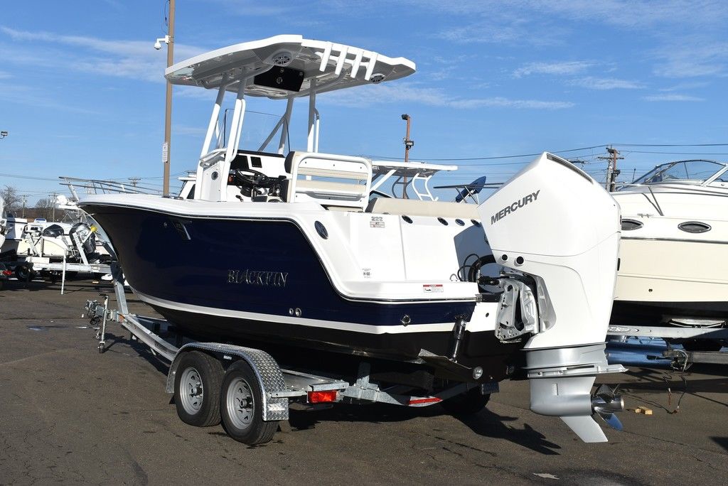 For sale by Diamond Marine of CT, A Blackfin dealer. On consignment, a 2023 Blackfin 222CC. Powered by a White Mercury 250XL Outboard with 182 hrs of well cared for use and transferable warranty good till 3/23/2029. Trailer is not included in price, but onwBoat comes loaded with features- Sapphire hull color, Garmin 94SV GPS/Fishfinder, White powder coated framing for Hardtop, Mercury Digital engine monitoring gauge, Mercury power steering, Raw and fresh water washdown, Helm floor Pad Seadek Grey, Transom shower with pressurized fresh water, Rod holders for hardtop, Underwater LED lights, stainless steel rubrail, Console cover, Leaning post cover, Cockpit table, Porta potti w/ pumpout toilet, Trim Tabs w/ indicators, Insulated Bow storage, Yeti cooler, bottom paint and more. Take a good look at the pictures as I tried to catch everything. This is a one owner boat and looks as nice as the day it was new, the level of care shows. All legitimate offers will be presented to seller. Local trades are welcome, fina